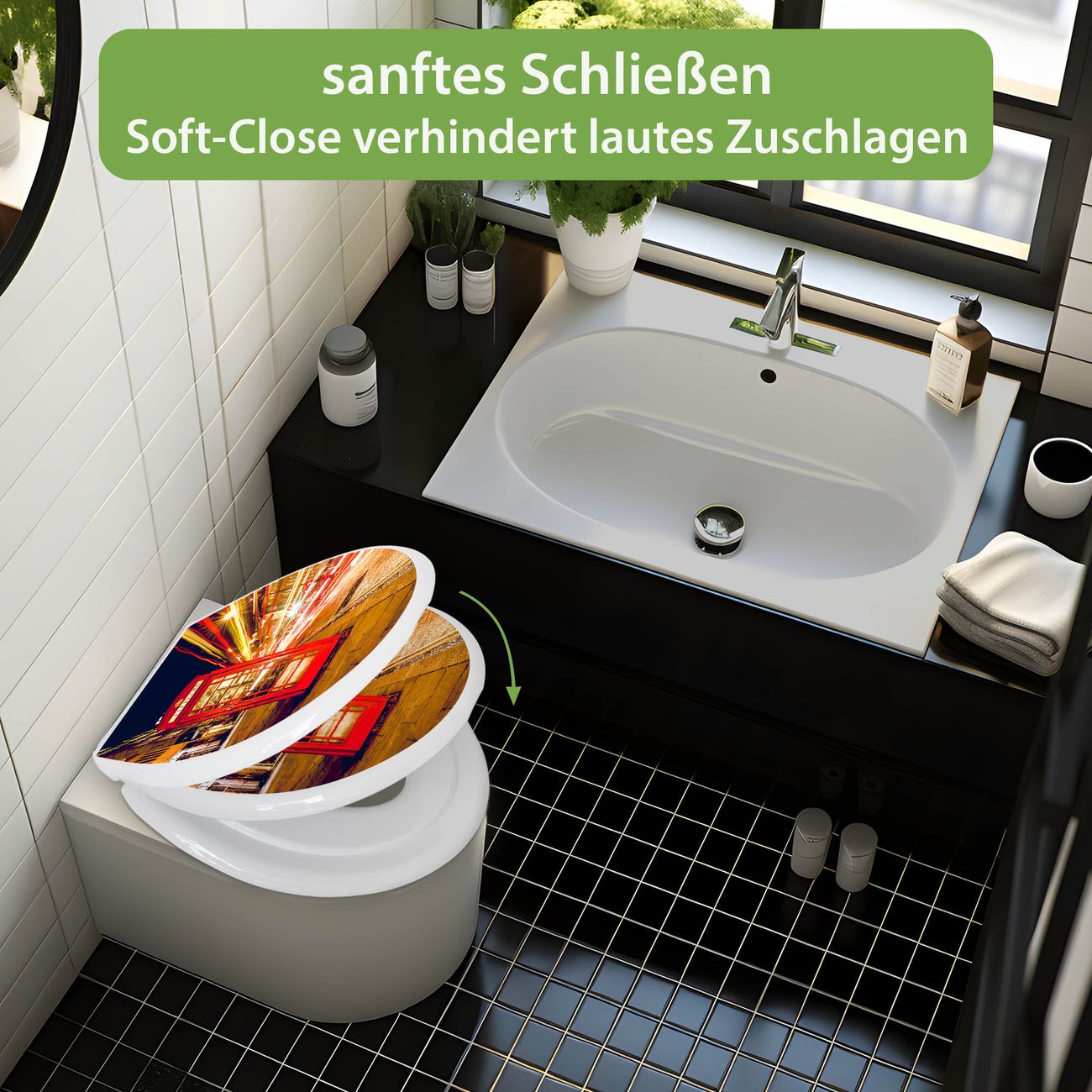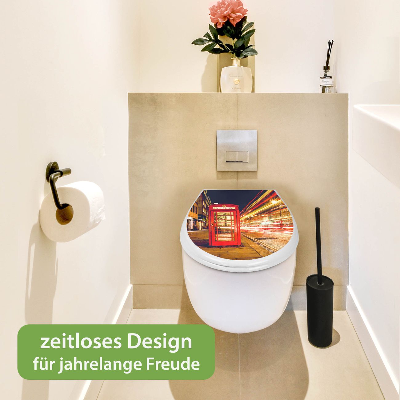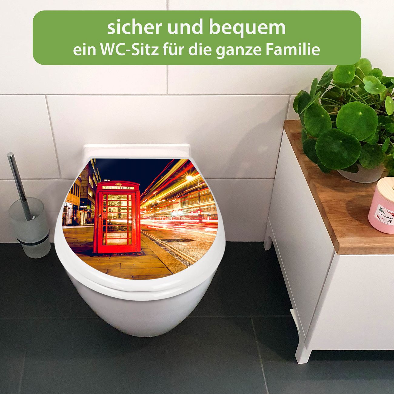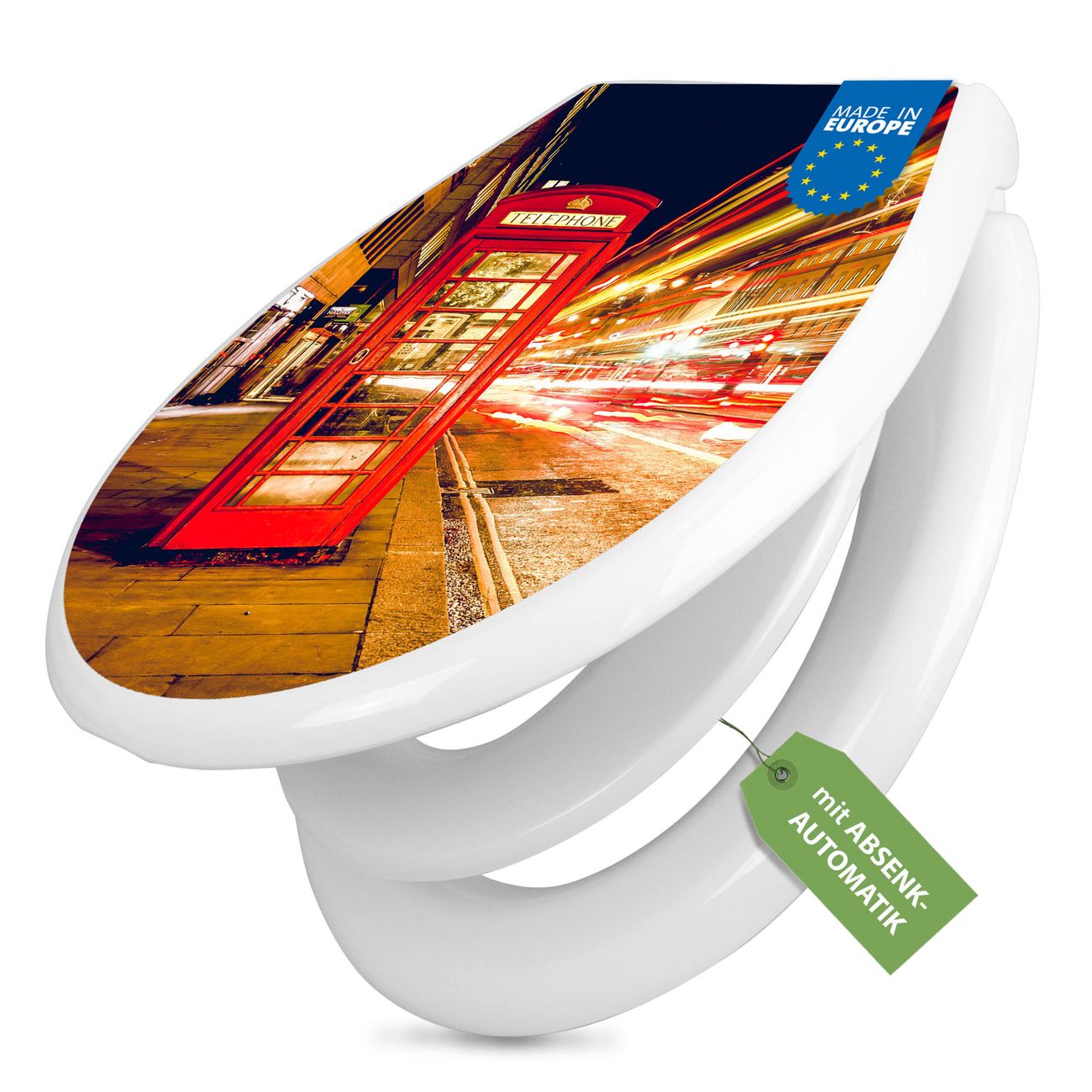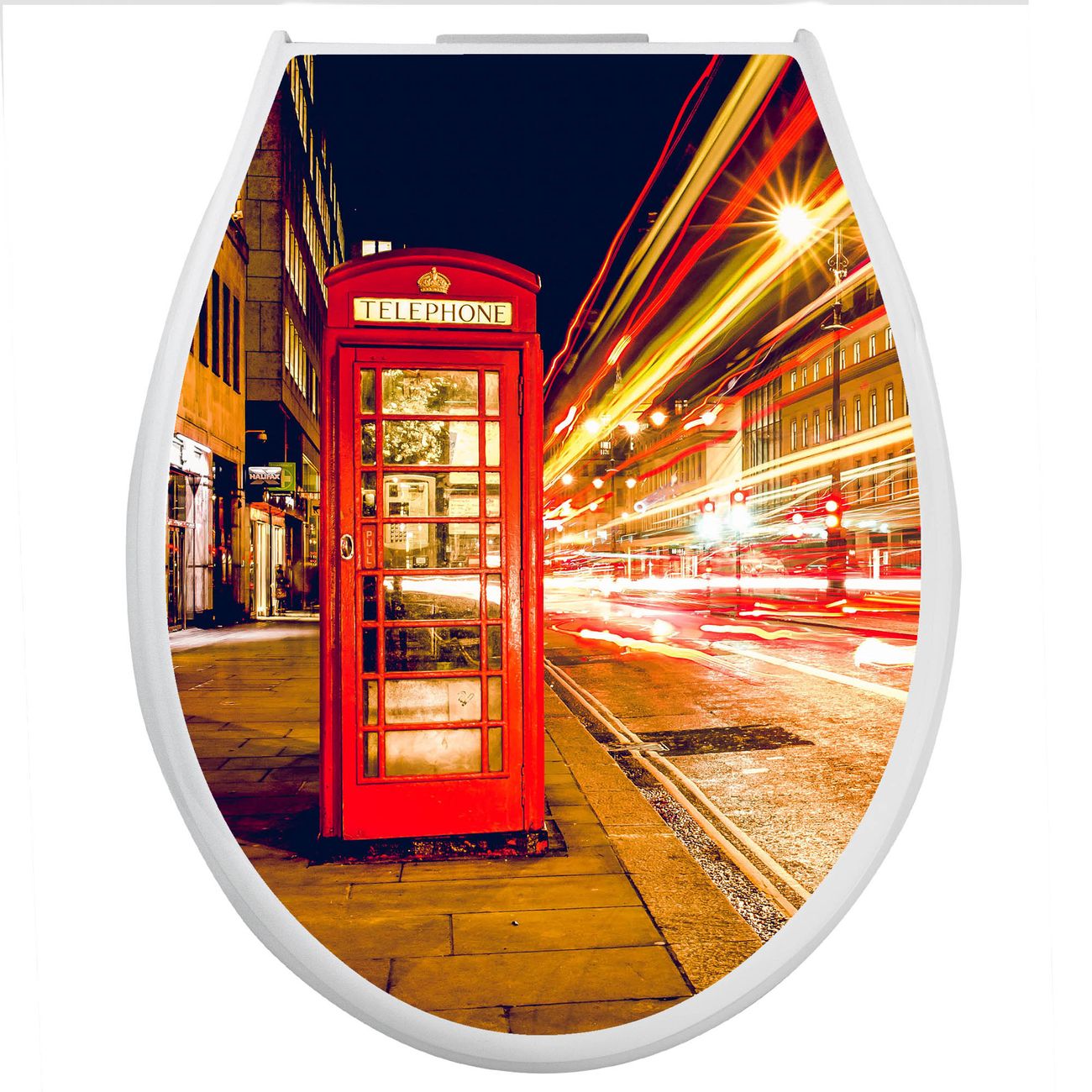 Toilettendeckel weiß mit Absenkautomatik Motiv Red Telephone Trafic