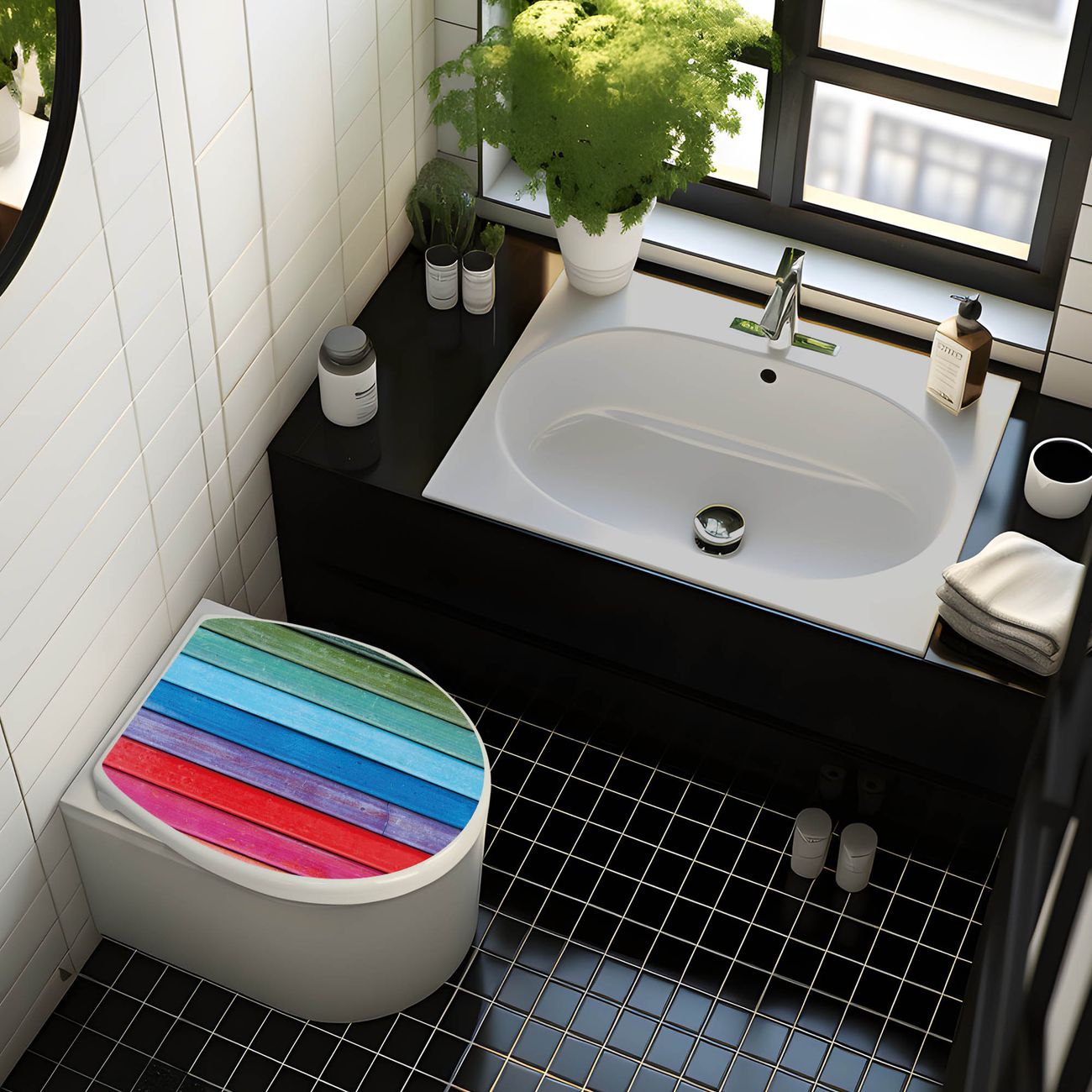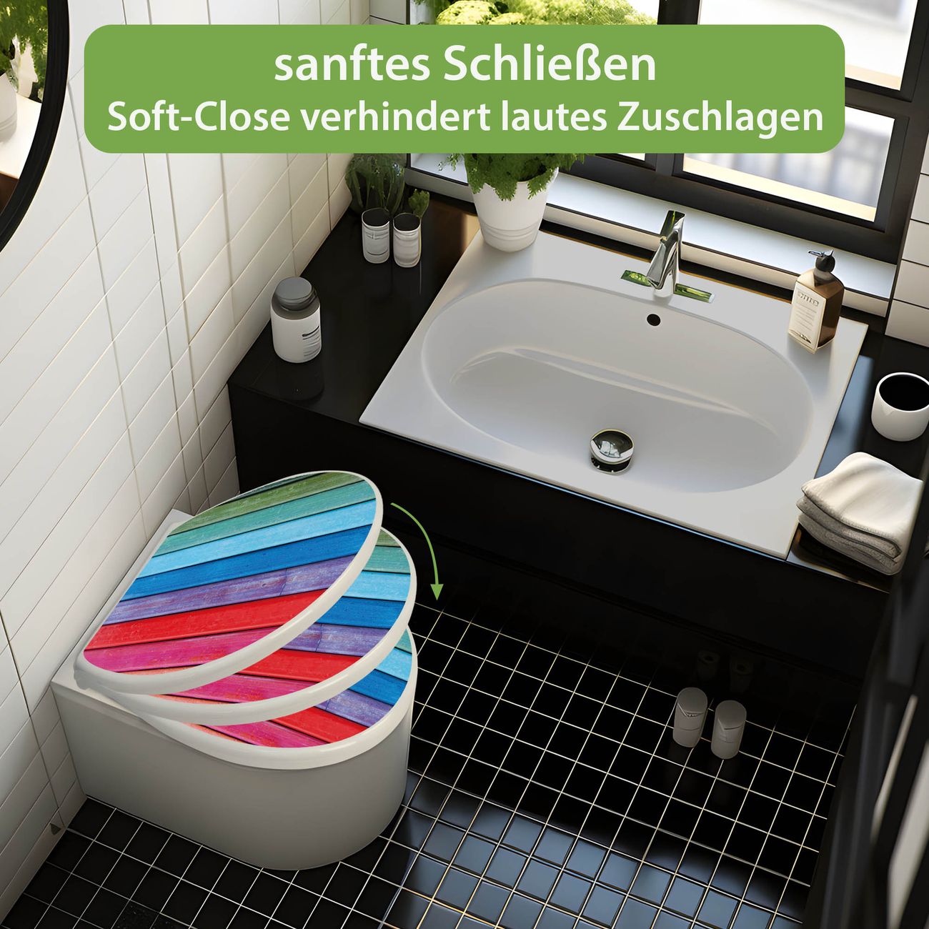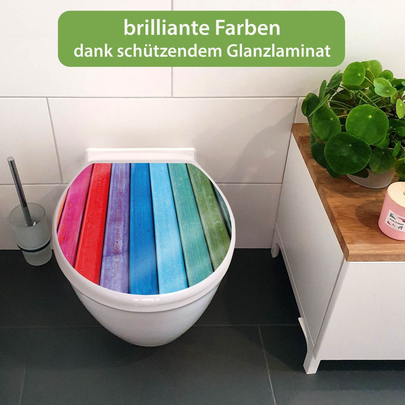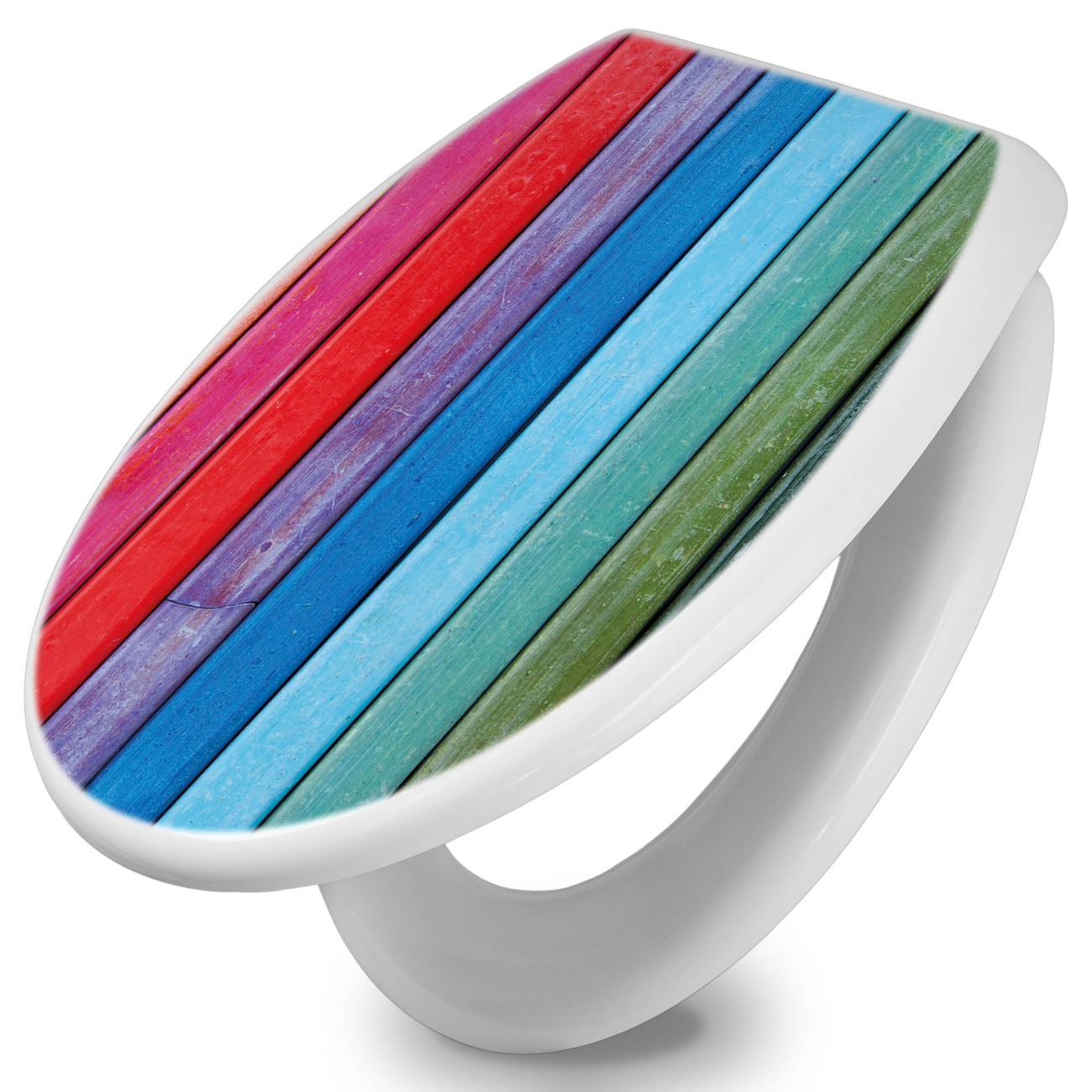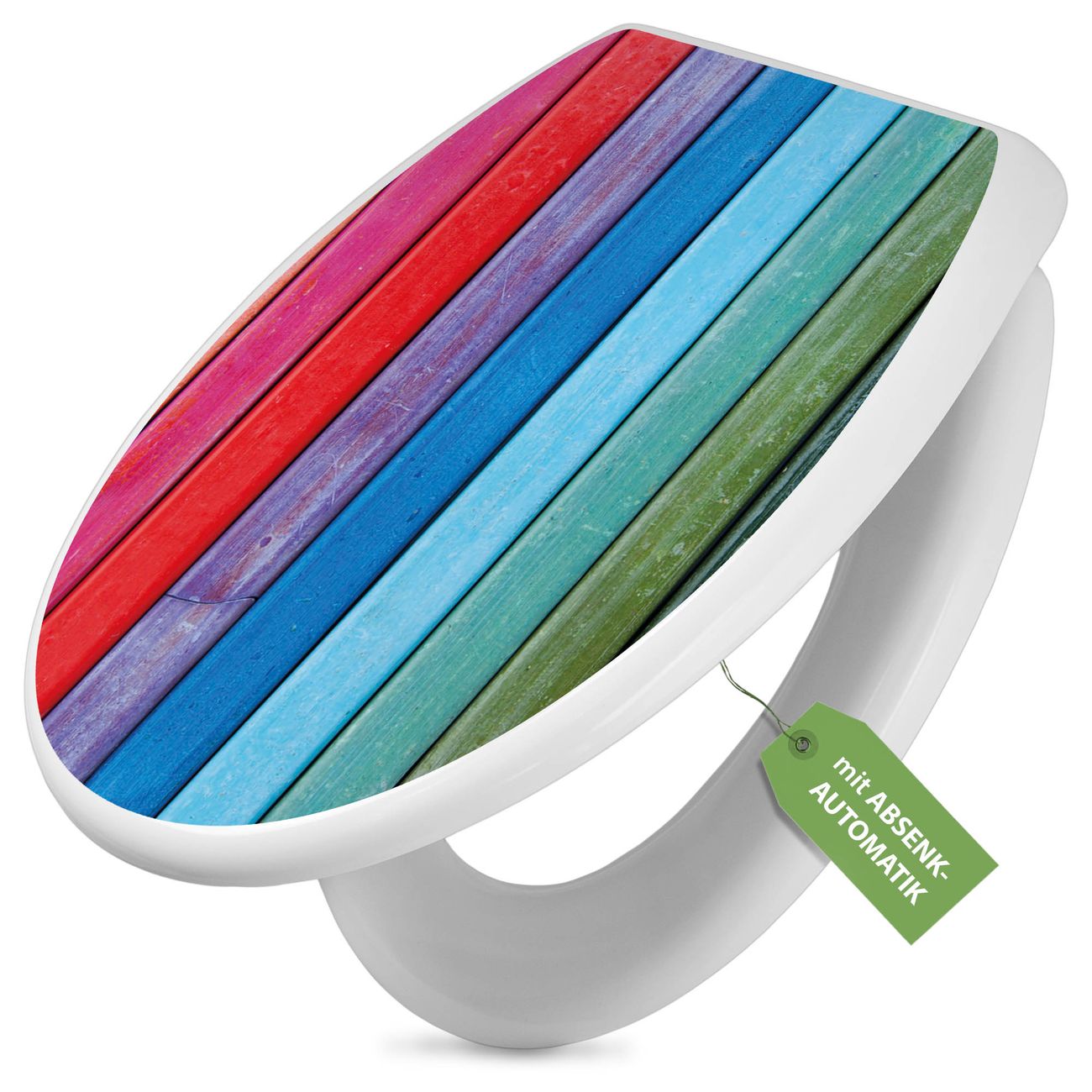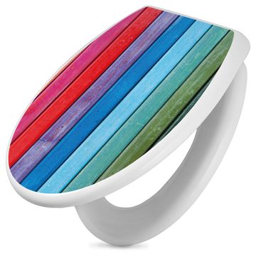 Toilettendeckel weiß mit Absenkautomatik Motiv Regenbogenfarben