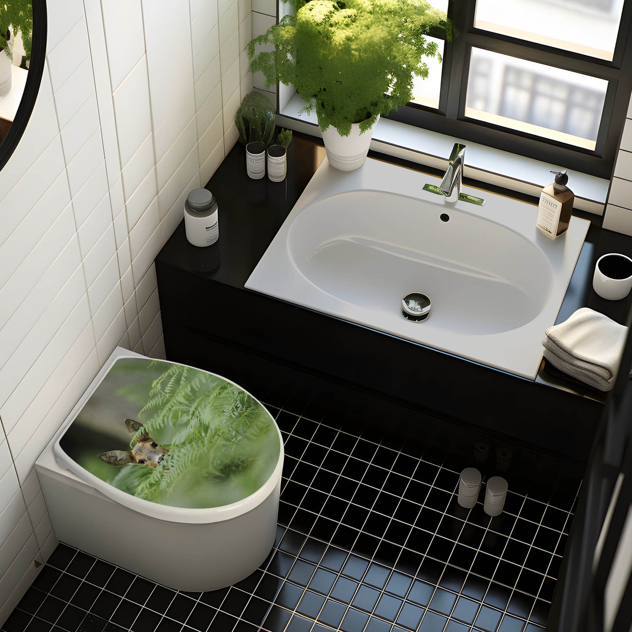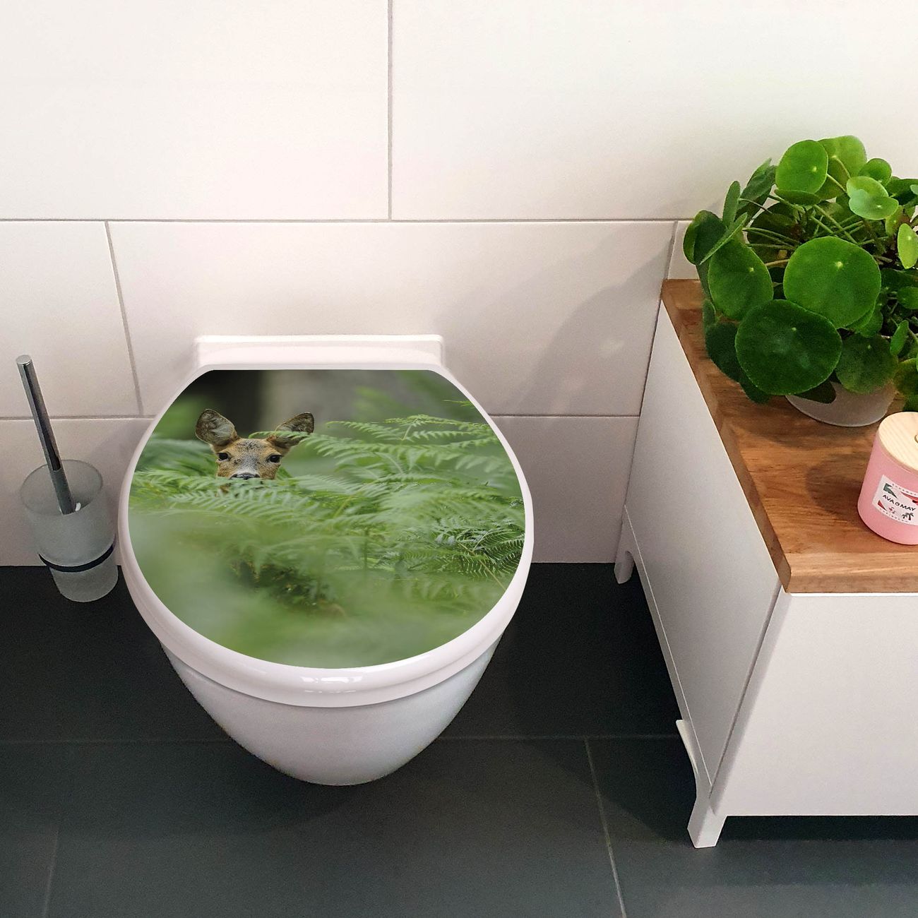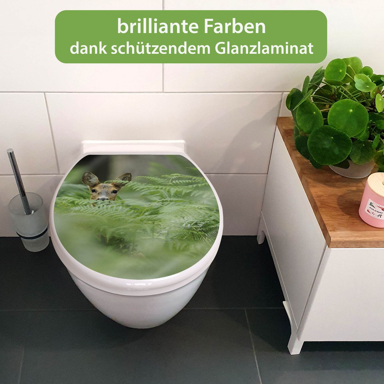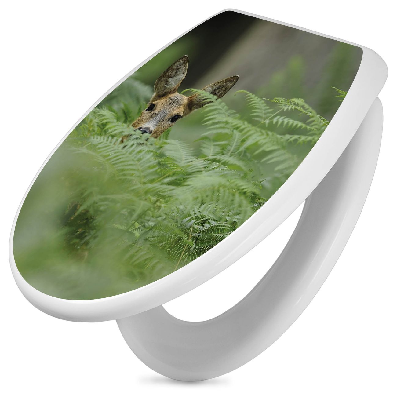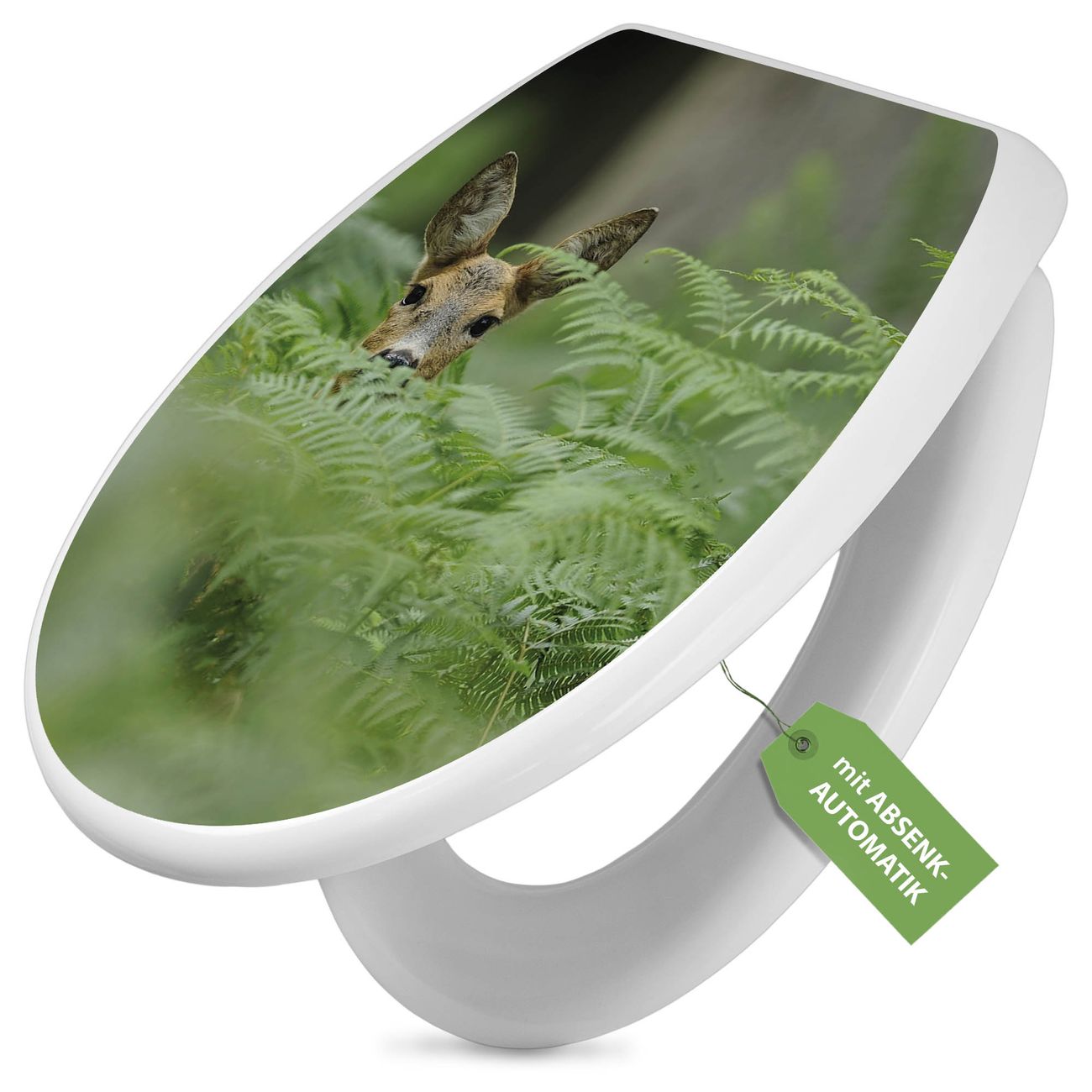 Toilettendeckel weiß mit Absenkautomatik Motiv Reh