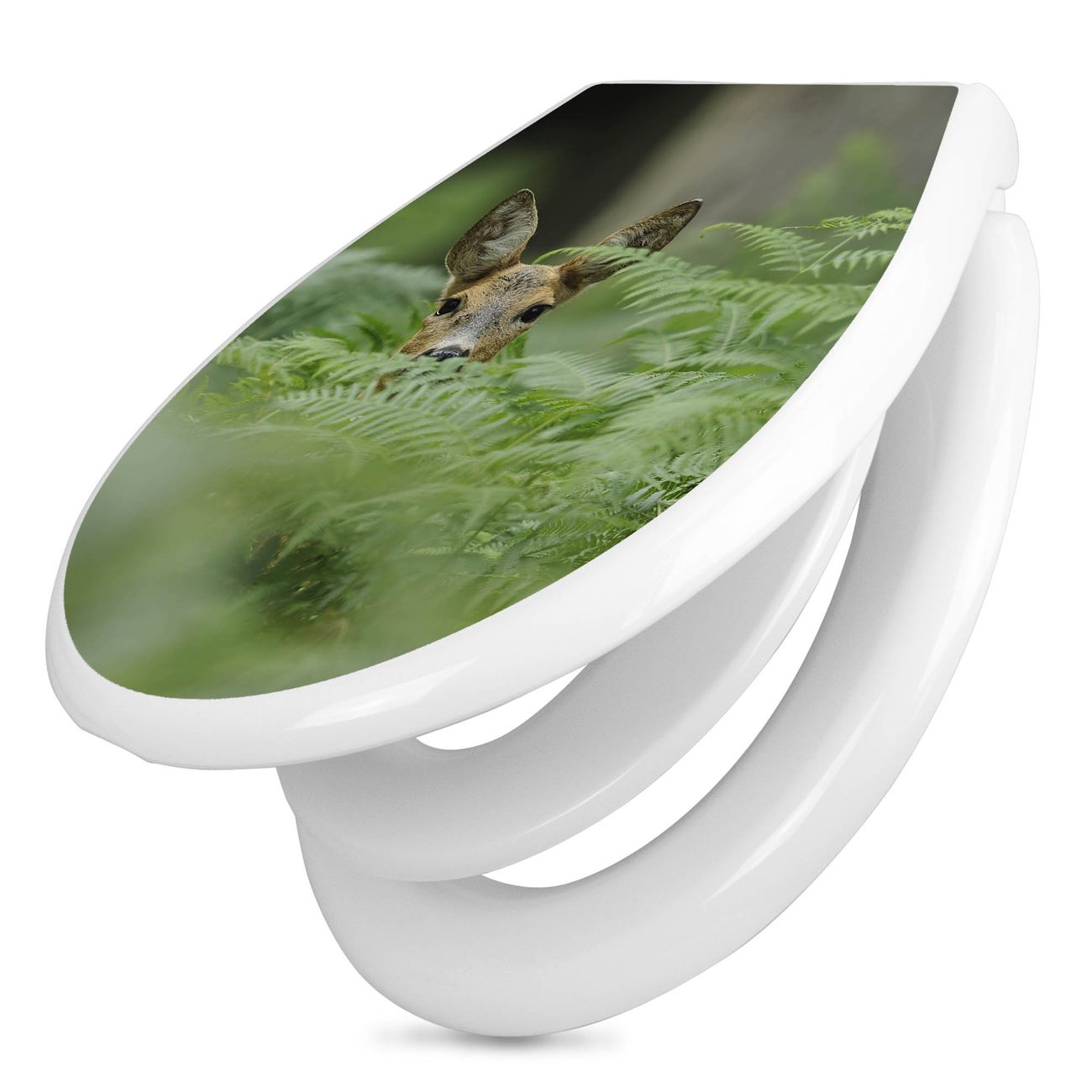 Toilettendeckel weiß mit Absenkautomatik Motiv Reh