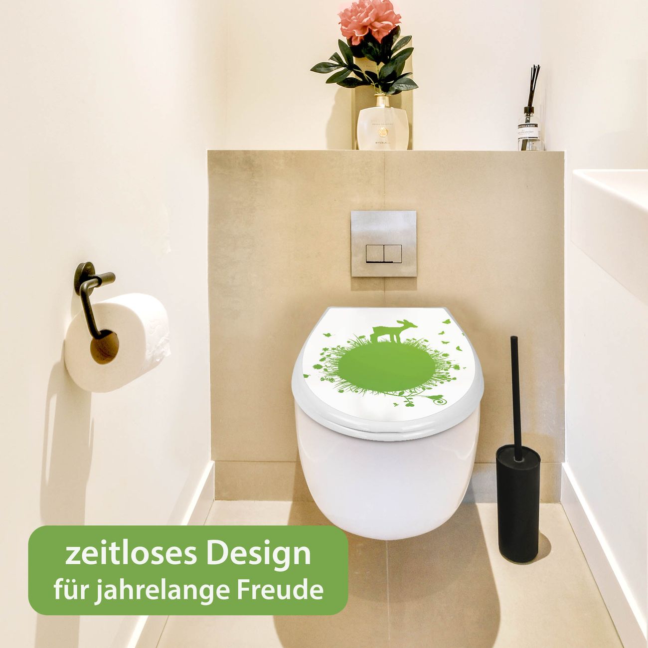 Toilettendeckel weiß mit Absenkautomatik Motiv Rehkitz