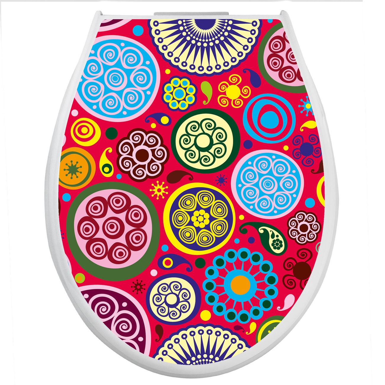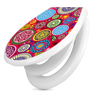 Toilettendeckel weiß mit Absenkautomatik Motiv Retro Kreise