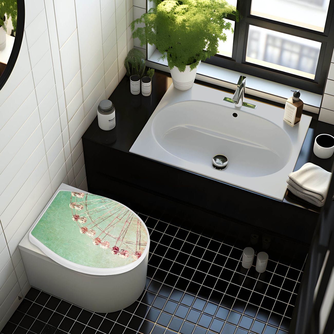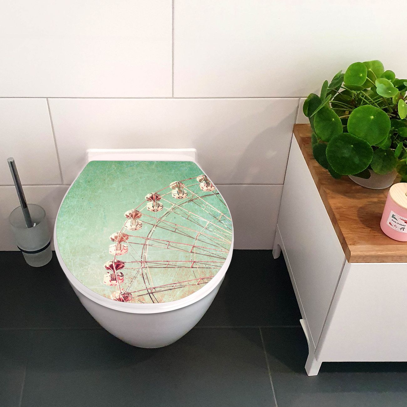 Toilettendeckel weiß mit Absenkautomatik Motiv Riesenrad 1