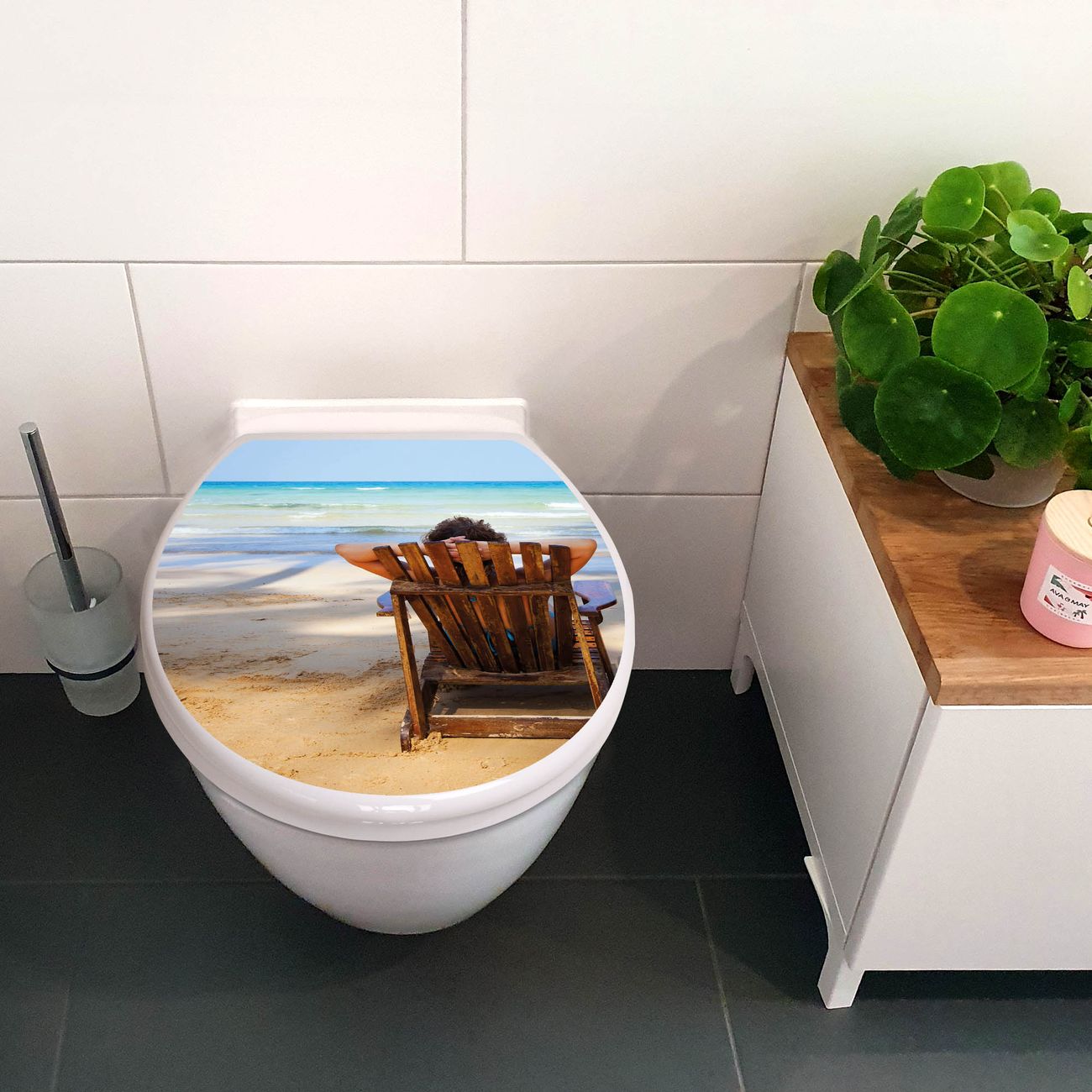 Toilettendeckel weiß mit Absenkautomatik Motiv Robinson Und Freitag