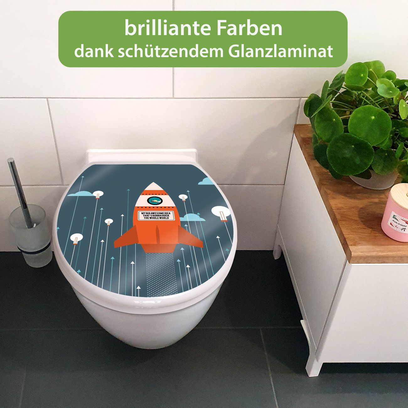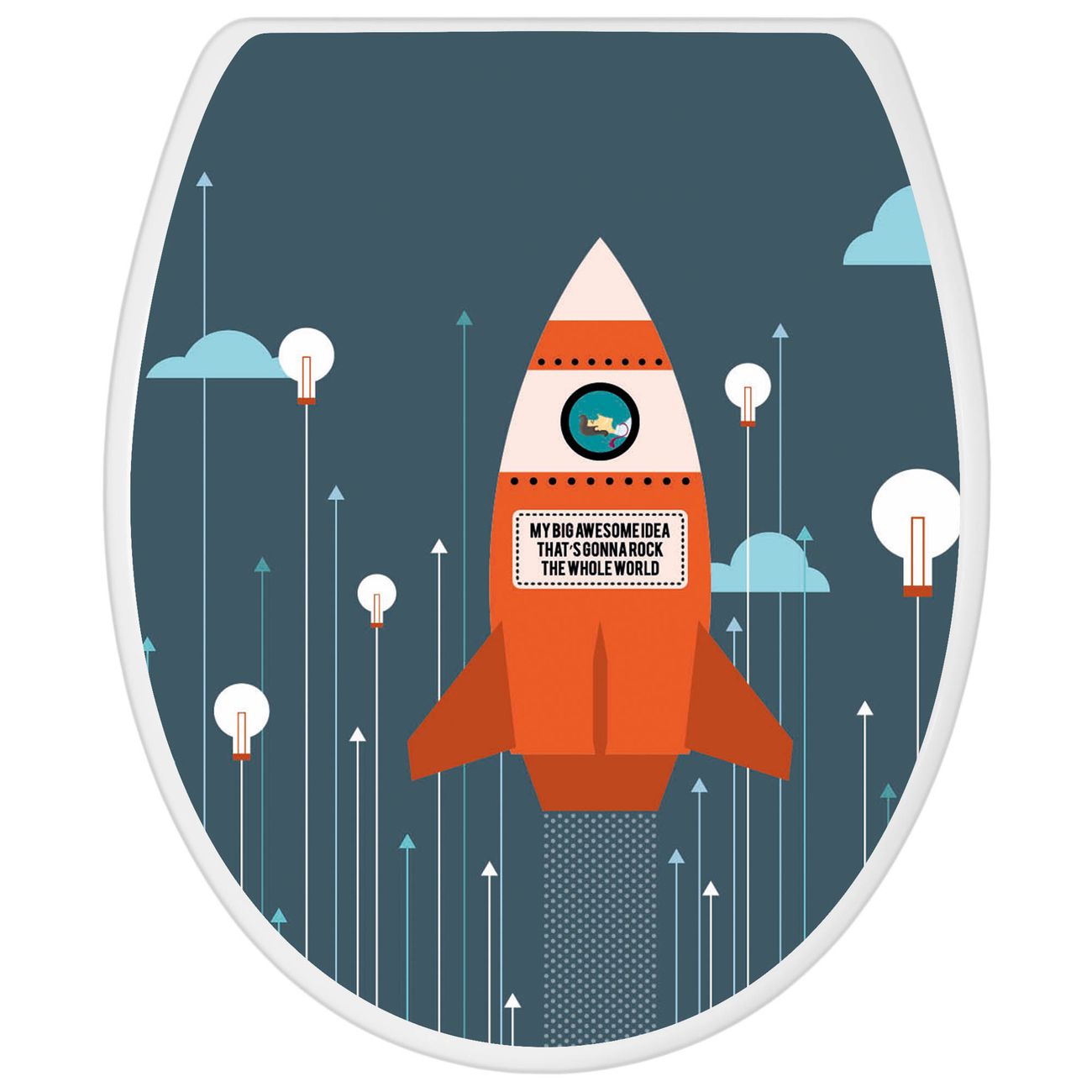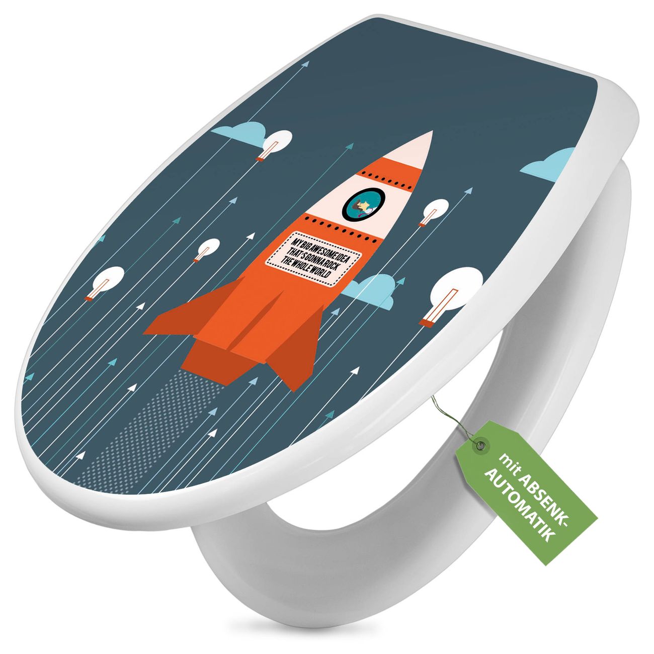 Toilettendeckel weiß mit Absenkautomatik Motiv Rock the World