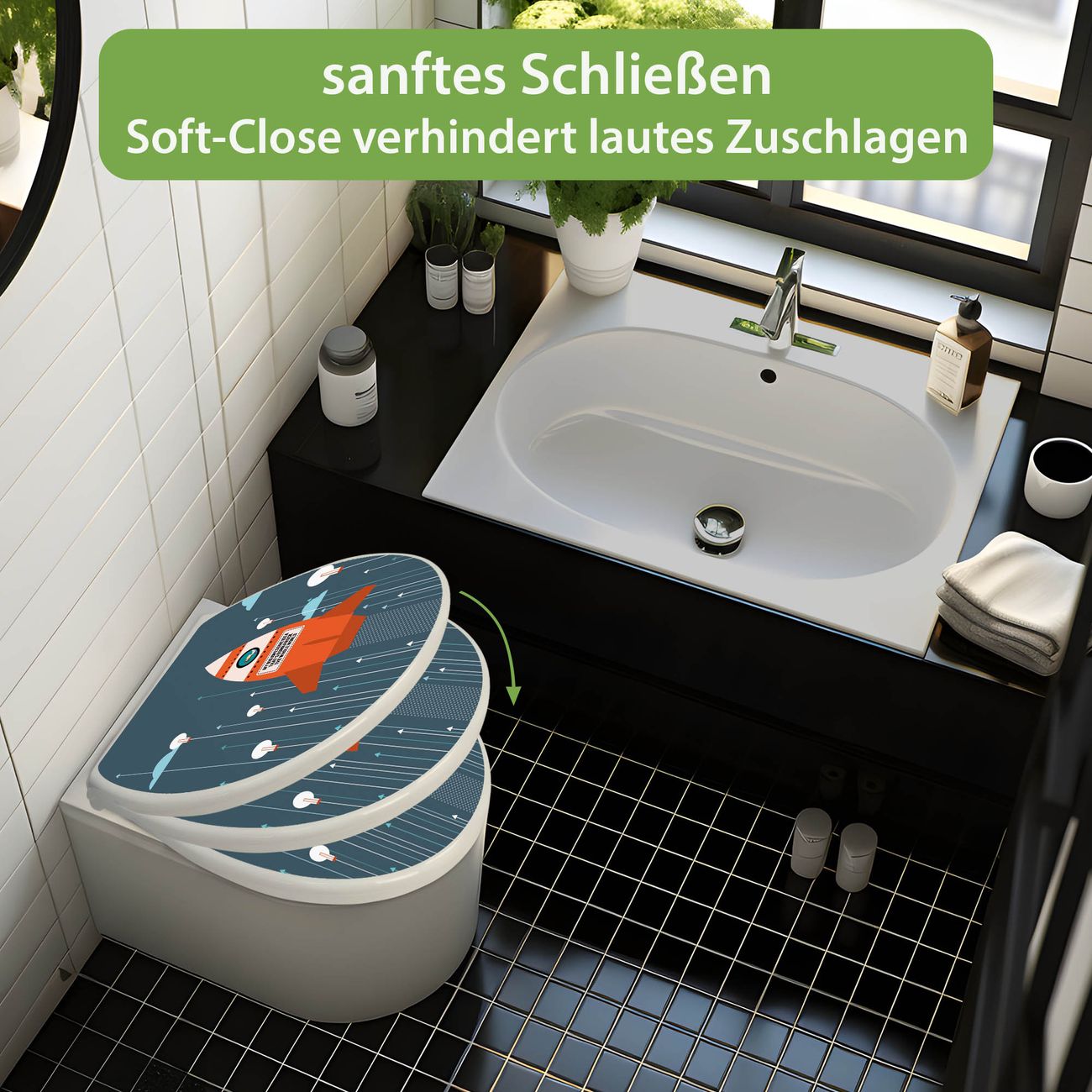 - Material: WC-Sitz und Deckel aus robustem Duroplast