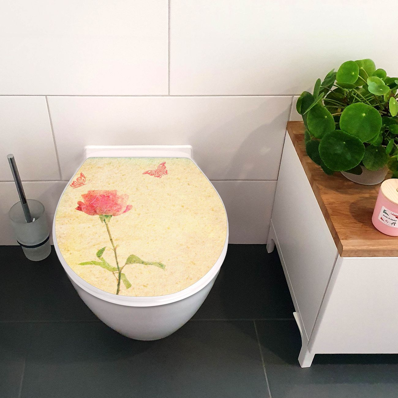 Toilettendeckel weiß mit Absenkautomatik Motiv Romantik