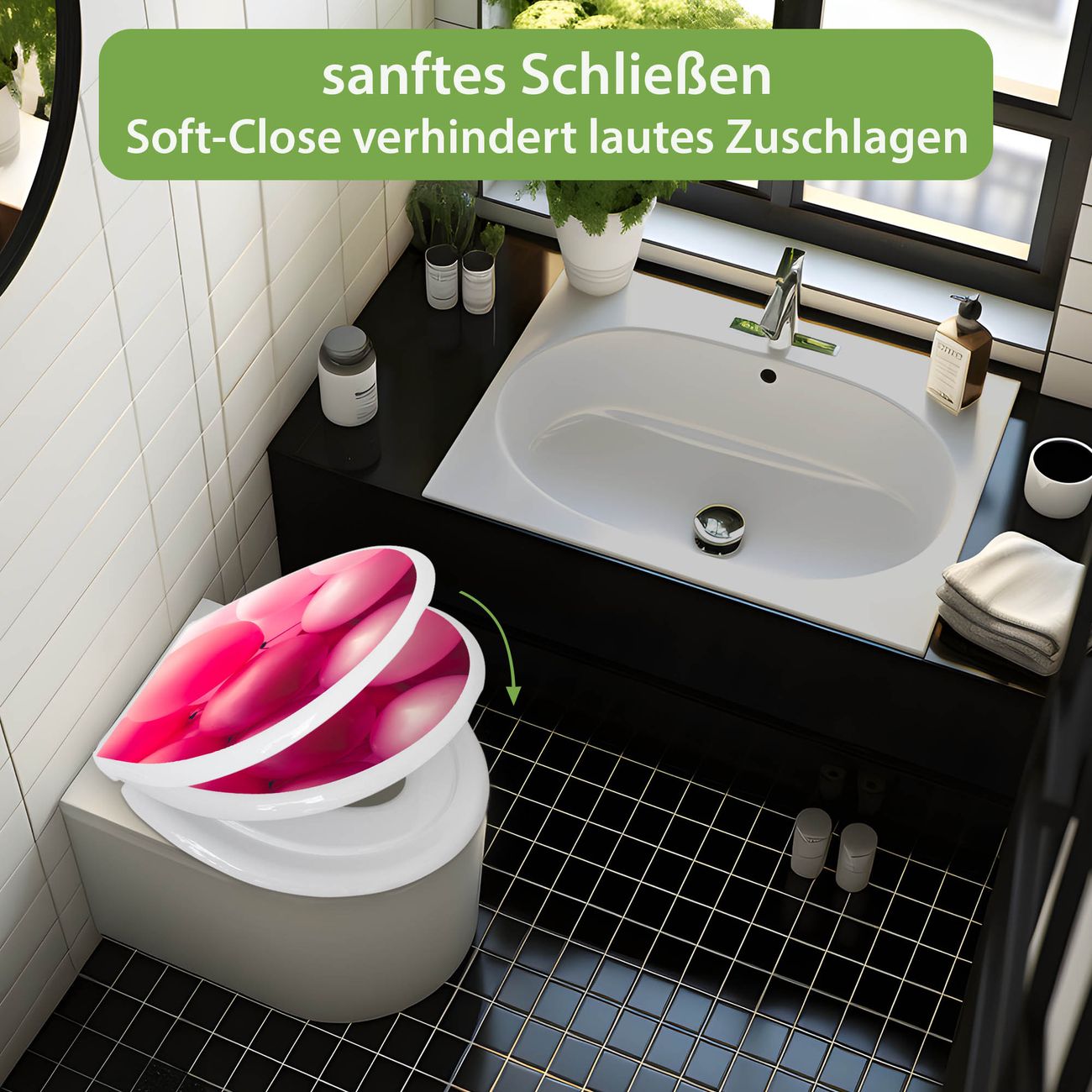 Toilettendeckel weiß mit Absenkautomatik Motiv Rosa Ballons 2