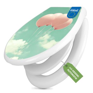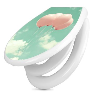 Toilettendeckel weiß mit Absenkautomatik Motiv Rosa Ballons