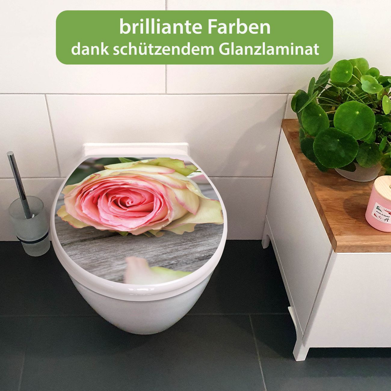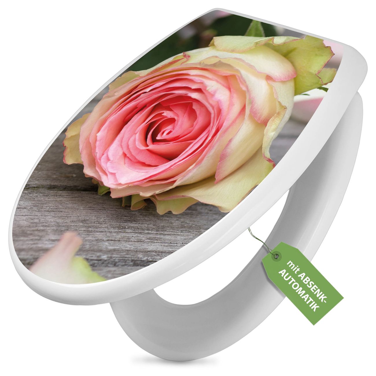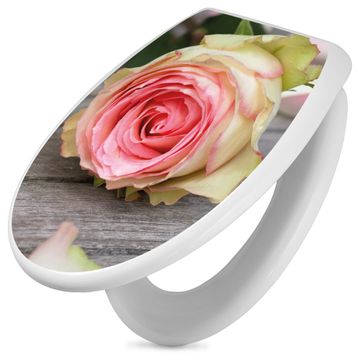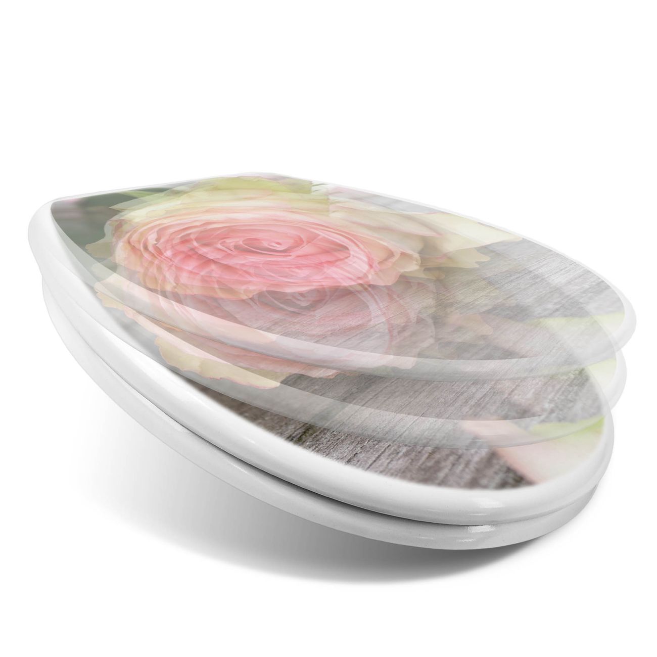 Toilettendeckel weiß mit Absenkautomatik Motiv Rosa Rose