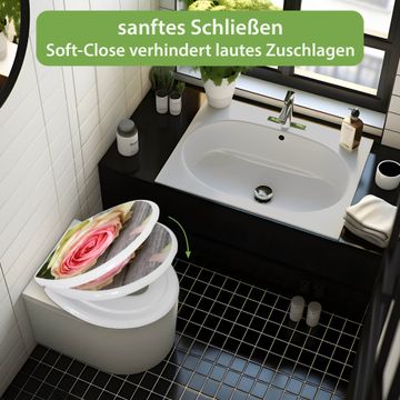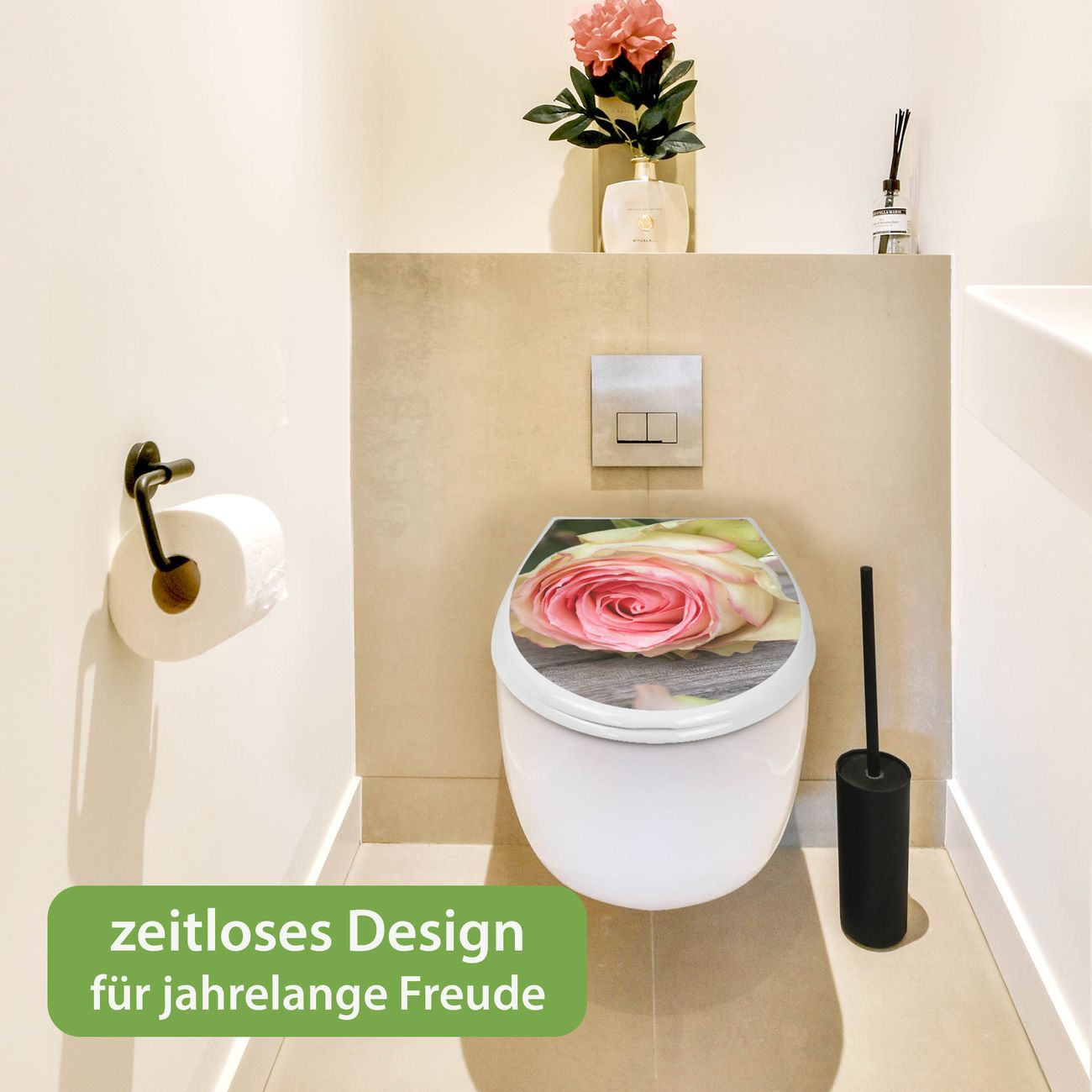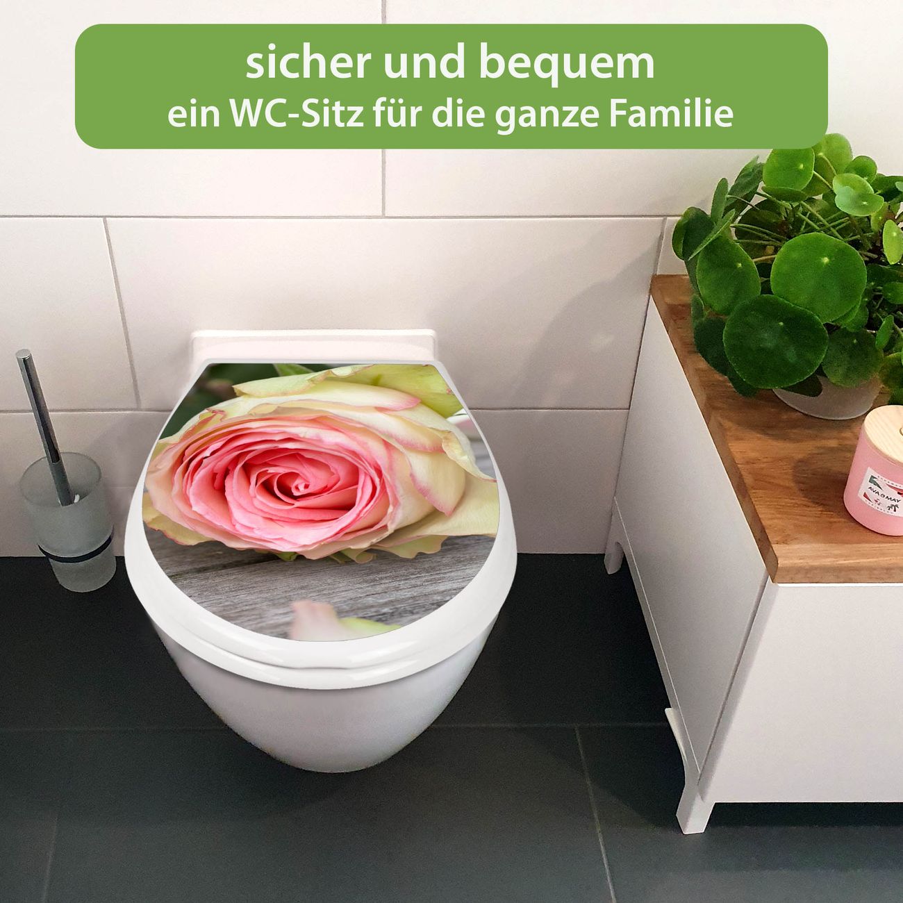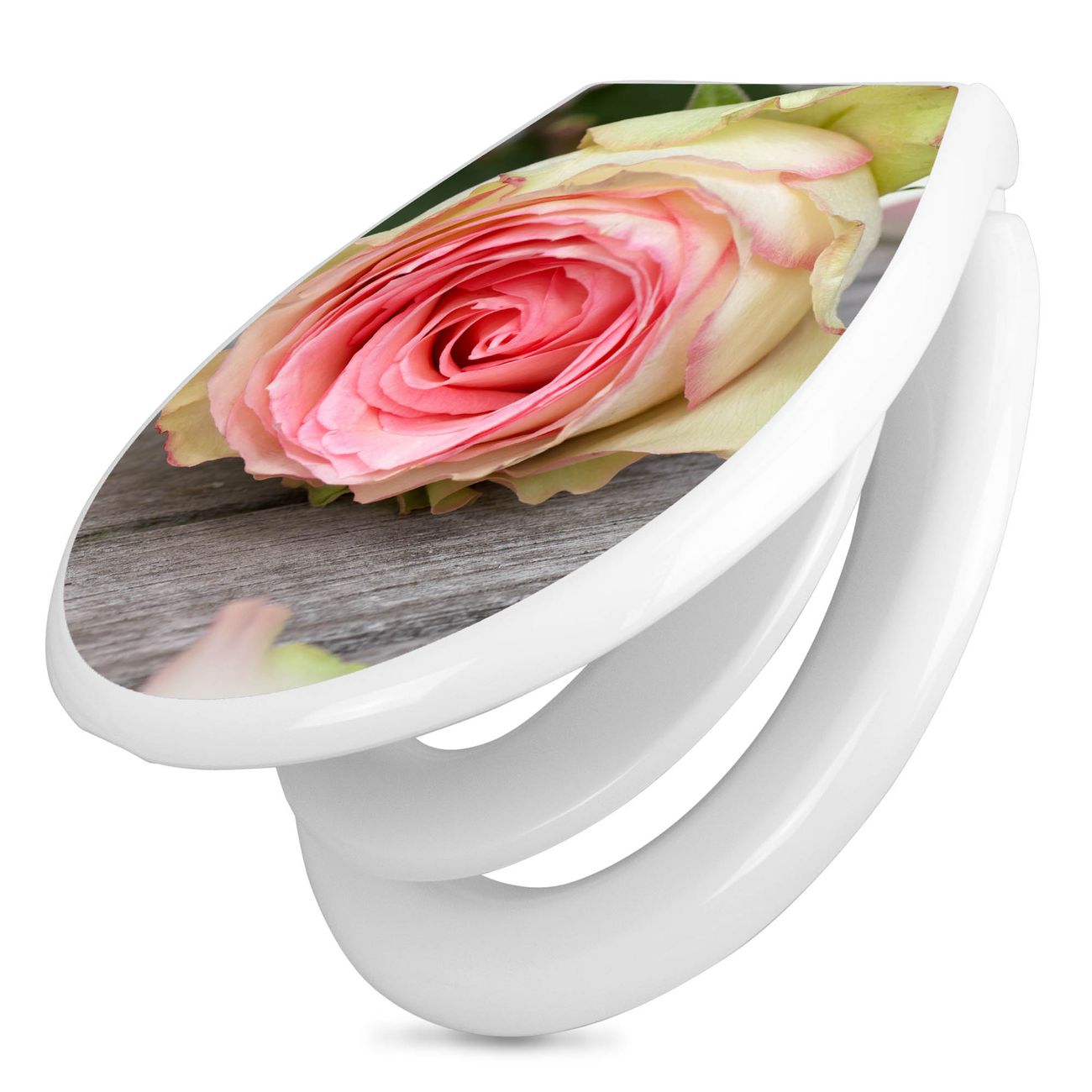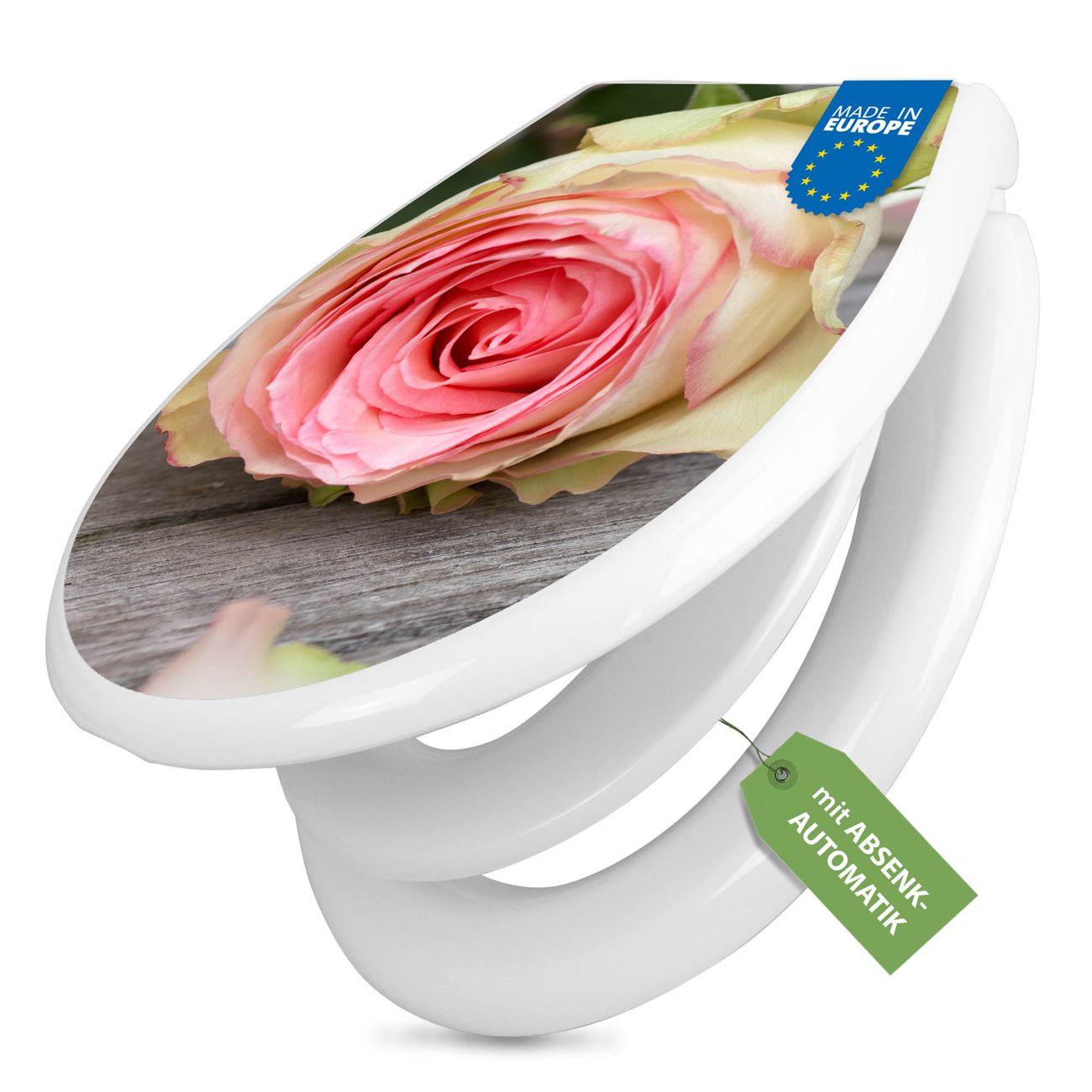 Toilettendeckel weiß mit Absenkautomatik Motiv Rosa Rose