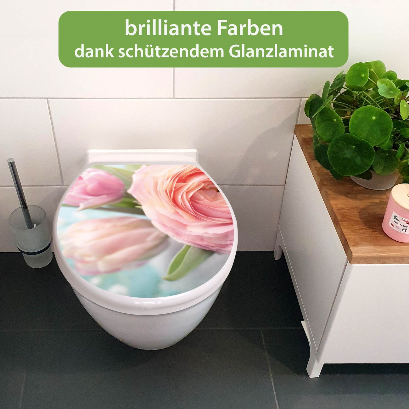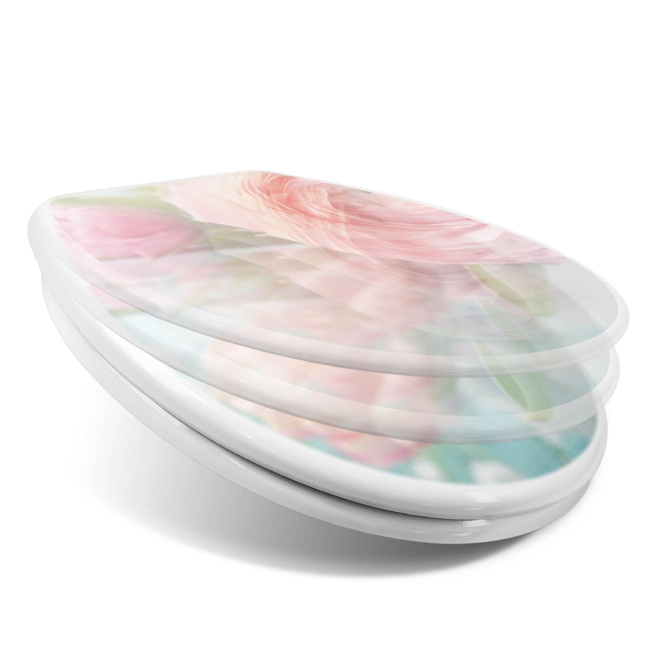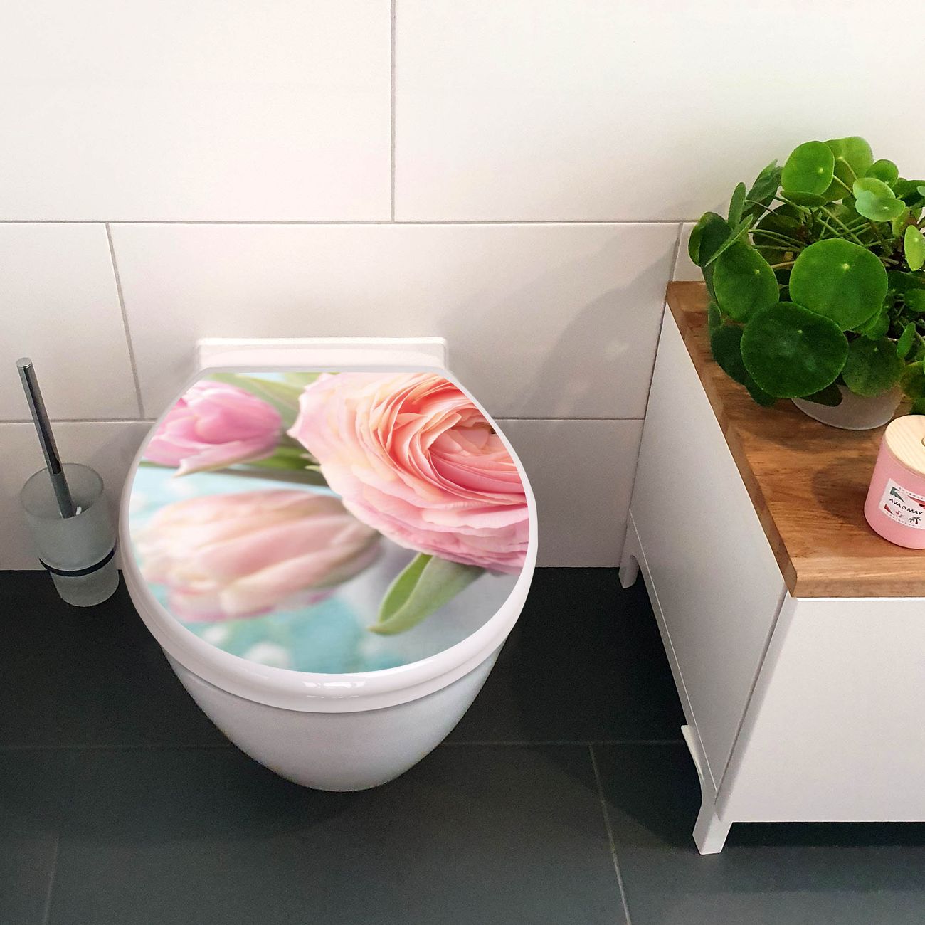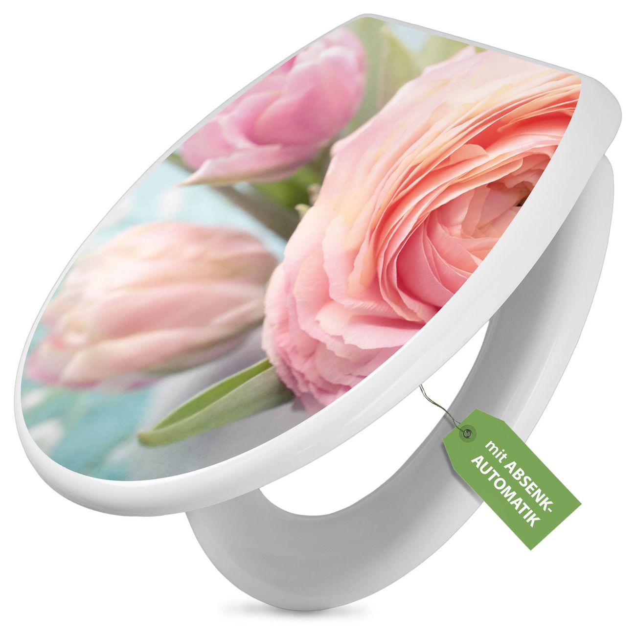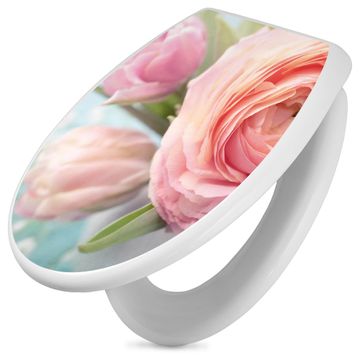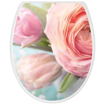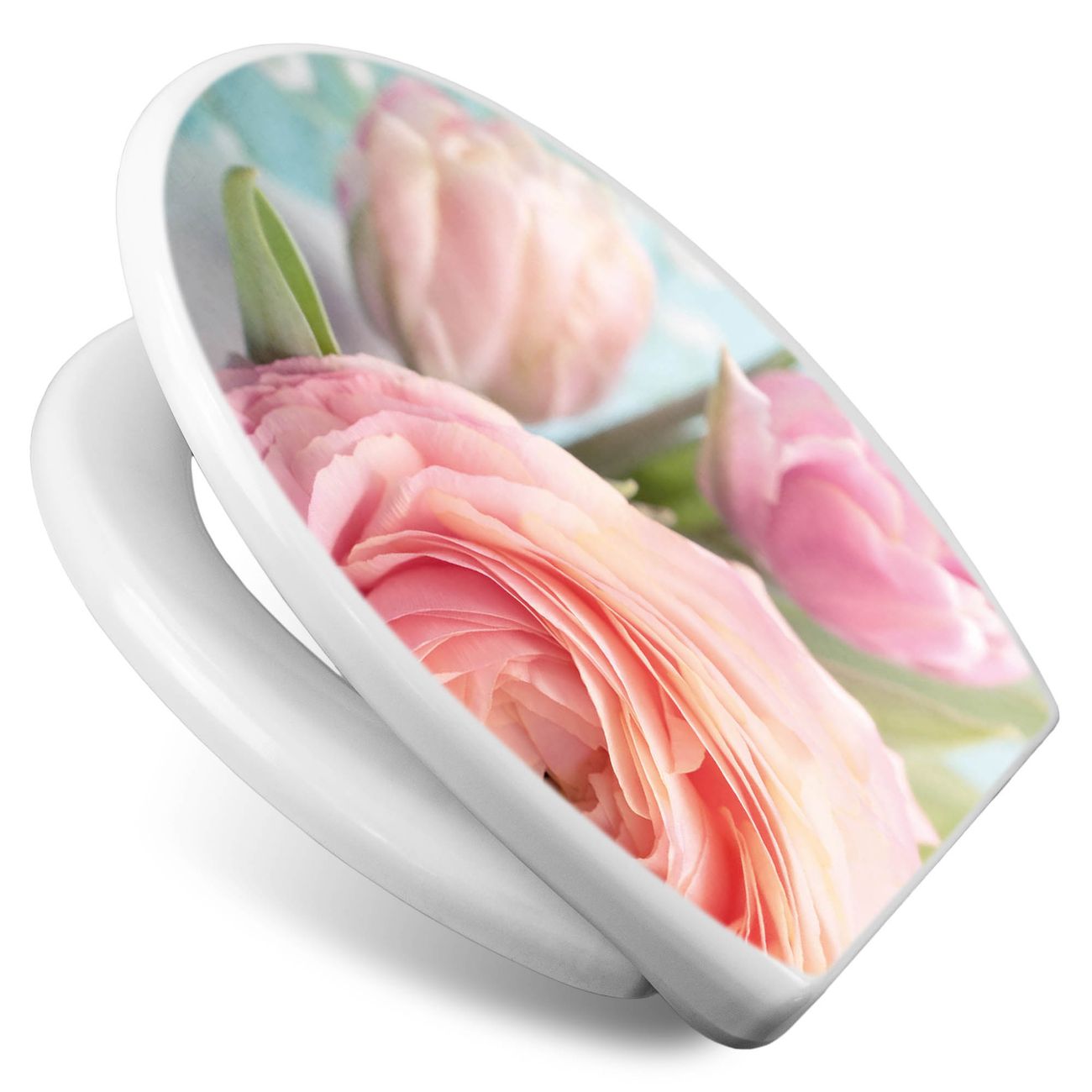 Toilettendeckel weiß mit Absenkautomatik Motiv Rosa Tulpe