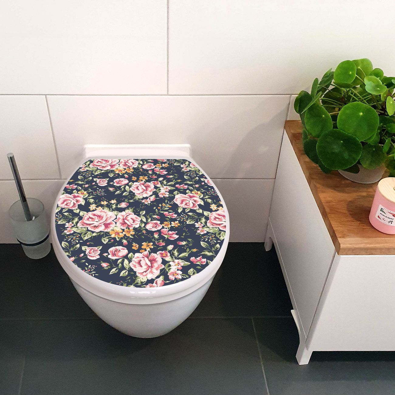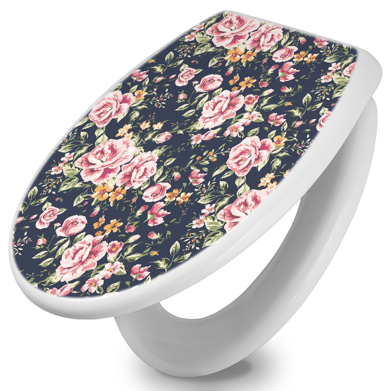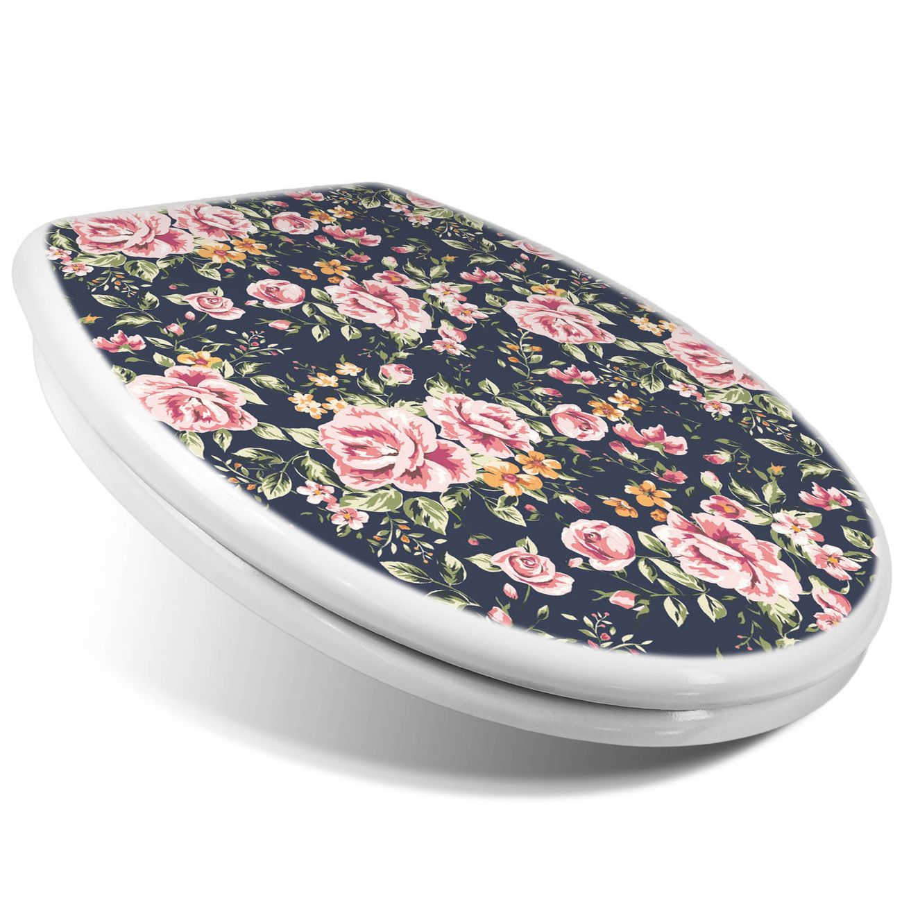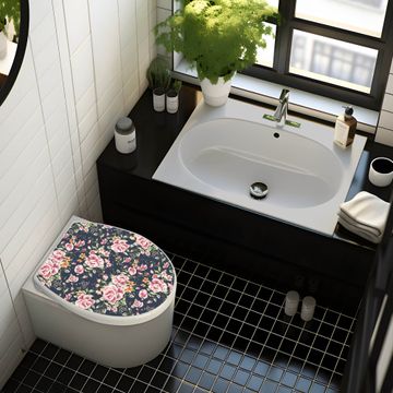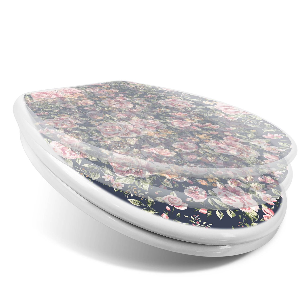 Toilettendeckel weiß mit Absenkautomatik Motiv Rosen Auf Anthrazit