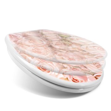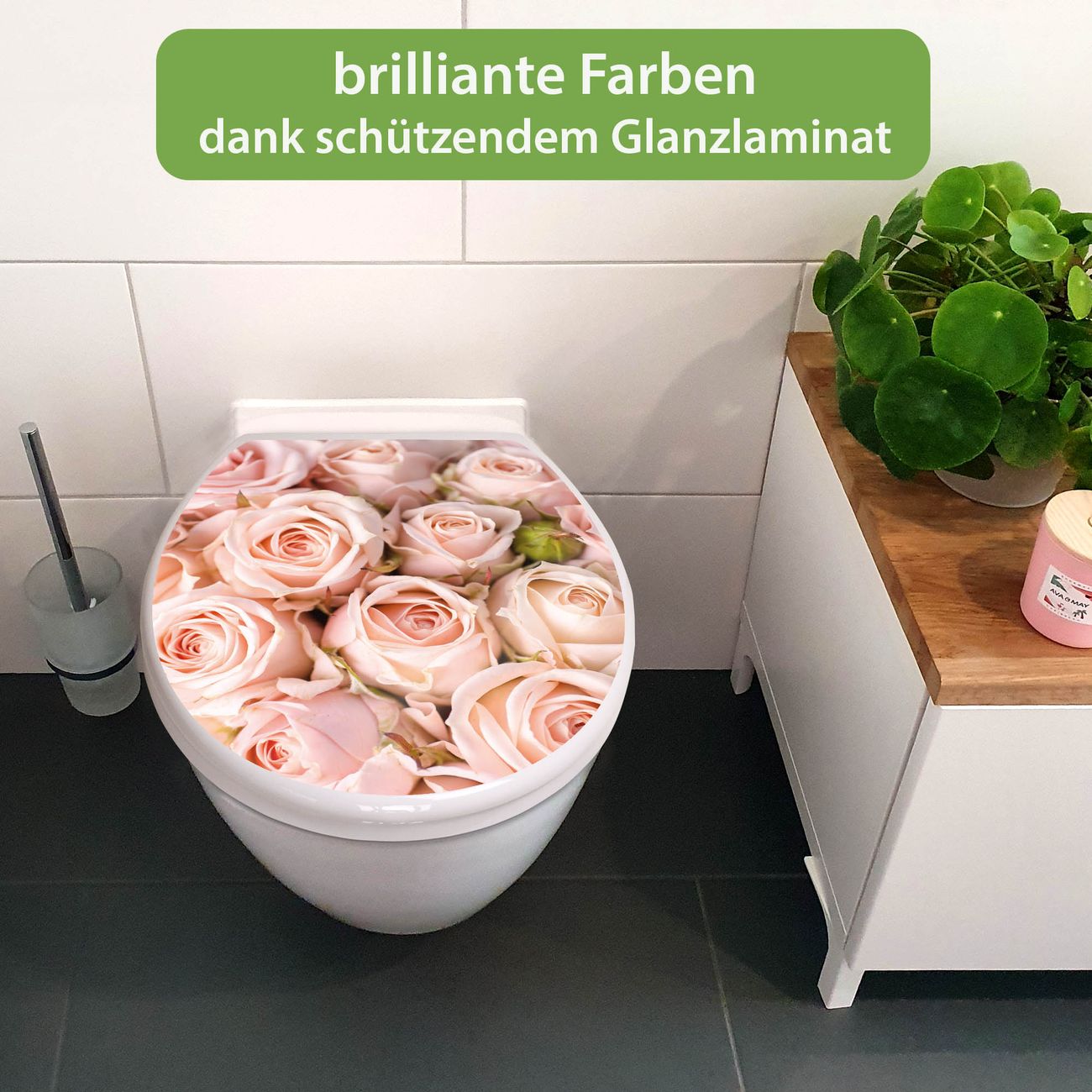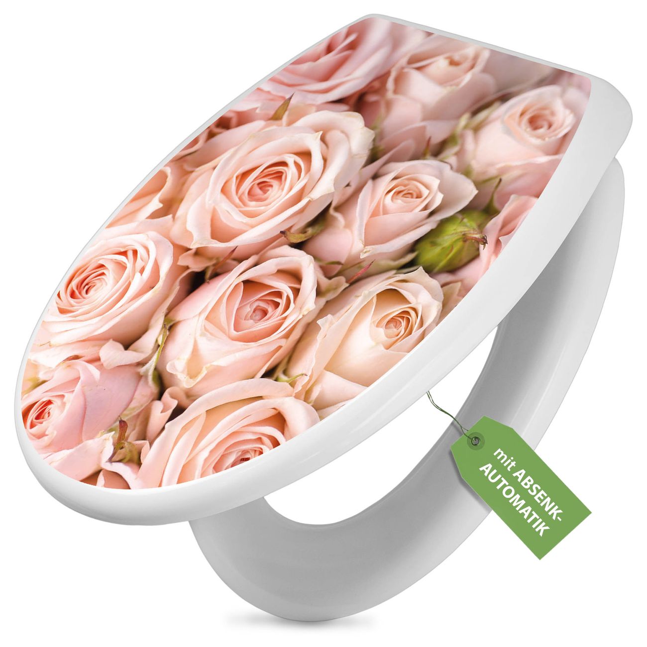 Toilettendeckel weiß mit Absenkautomatik Motiv Rosenbouquet