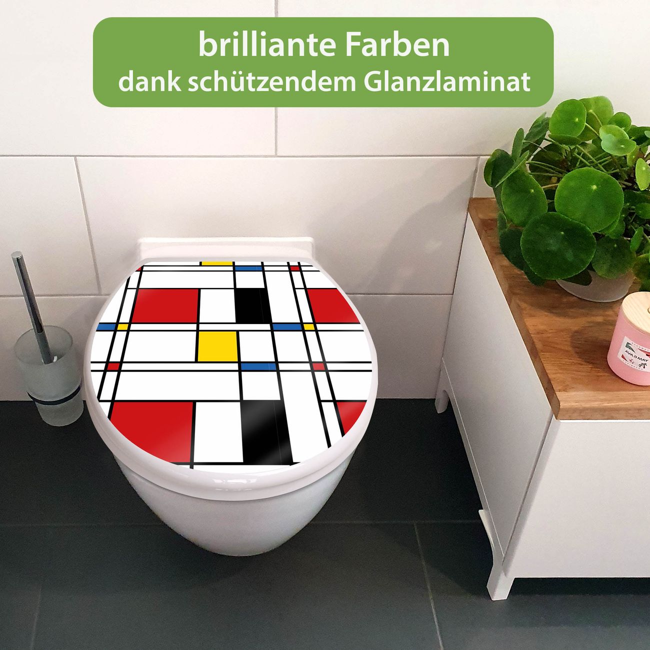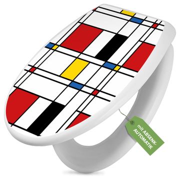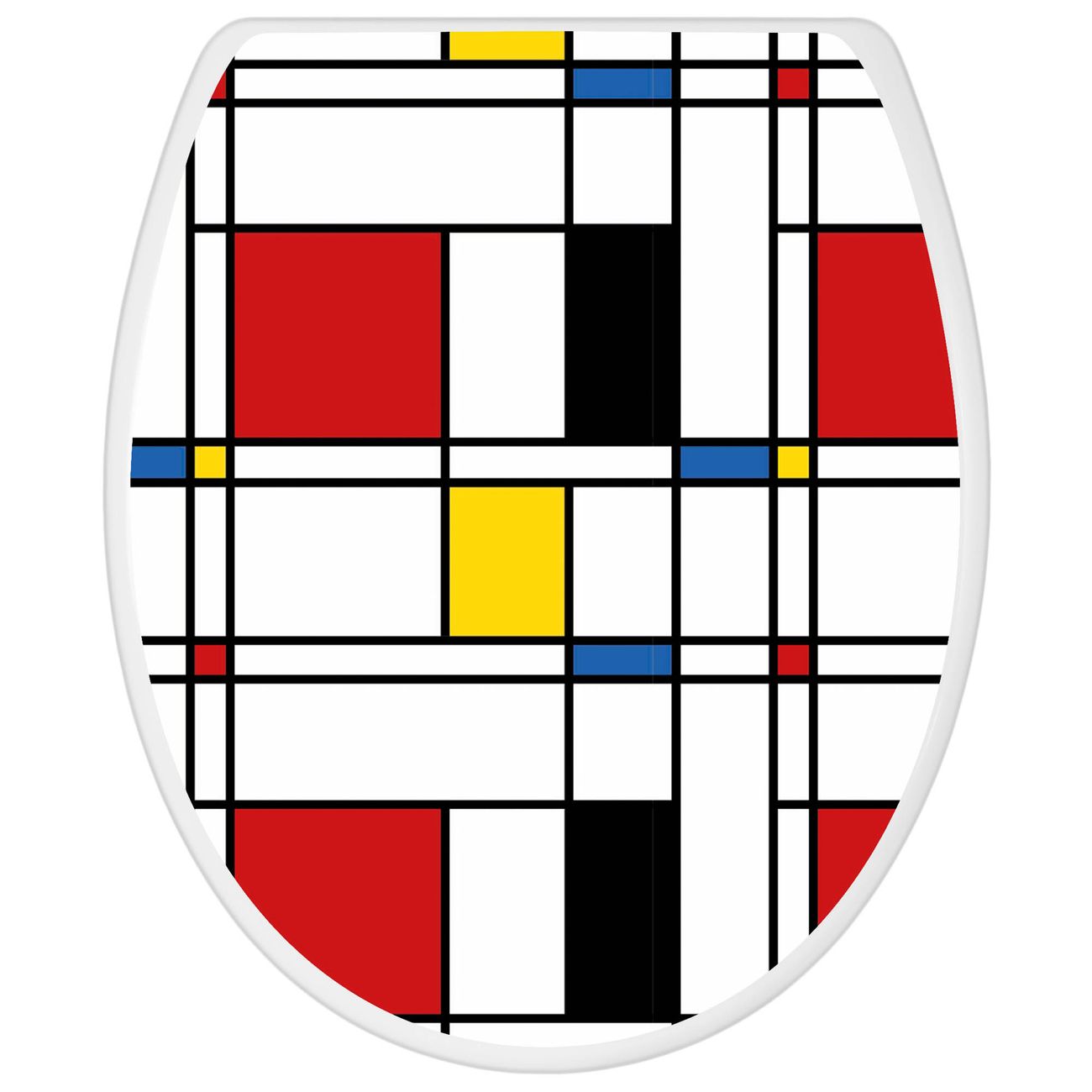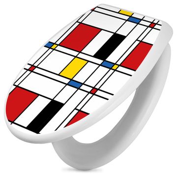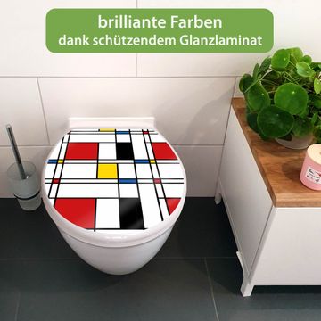 Toilettendeckel weiß mit Absenkautomatik Motiv Rot Gelb Blau