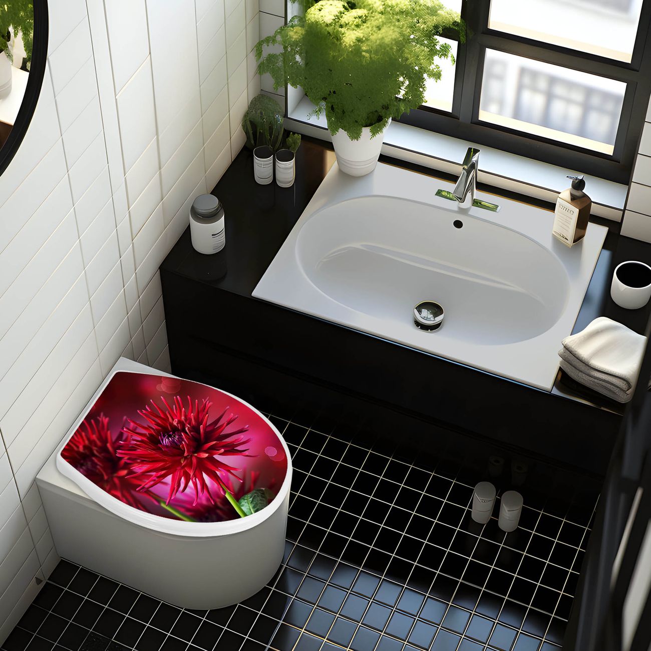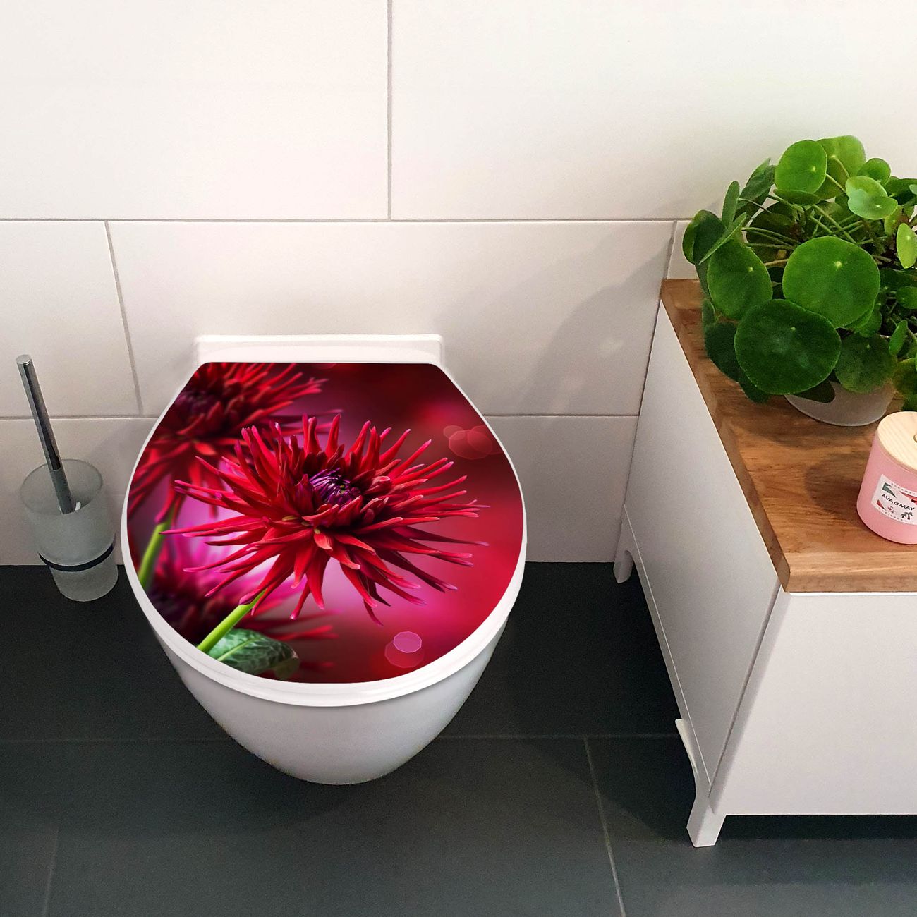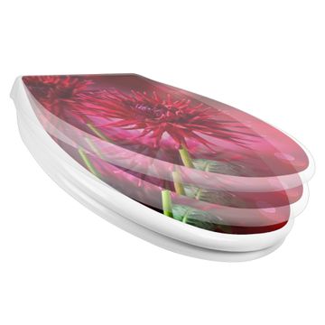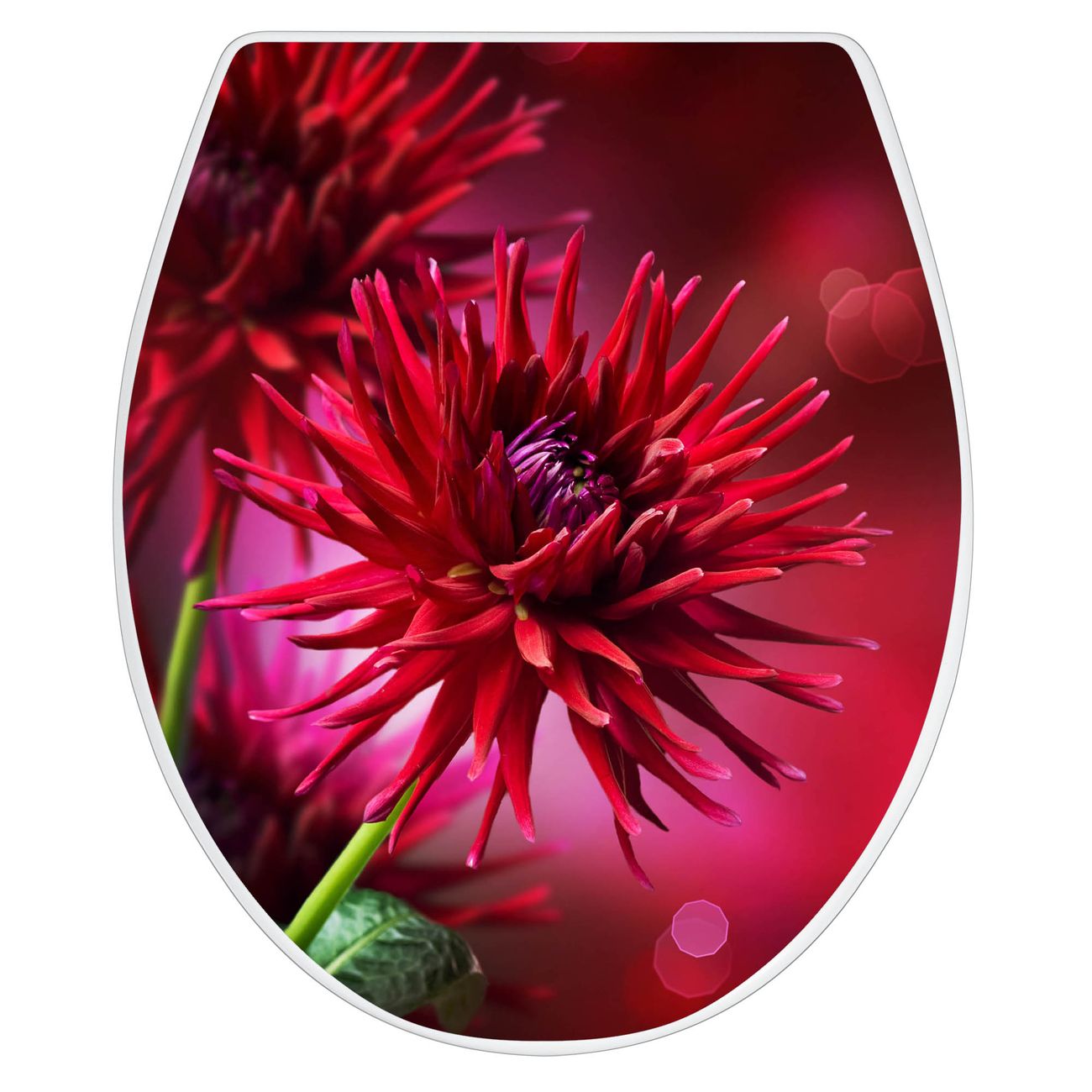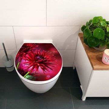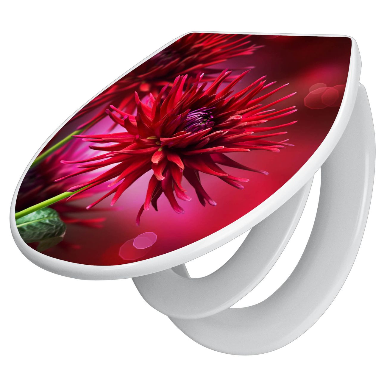 Toilettendeckel weiß mit Absenkautomatik Motiv Rote Dahlien