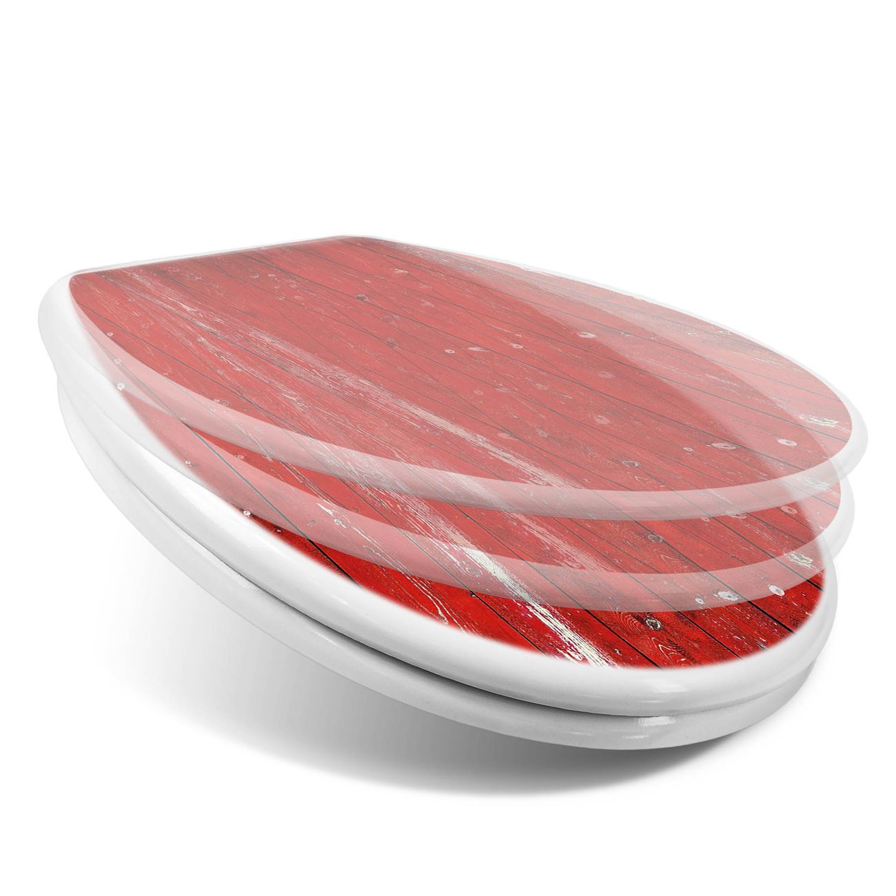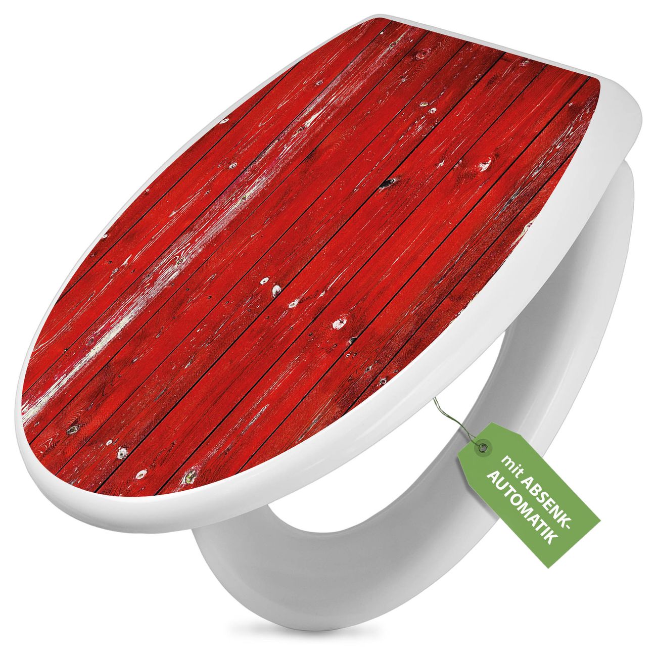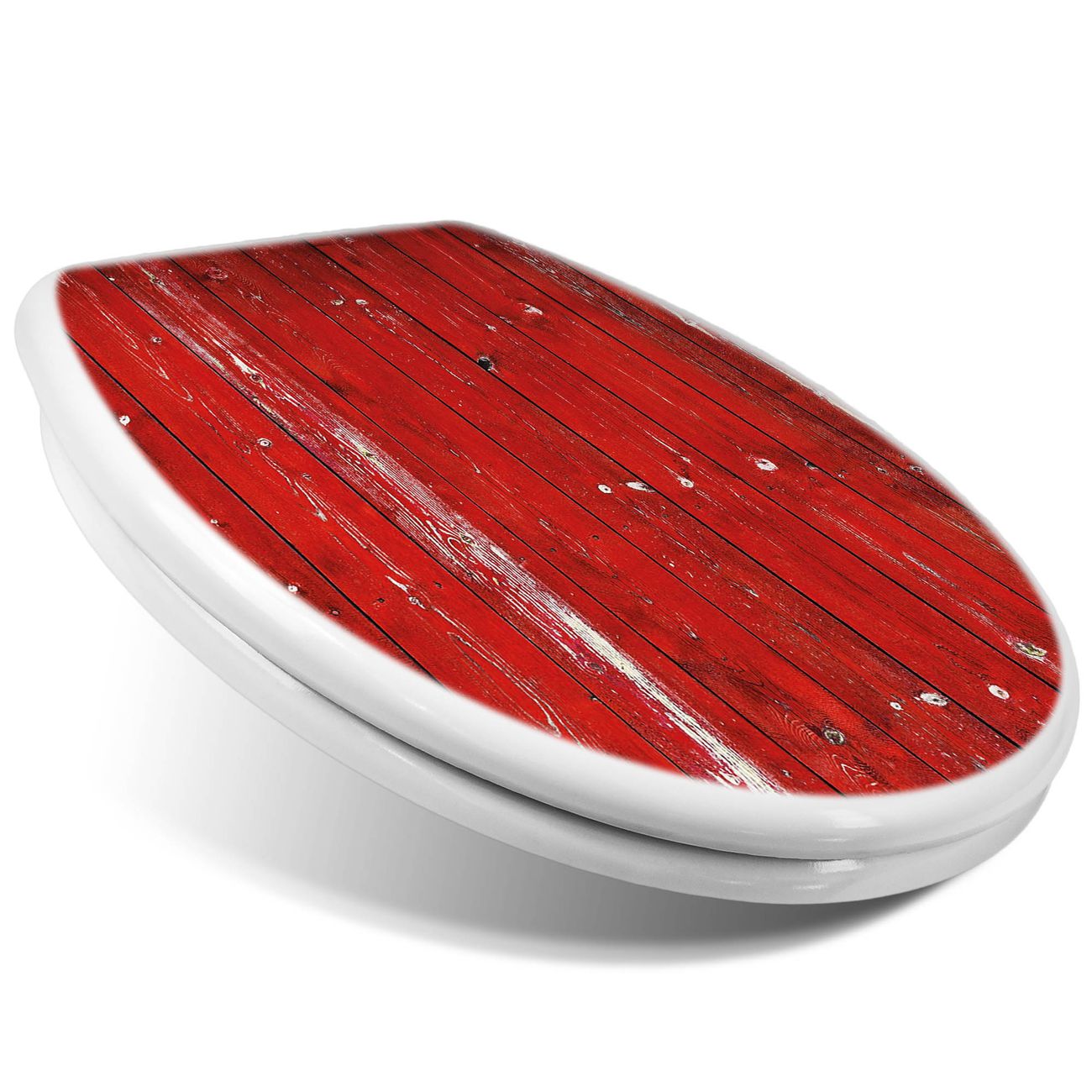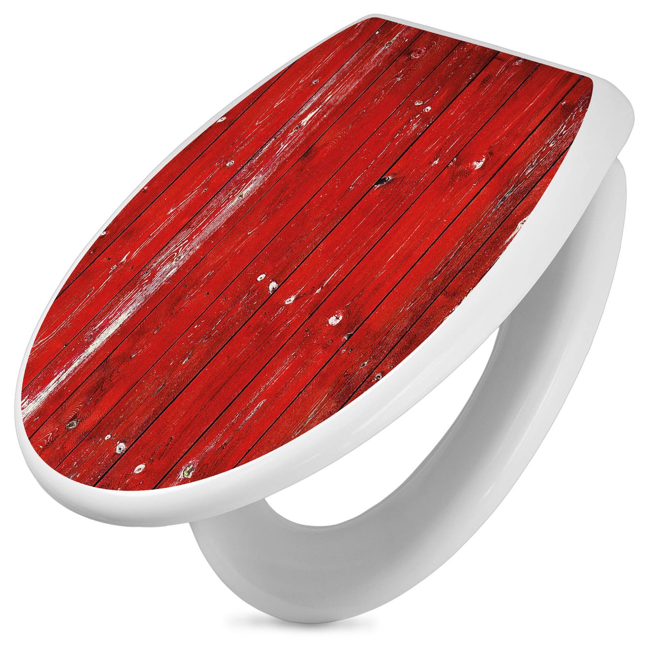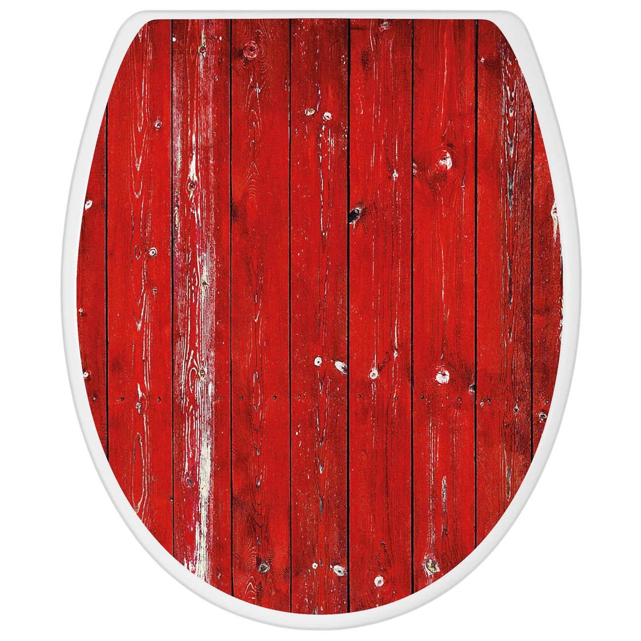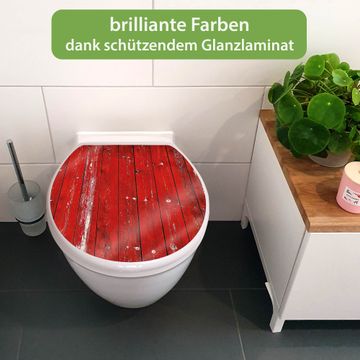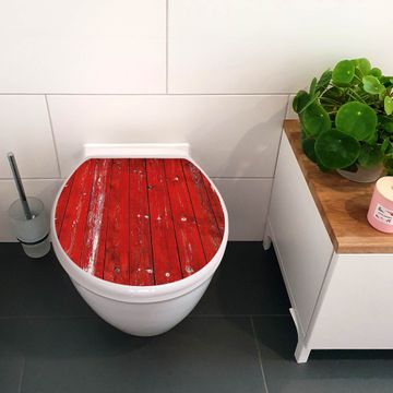 Toilettendeckel weiß mit Absenkautomatik Motiv Rote Holzlatten