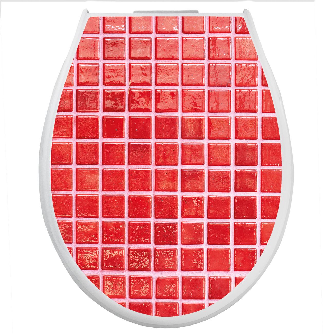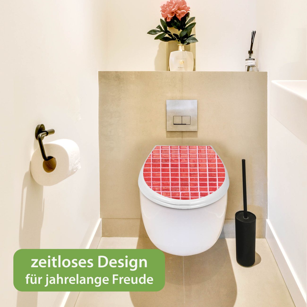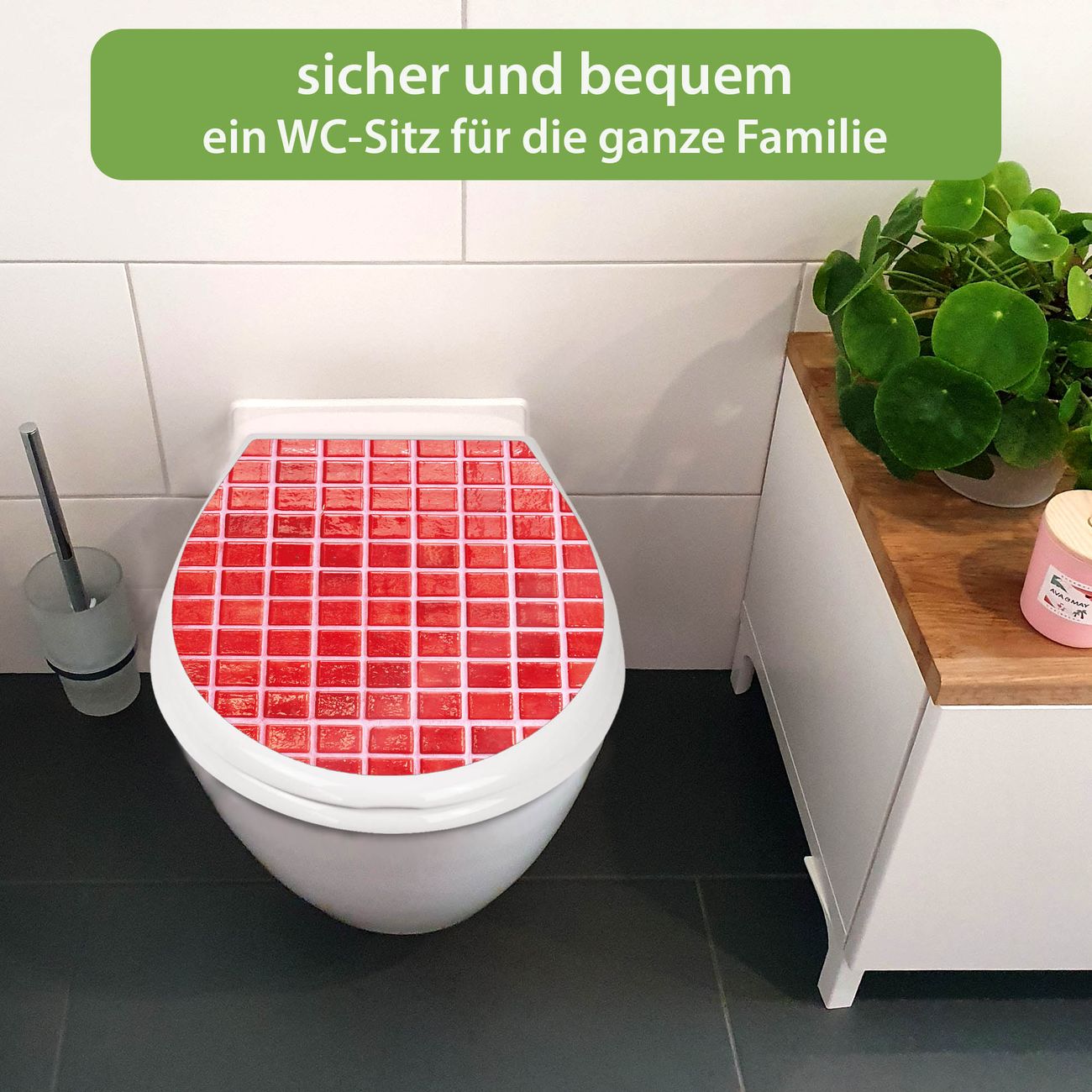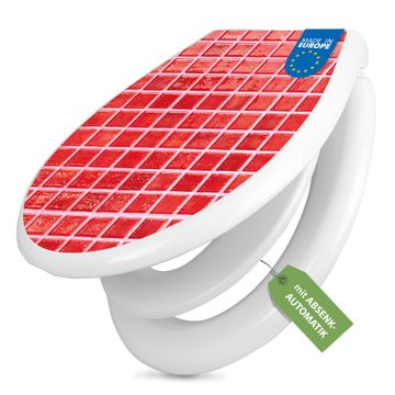Toilettendeckel weiß mit Absenkautomatik Motiv Rote Kacheln