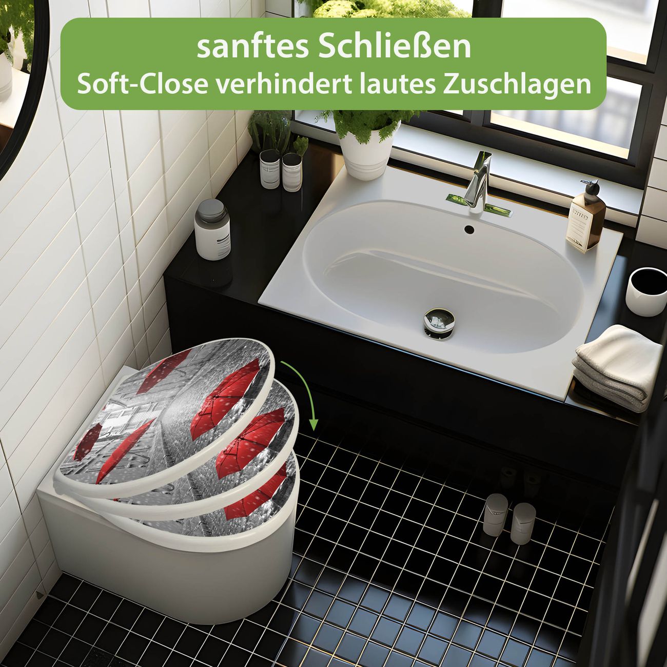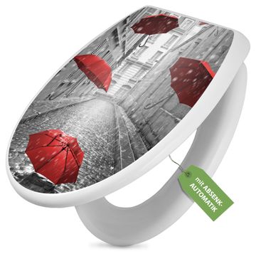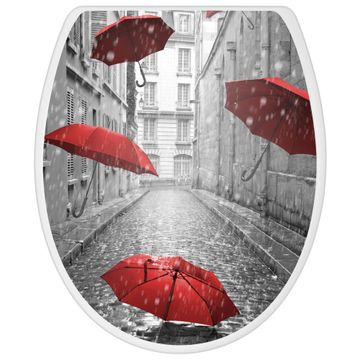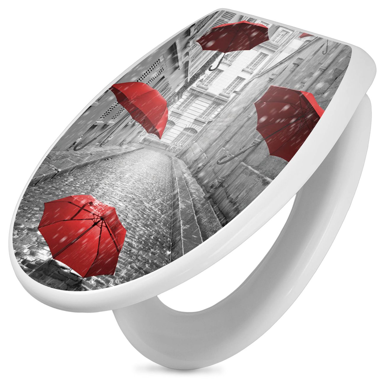 Toilettendeckel weiß mit Absenkautomatik Motiv Rote Schirme