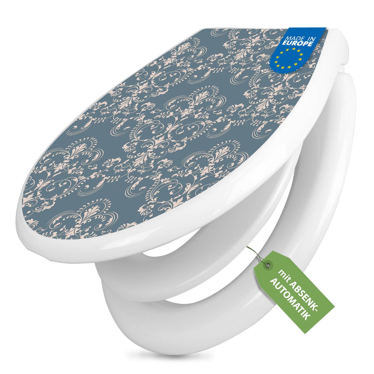 Toilettendeckel weiß mit Absenkautomatik Motiv Royal Creme Blau