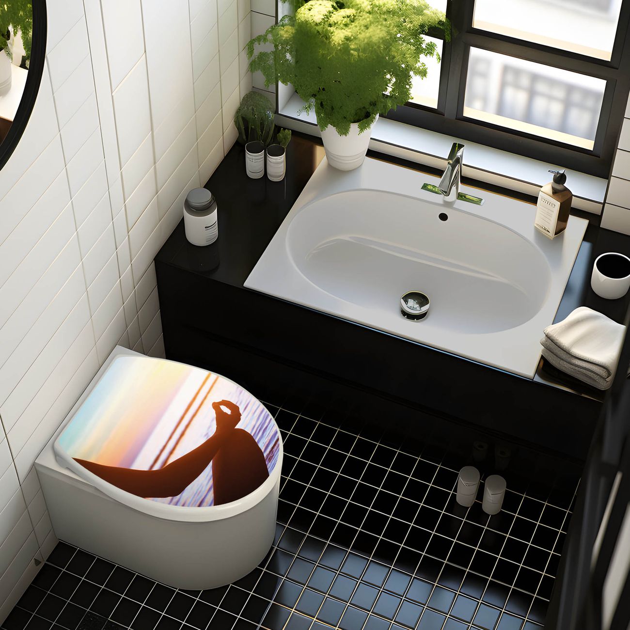 Toilettendeckel weiß mit Absenkautomatik Motiv Ruhe