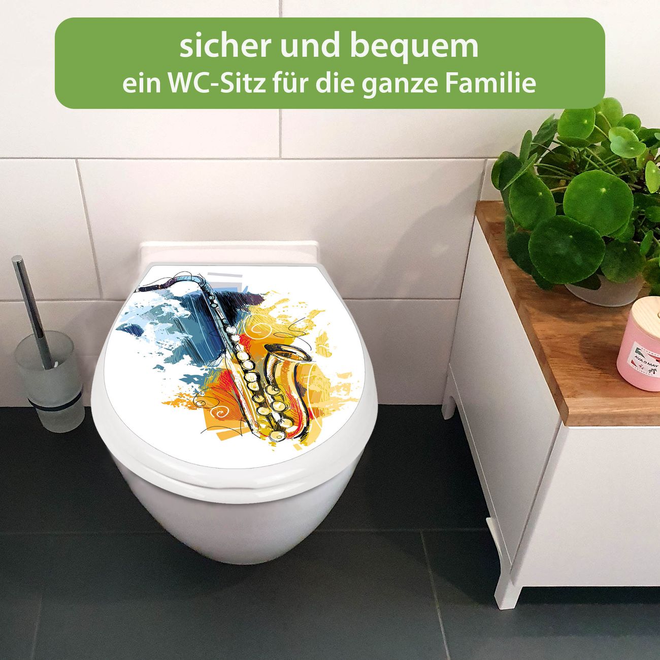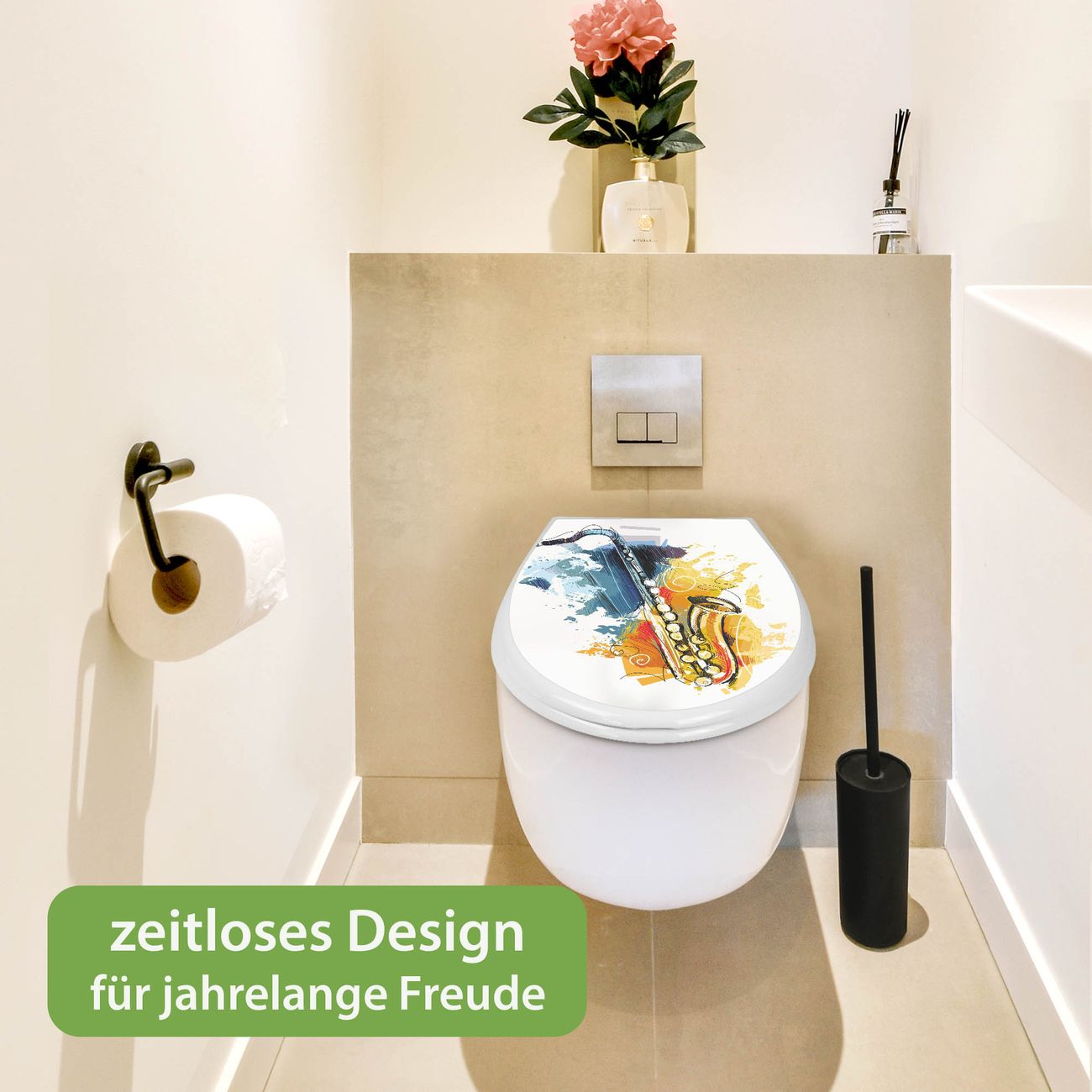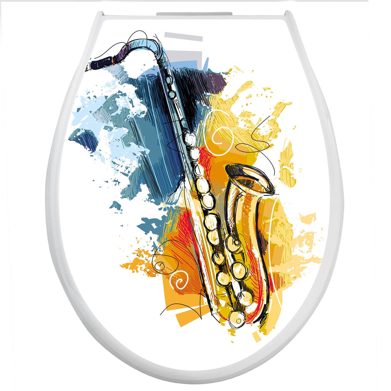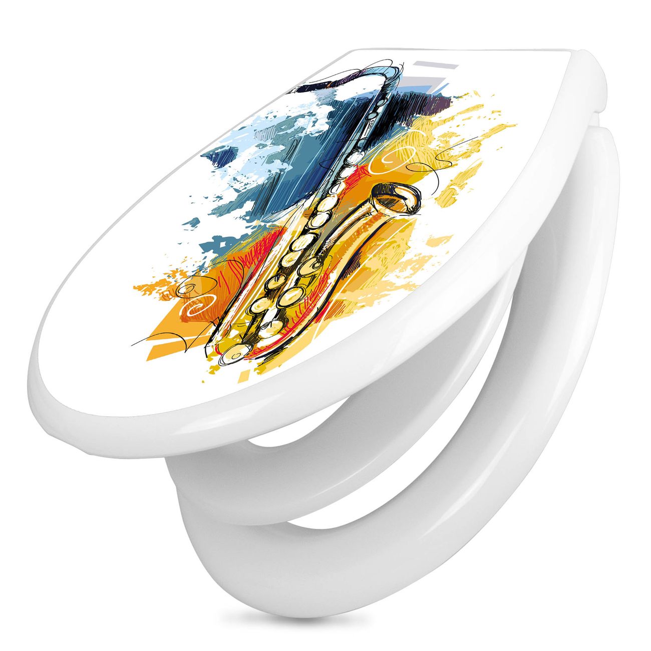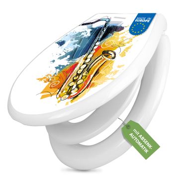 Toilettendeckel weiß mit Absenkautomatik Motiv Saxophon