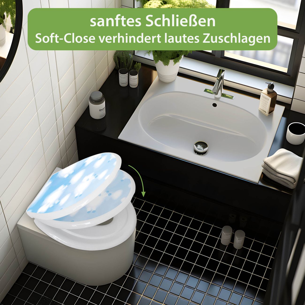 Toilettendeckel weiß mit Absenkautomatik Motiv Schäfchenwolken