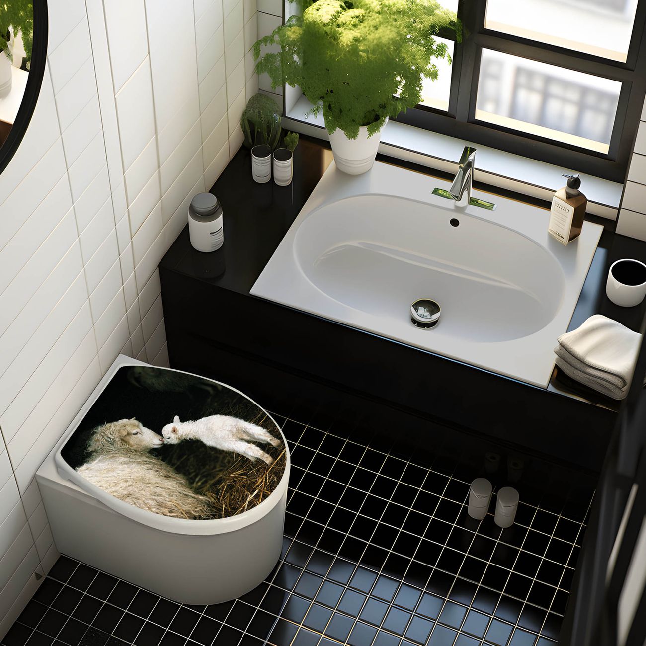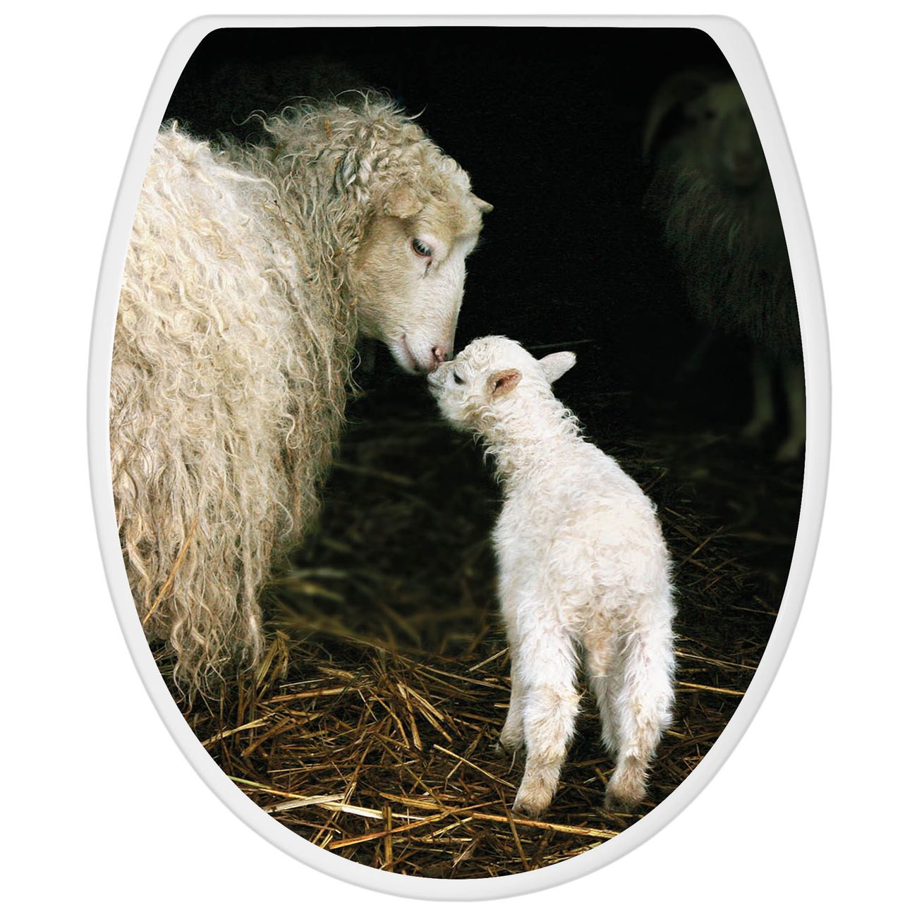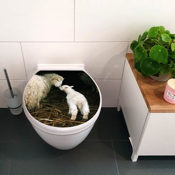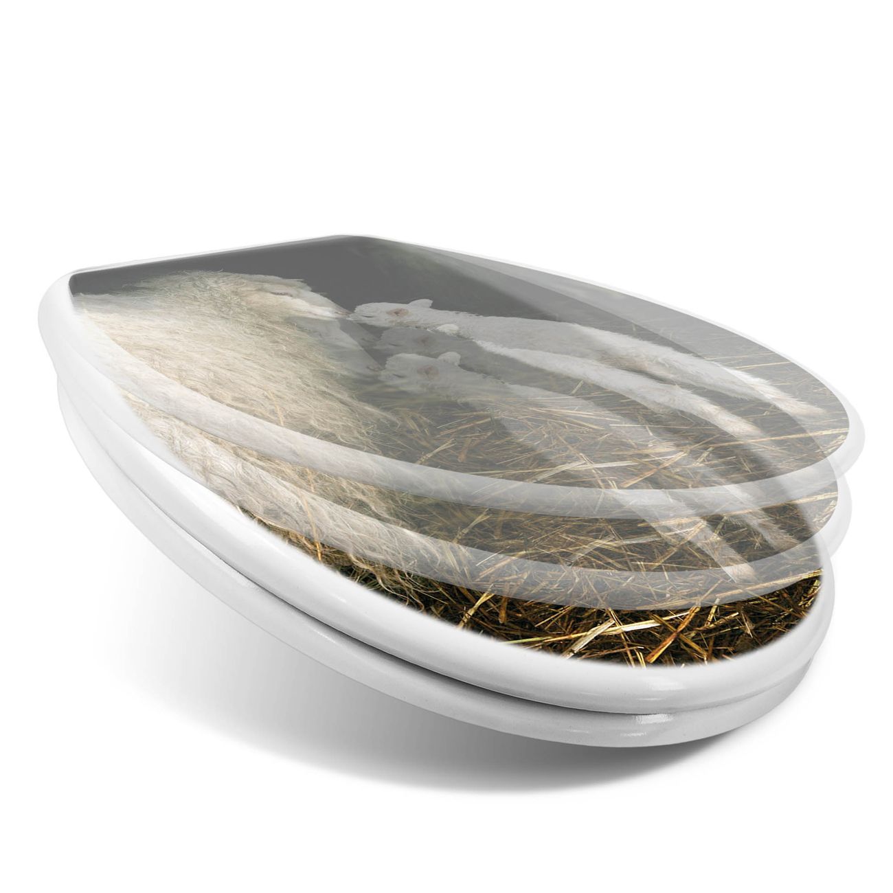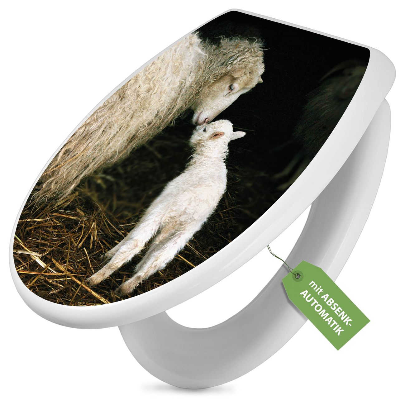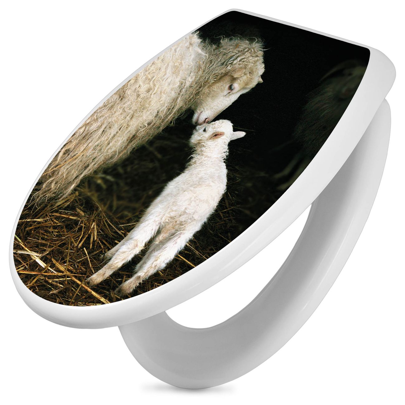 Toilettendeckel weiß mit Absenkautomatik Motiv Schaf Und Lamm