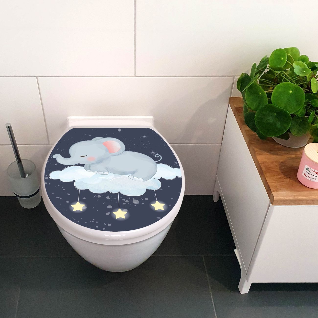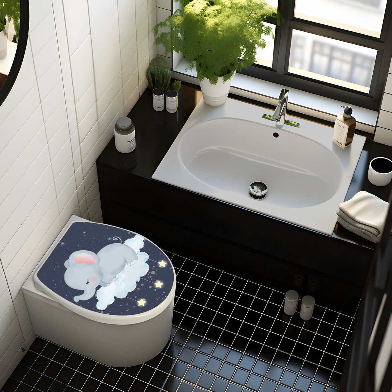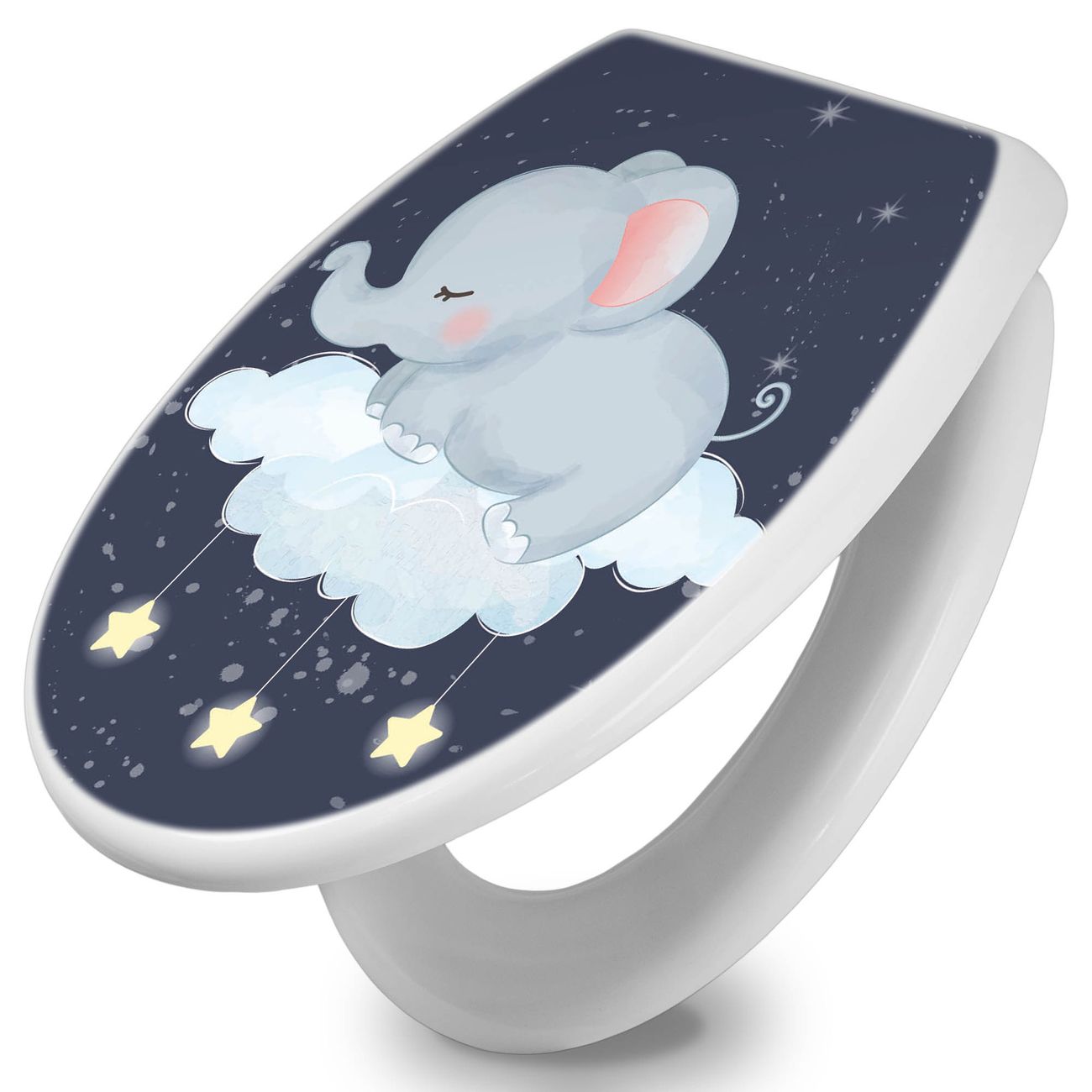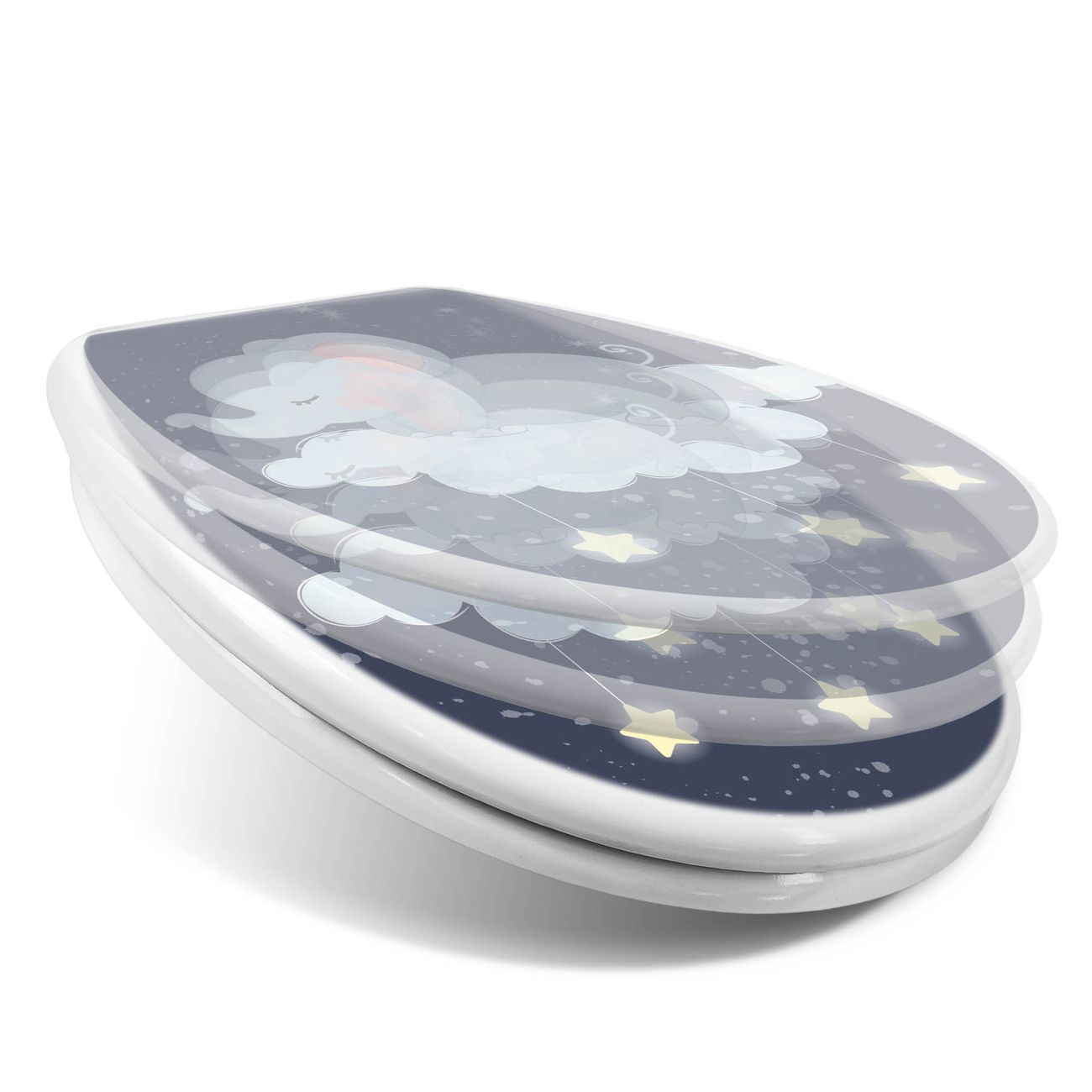 Toilettendeckel weiß mit Absenkautomatik Motiv schlafender Elefant