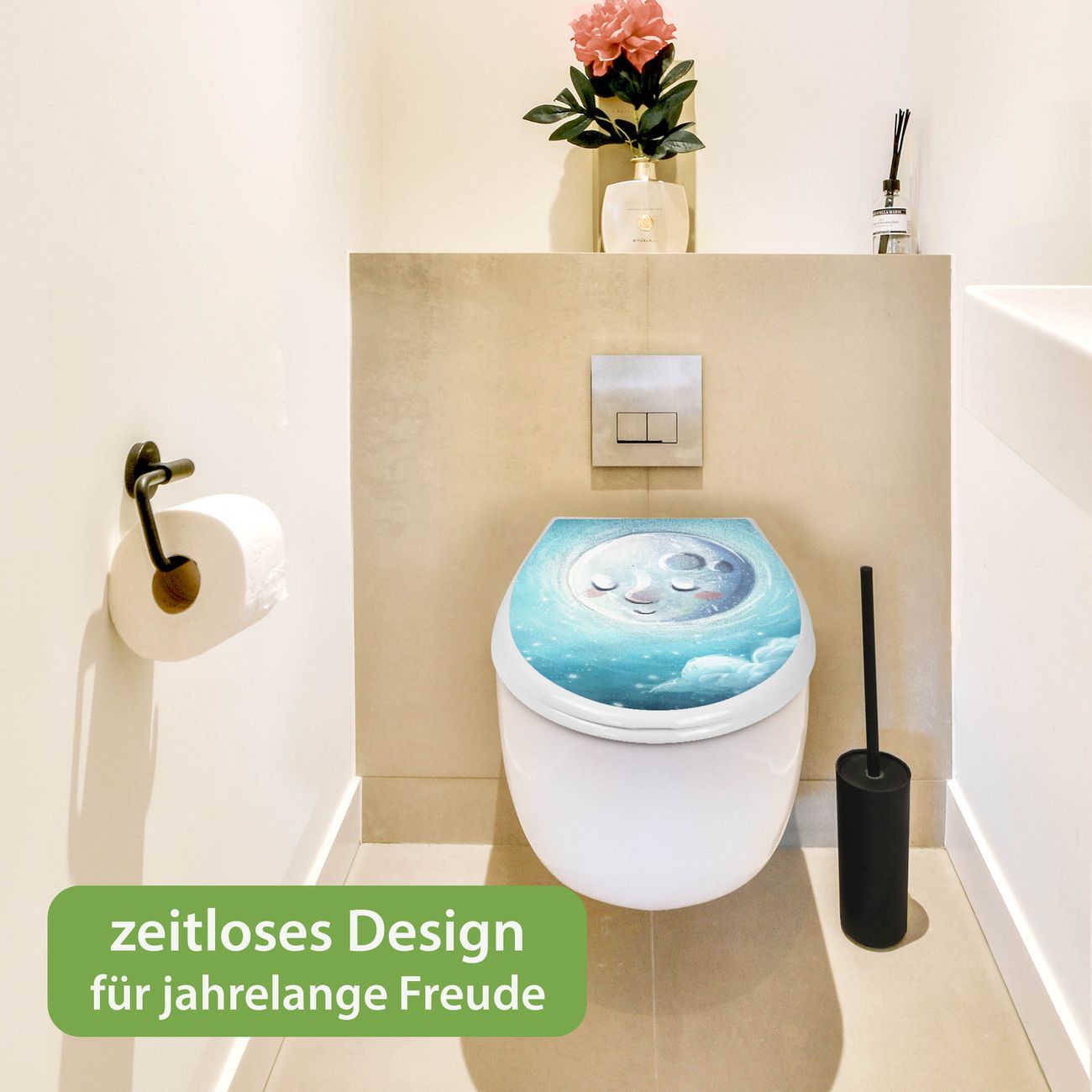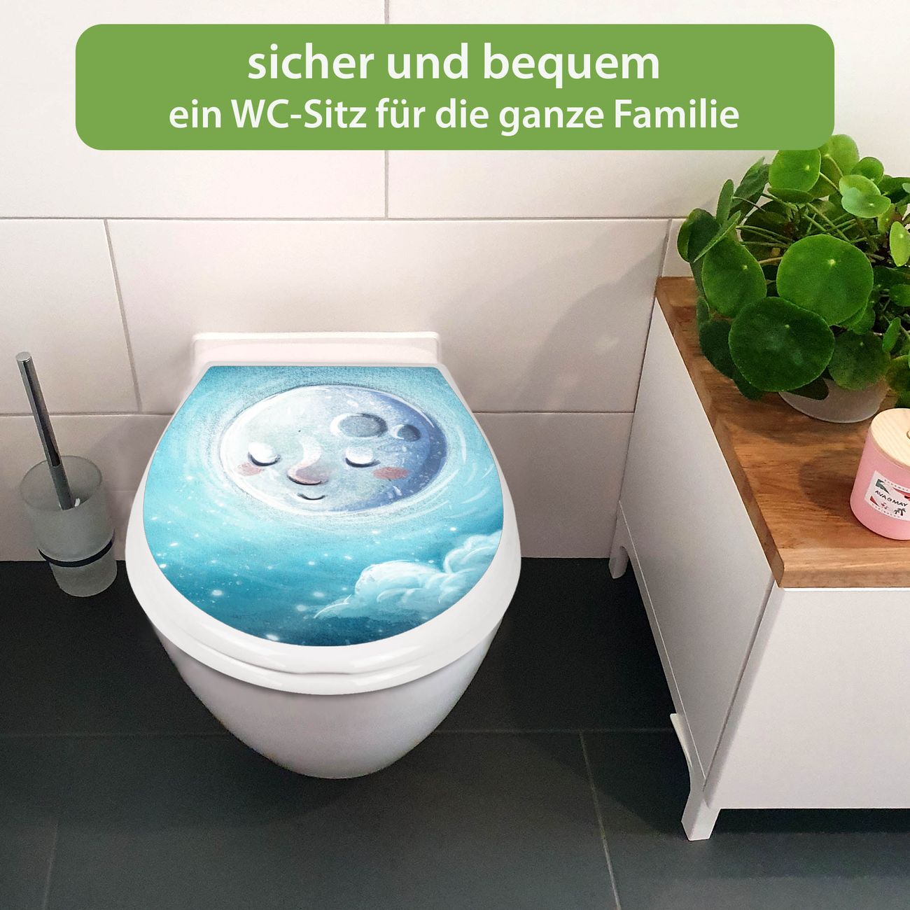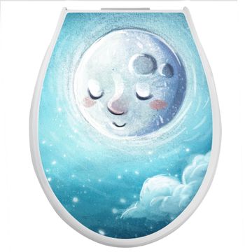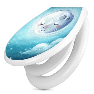 Toilettendeckel weiß mit Absenkautomatik Motiv schlafender Mond