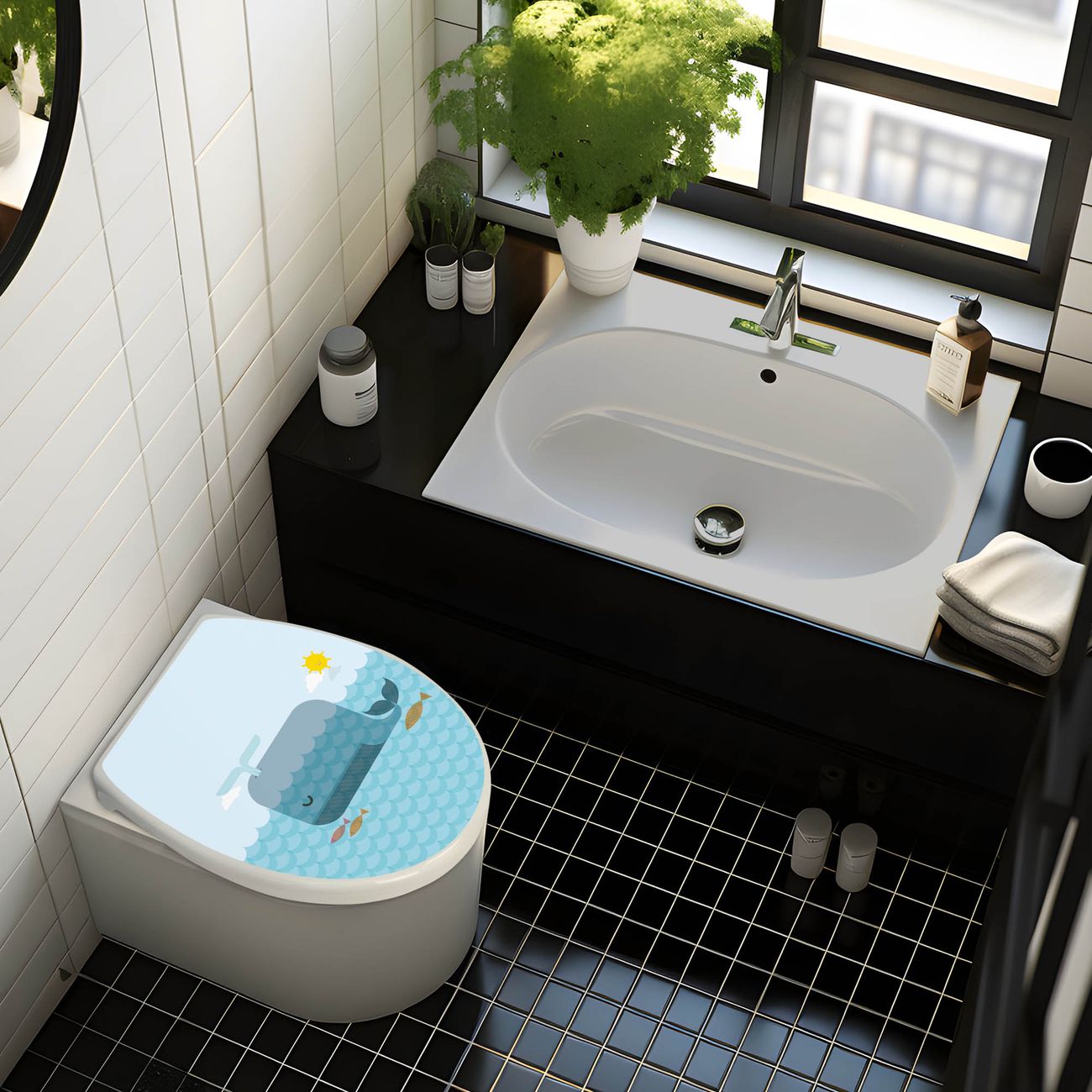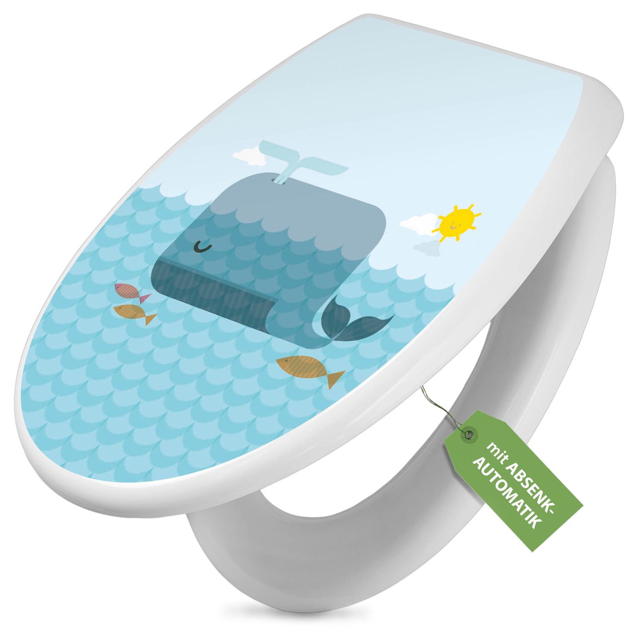 Toilettendeckel weiß mit Absenkautomatik Motiv Schlafender Wal
