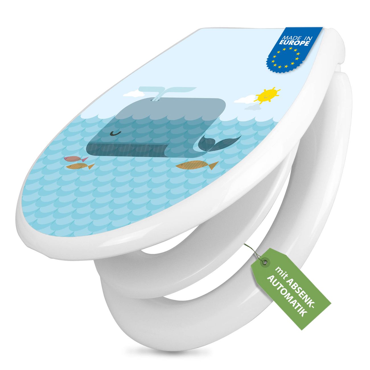 Toilettendeckel weiß mit Absenkautomatik Motiv Schlafender Wal
