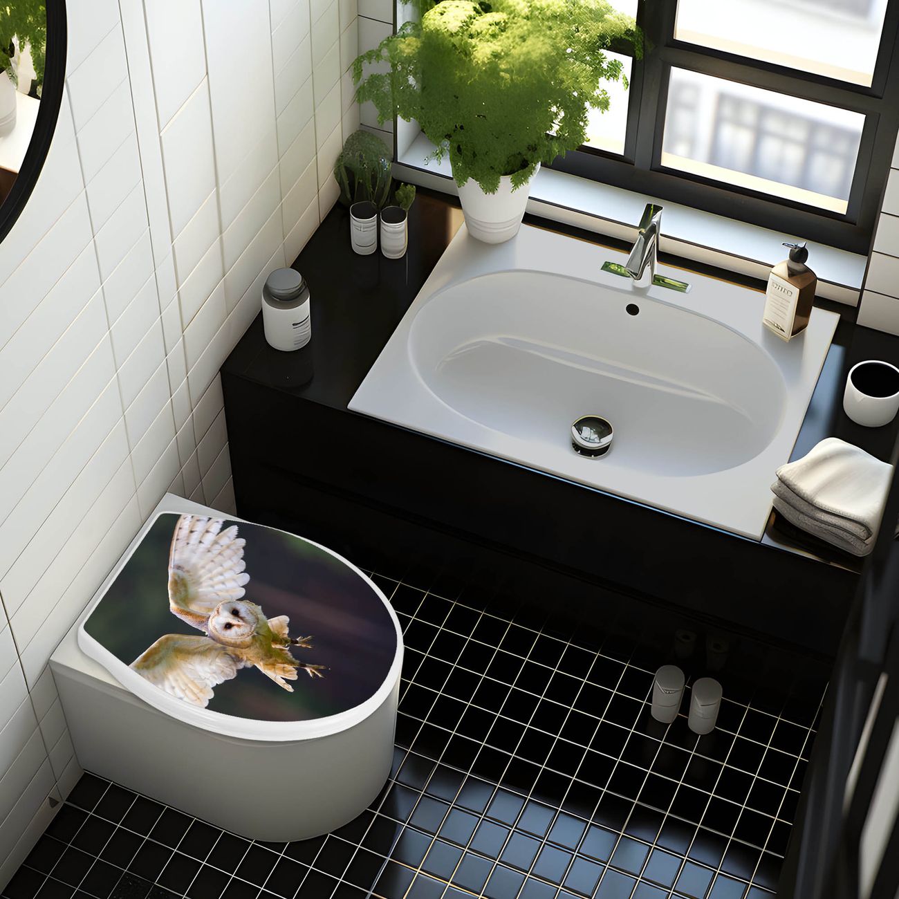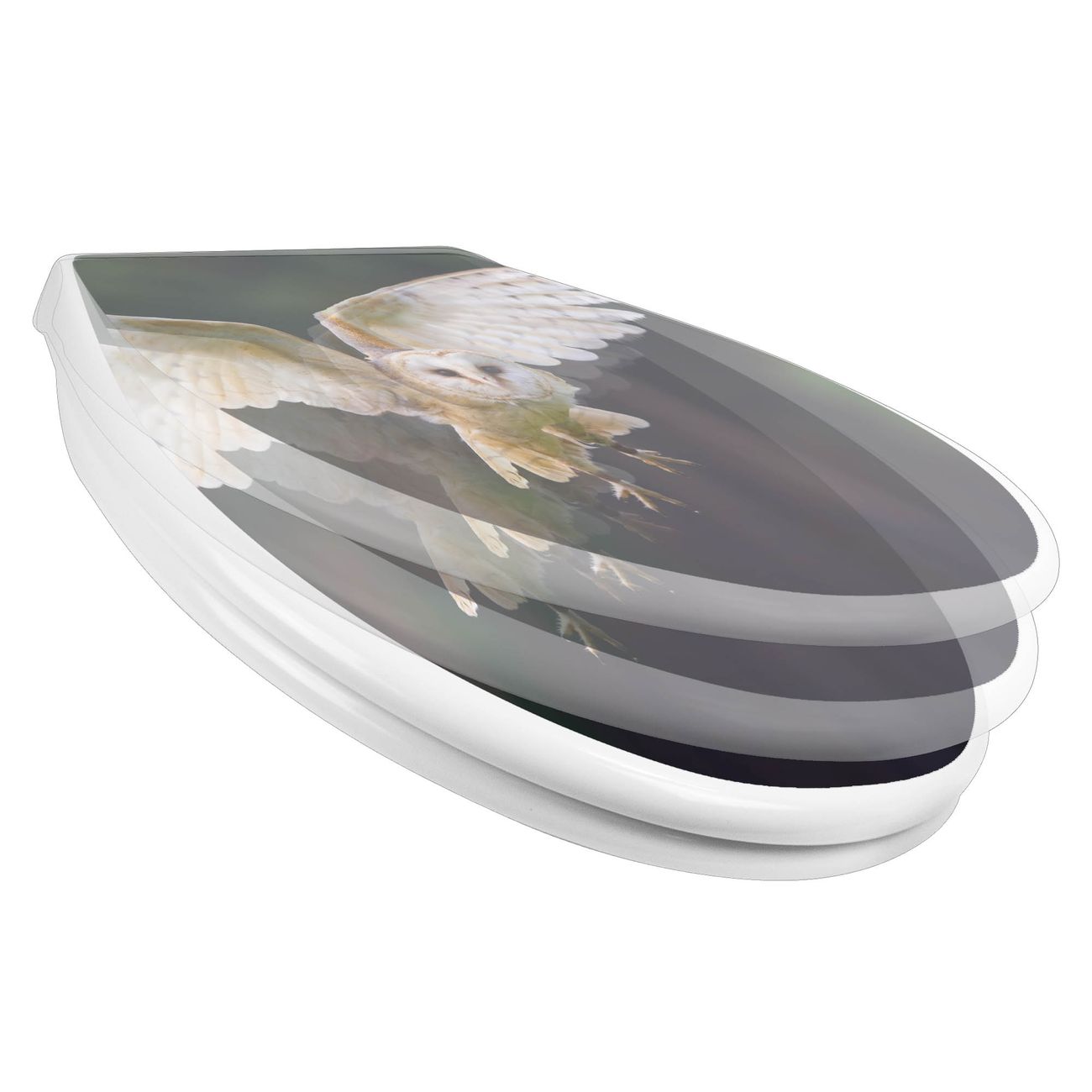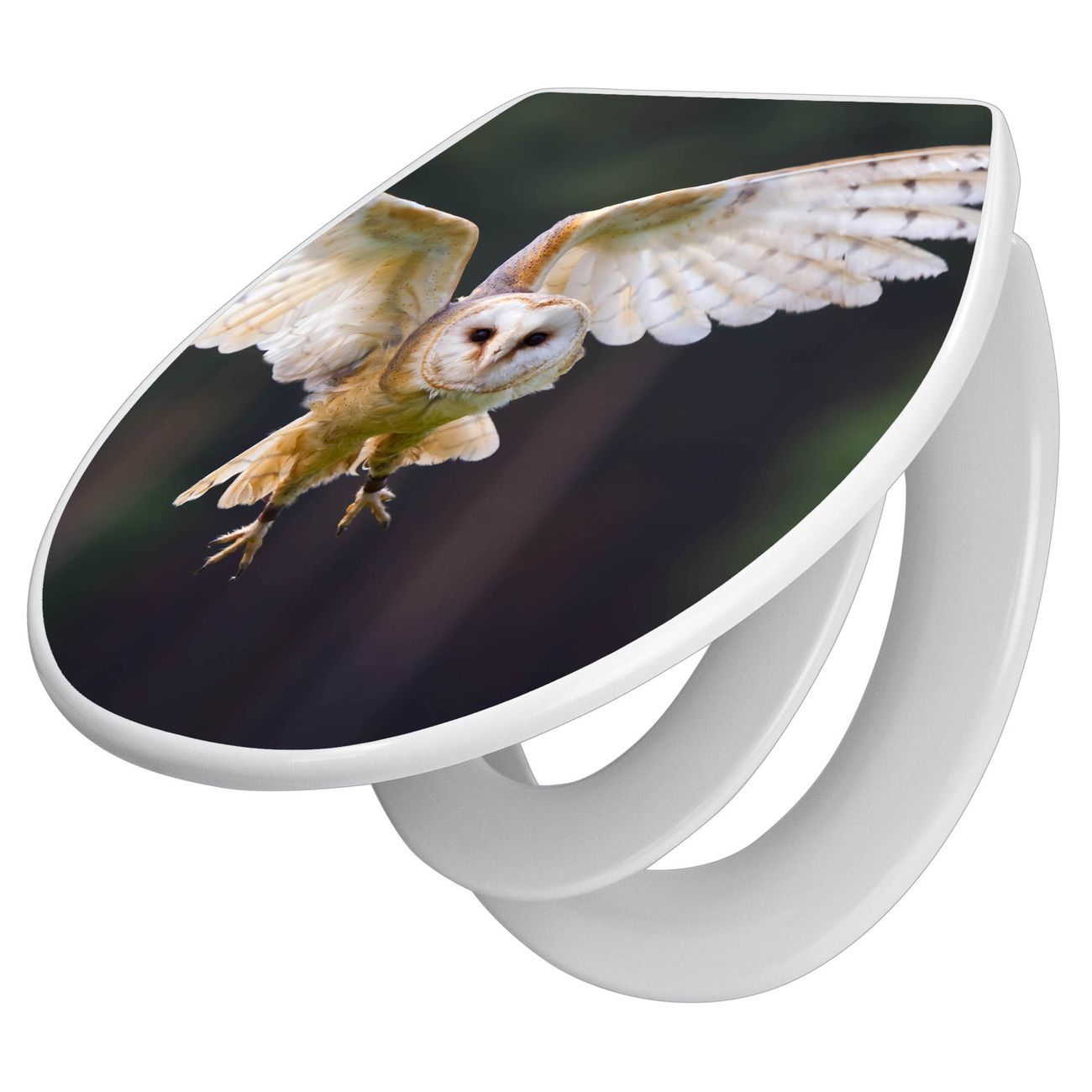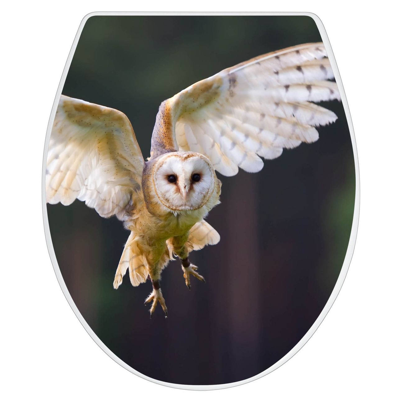 Toilettendeckel weiß mit Absenkautomatik Motiv Schleiereule