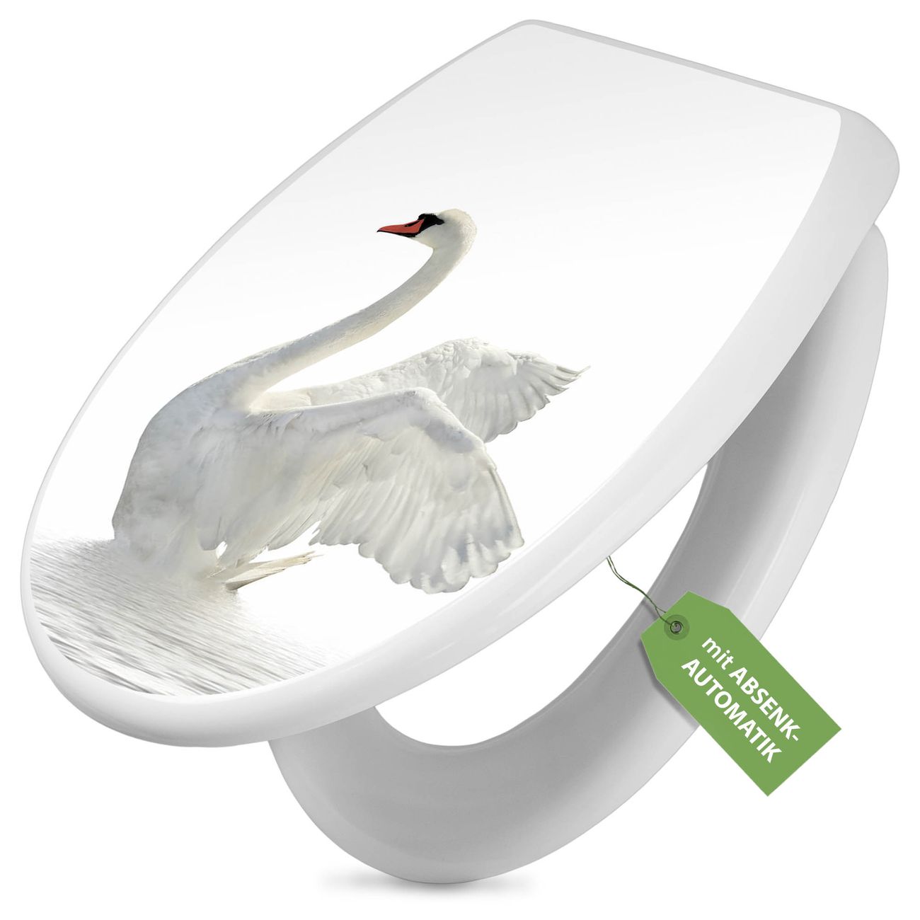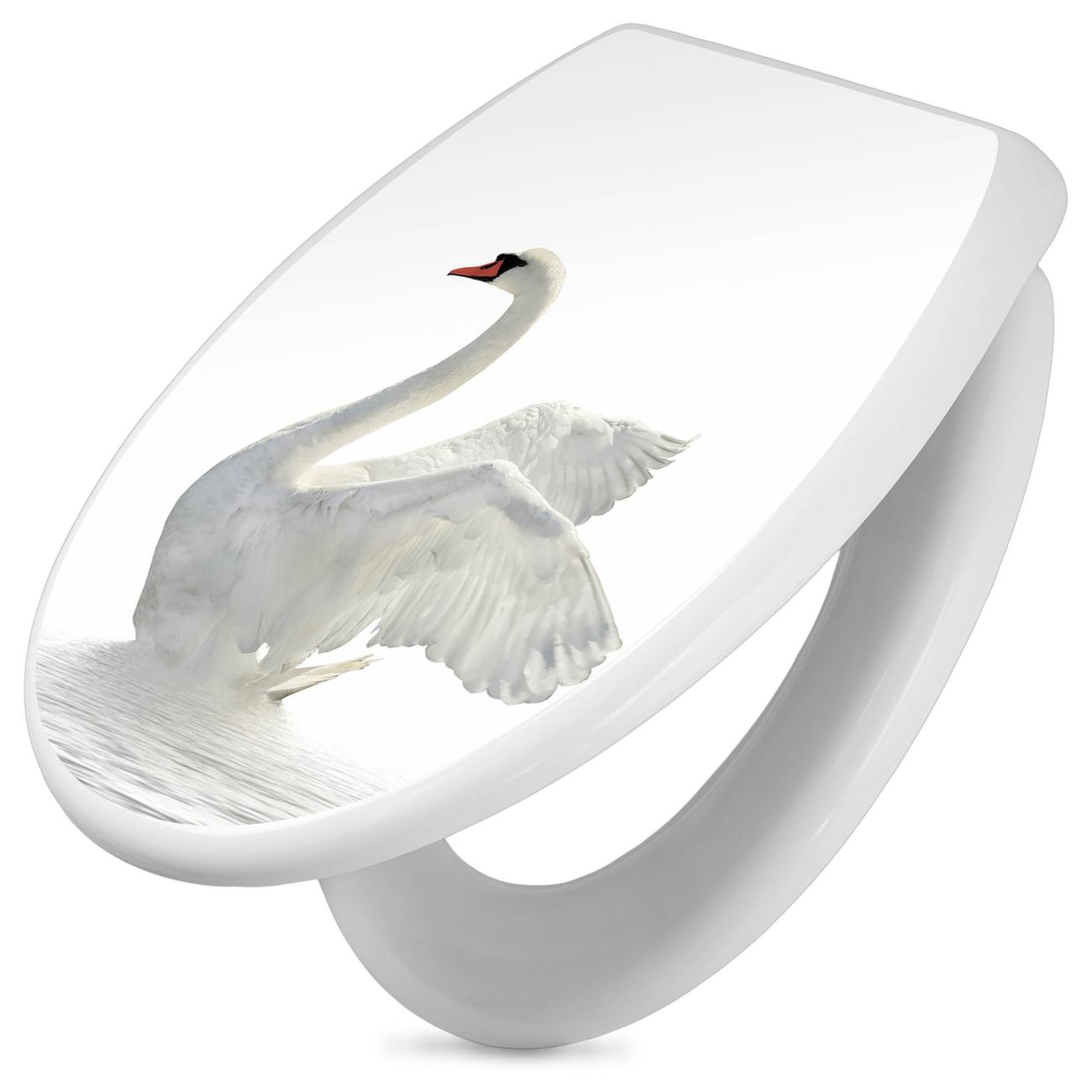 Toilettendeckel weiß mit Absenkautomatik Motiv Schwan