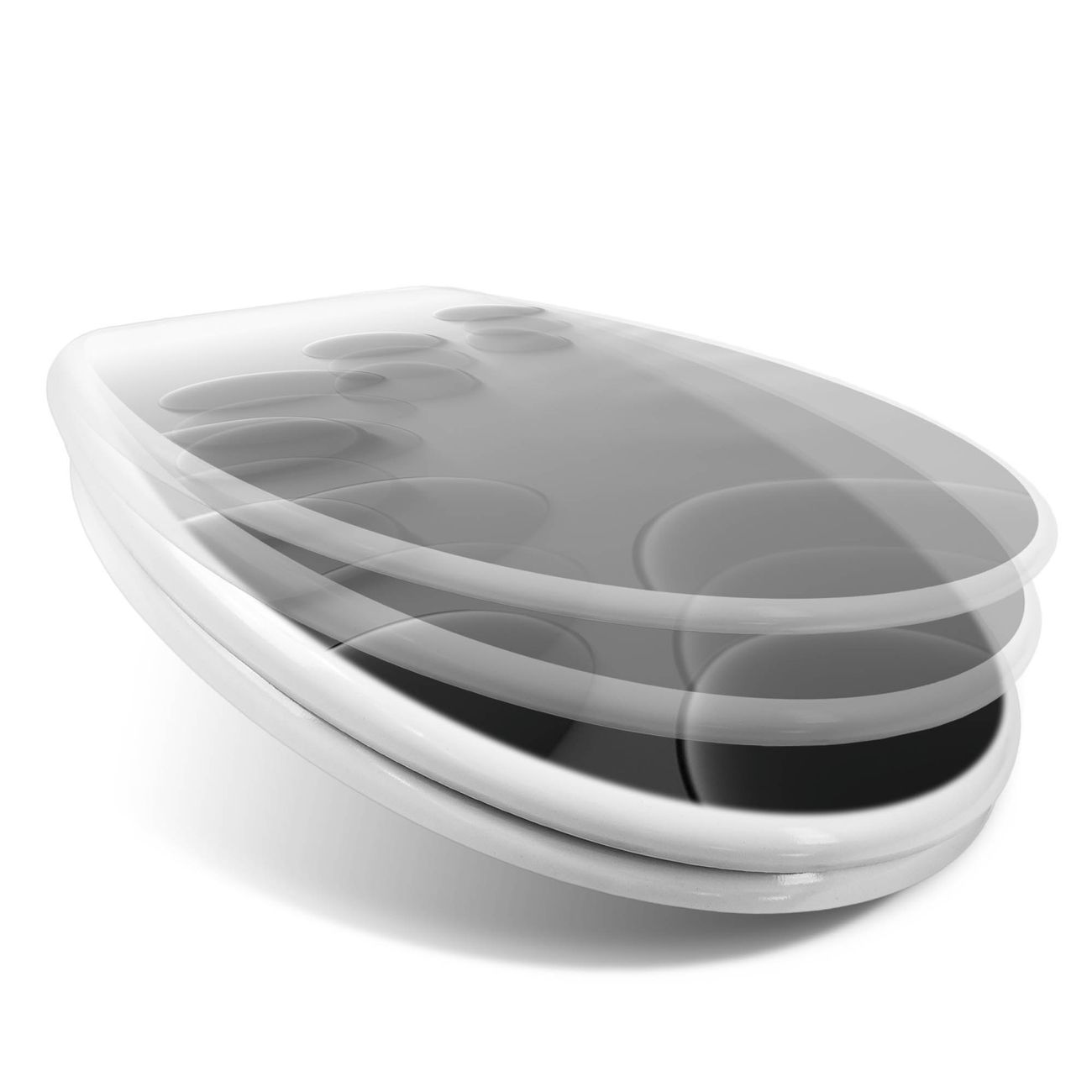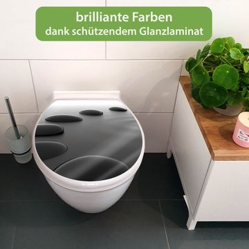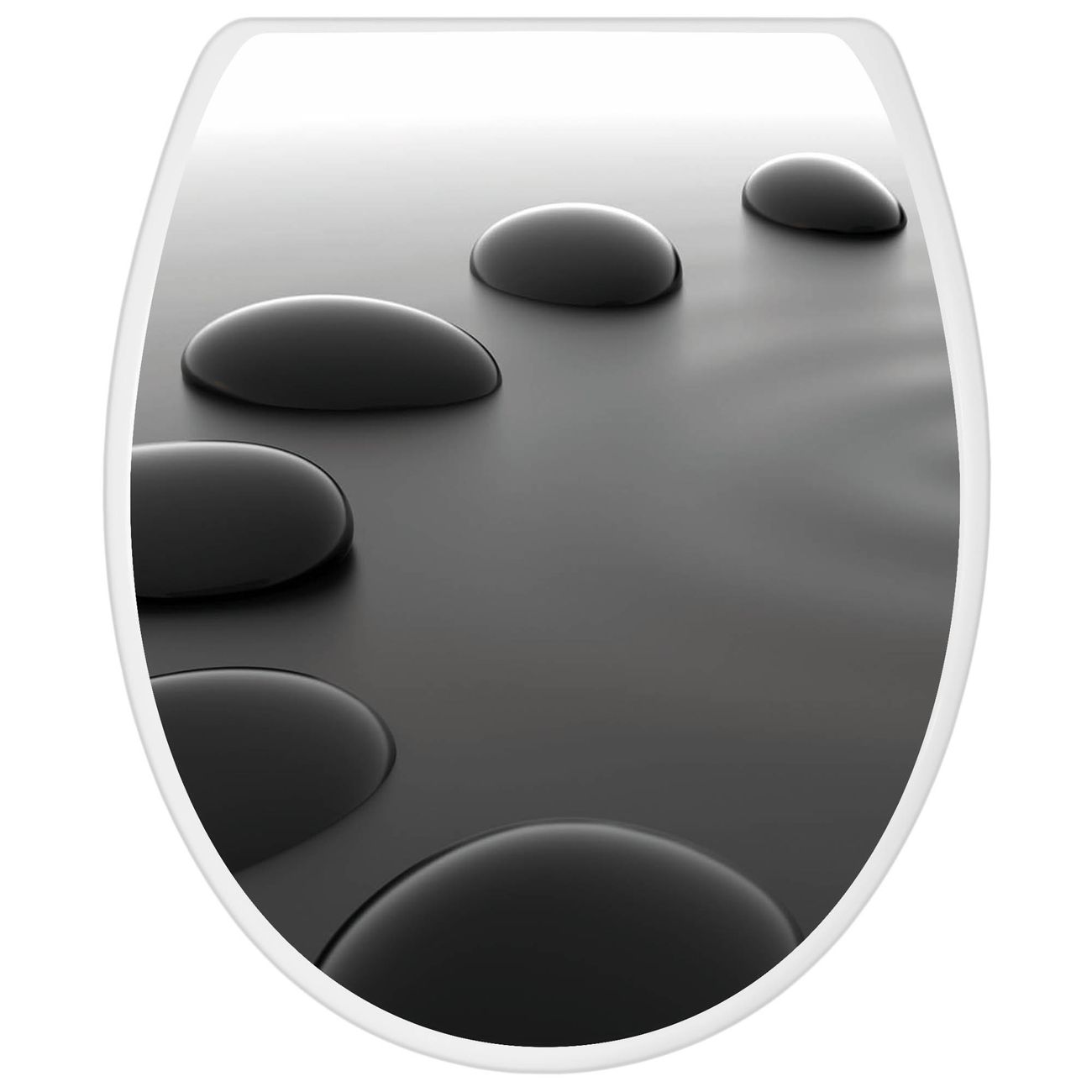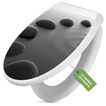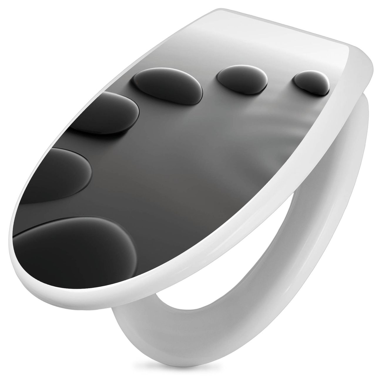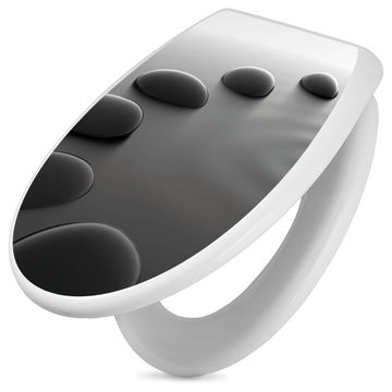 Toilettendeckel weiß mit Absenkautomatik Motiv Schwarze Steine