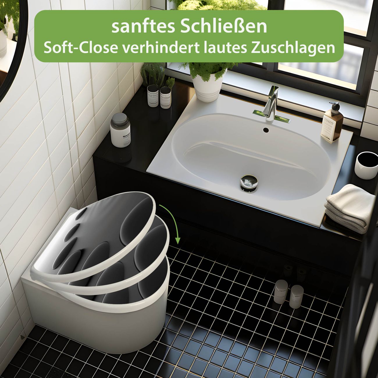 - Material: WC-Sitz und Deckel aus robustem Duroplast