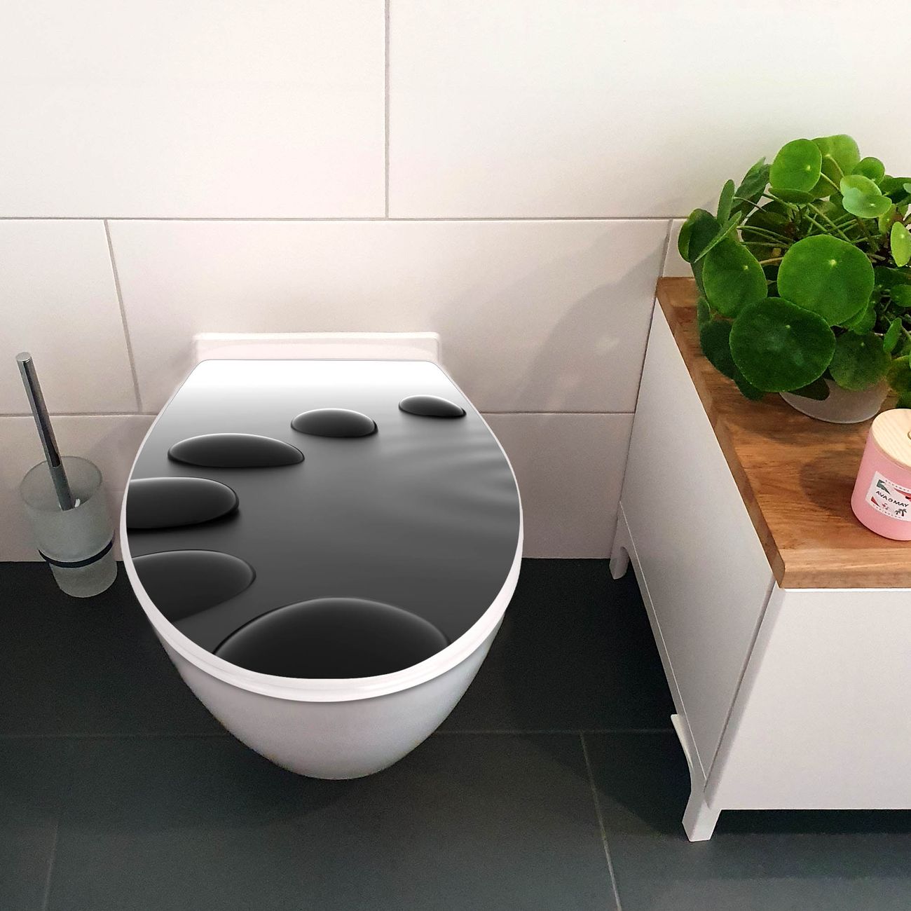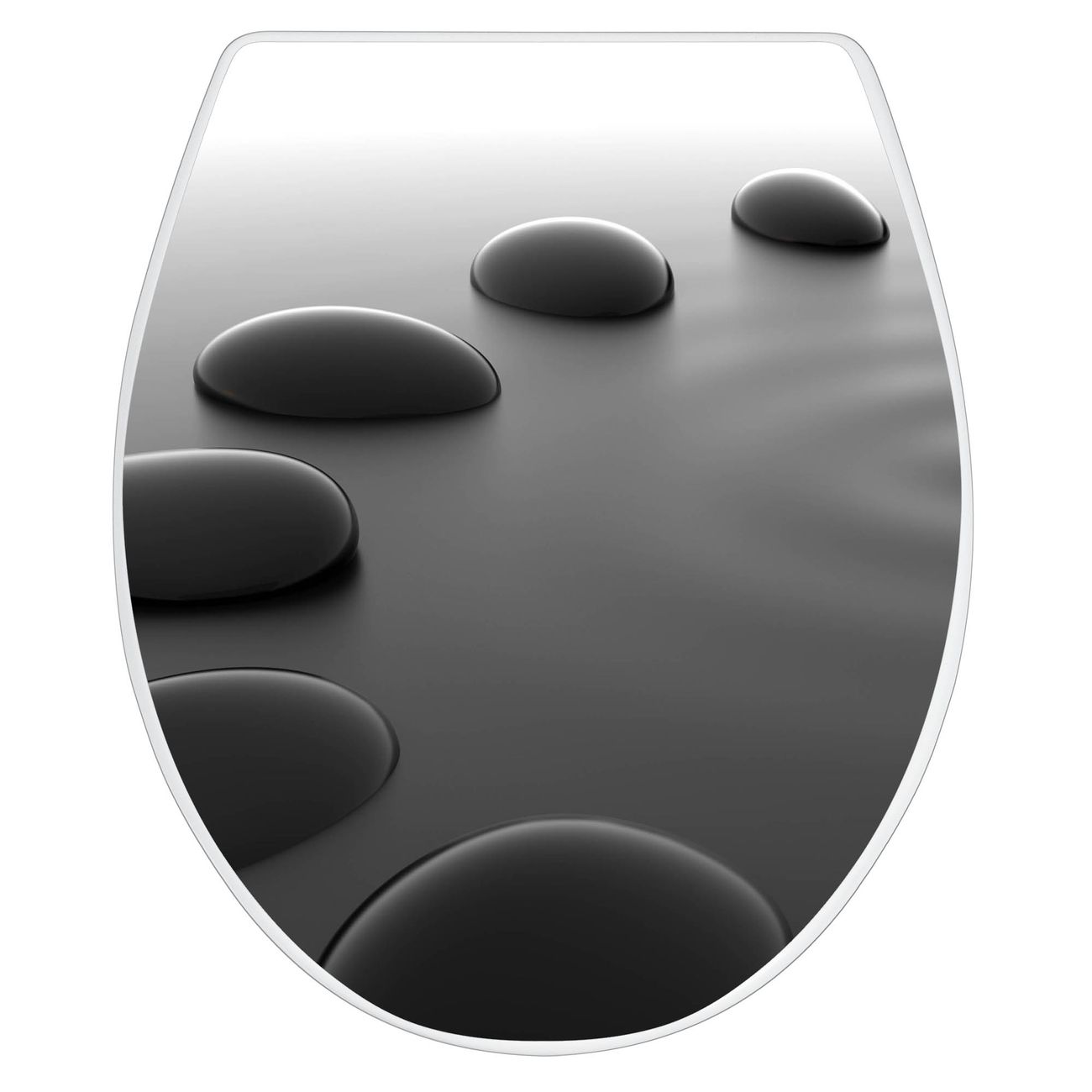 Toilettendeckel weiß mit Absenkautomatik Motiv Schwarze Steine