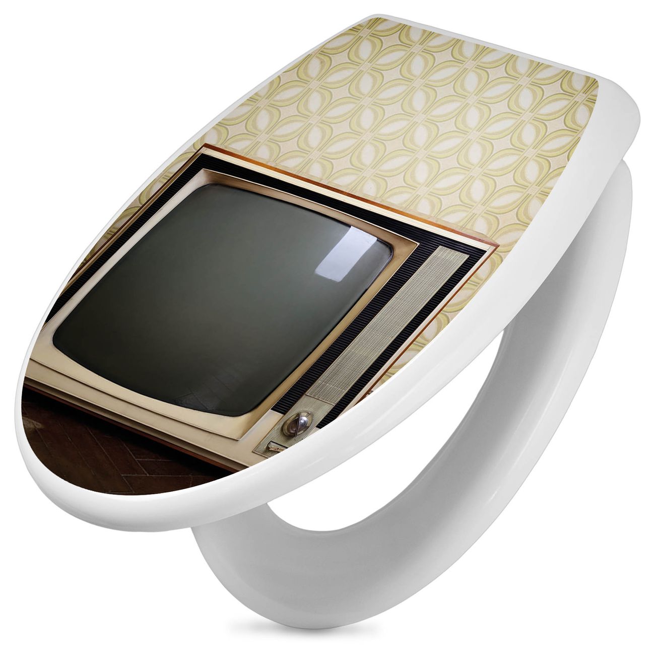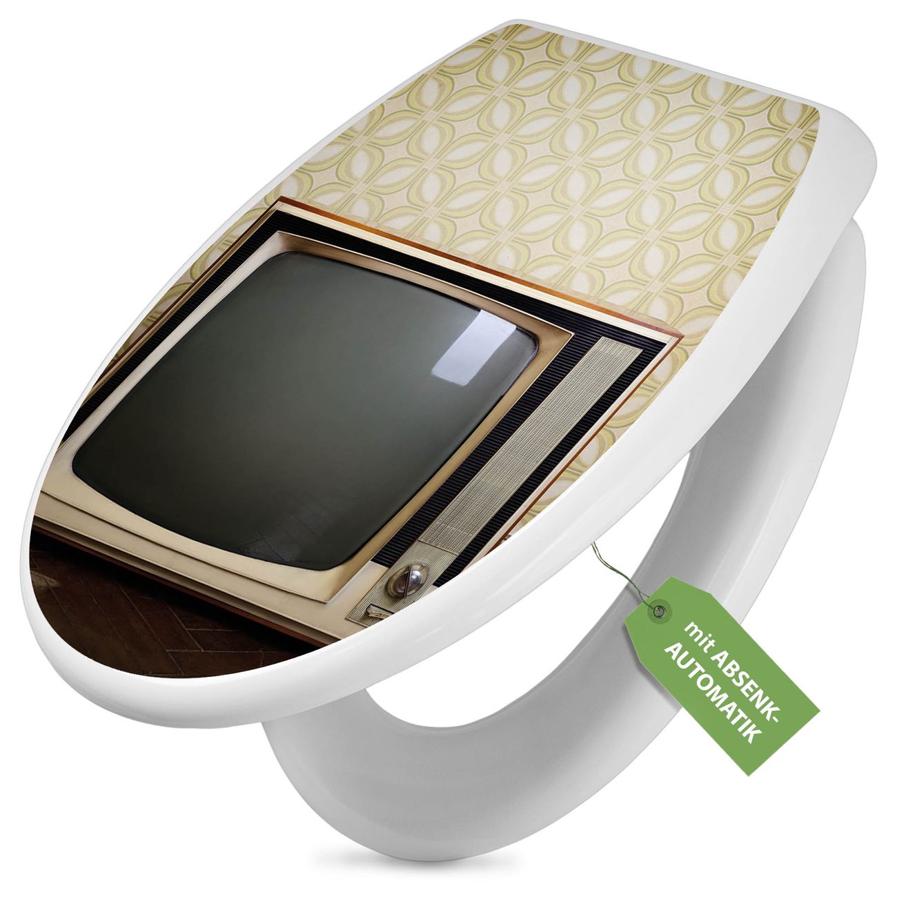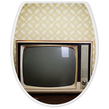 Toilettendeckel weiß mit Absenkautomatik Motiv Schwarzweiß TV