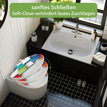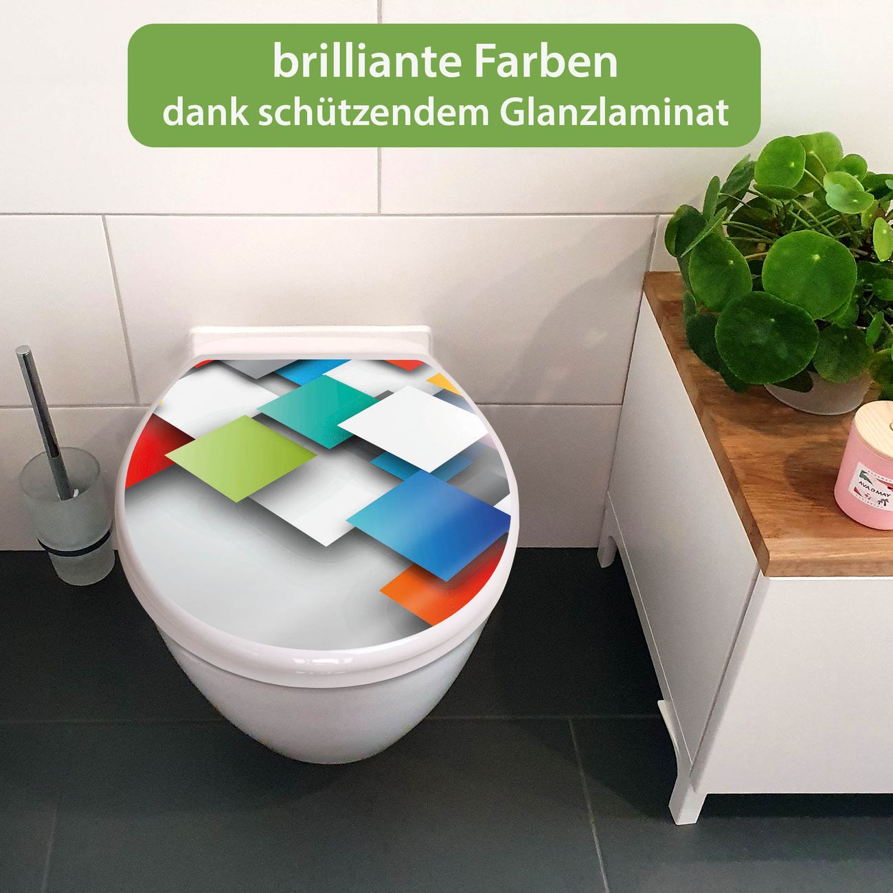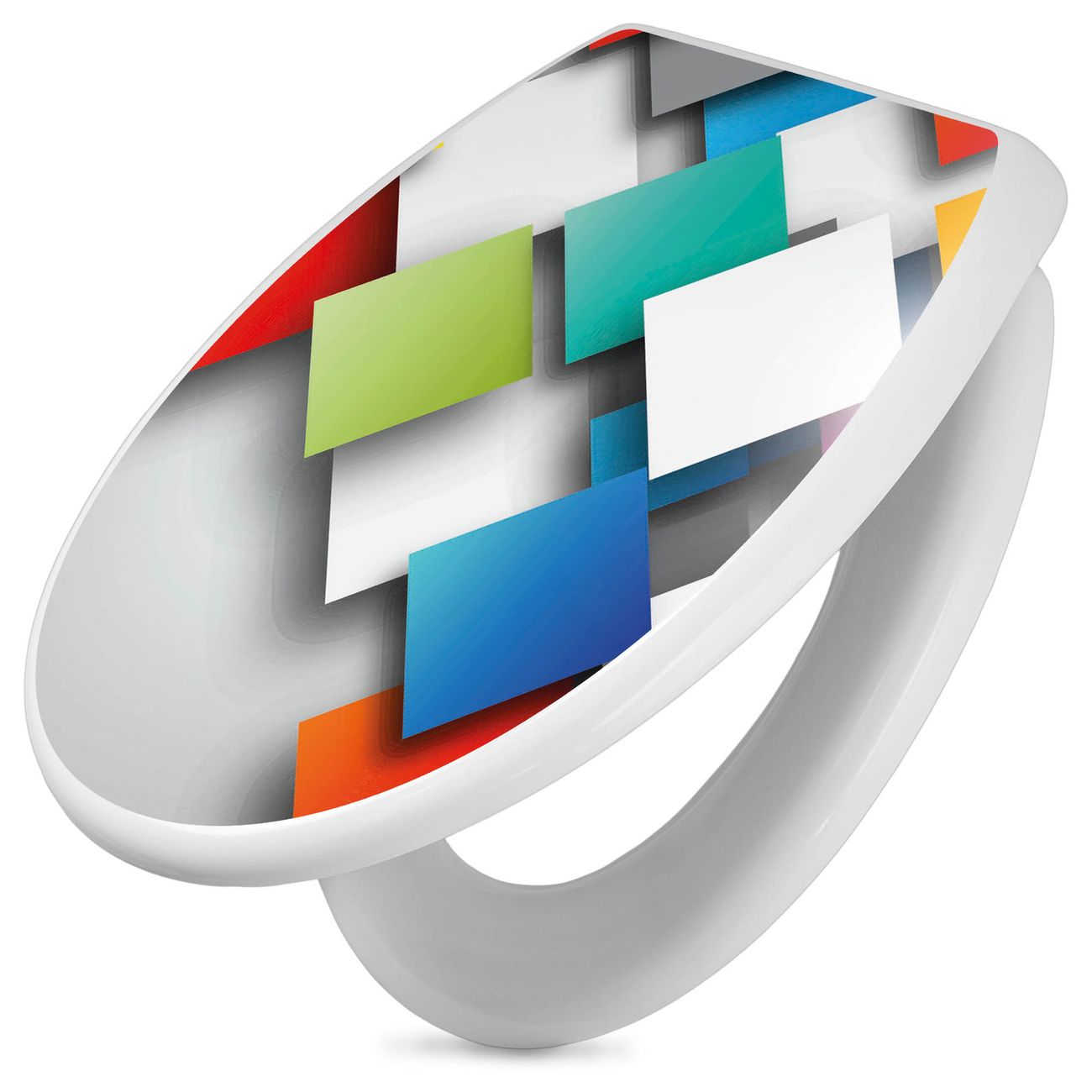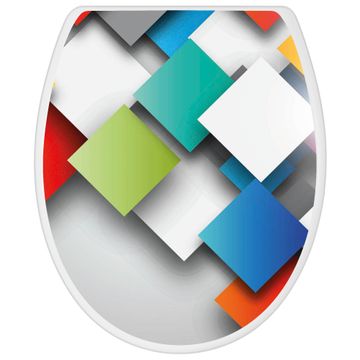 Toilettendeckel weiß mit Absenkautomatik Motiv Schwebende Quadrate