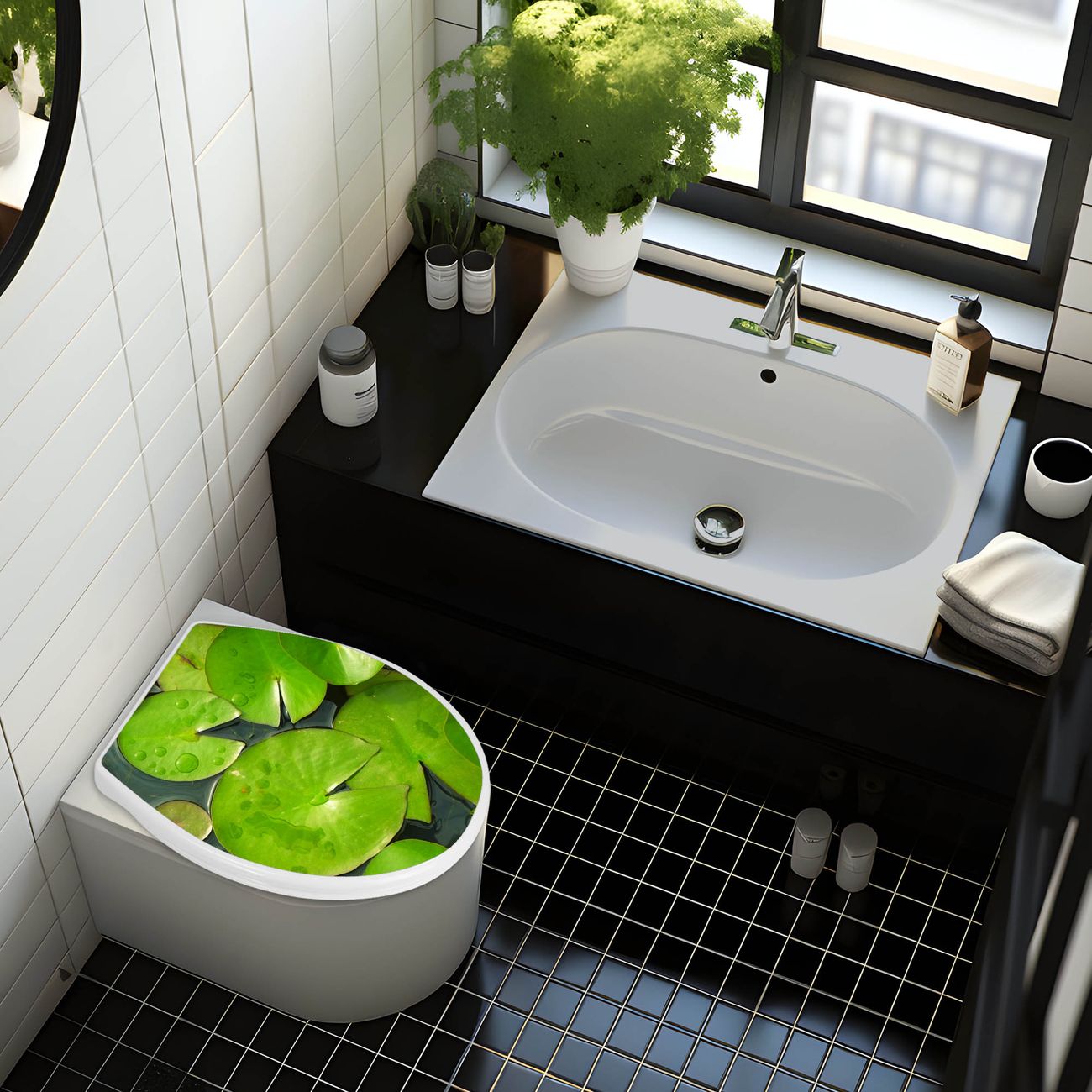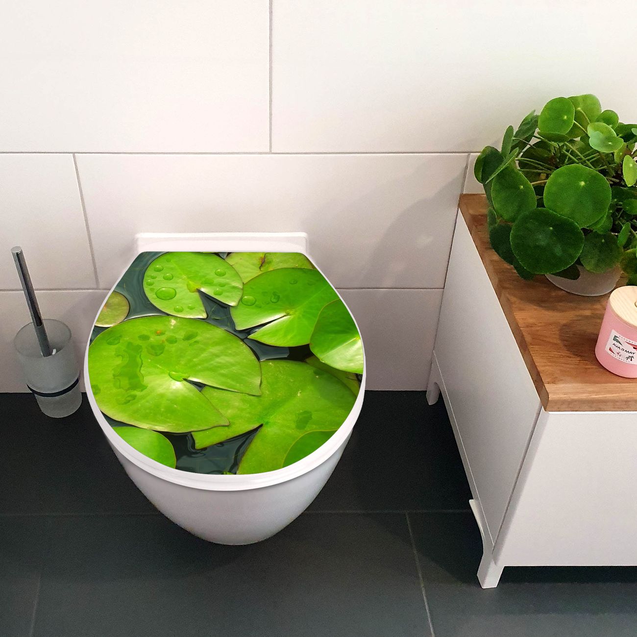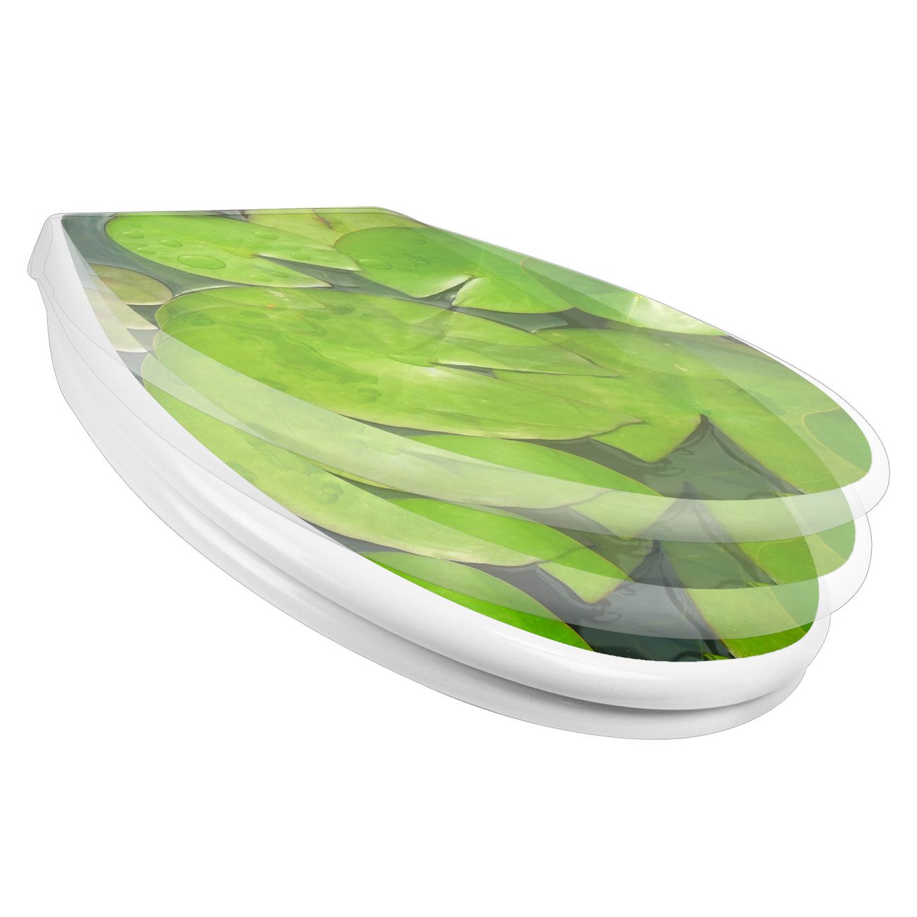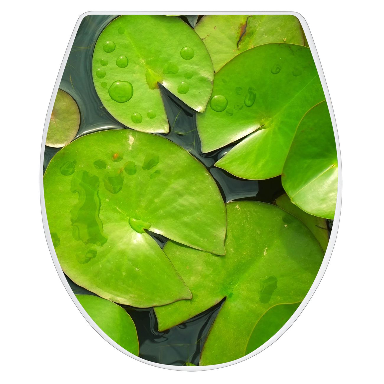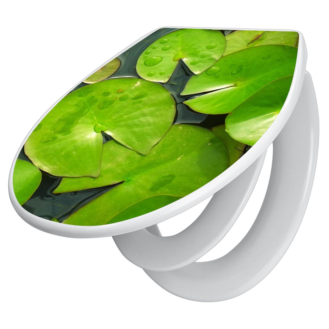 Toilettendeckel weiß mit Absenkautomatik Motiv Seerosenblätter