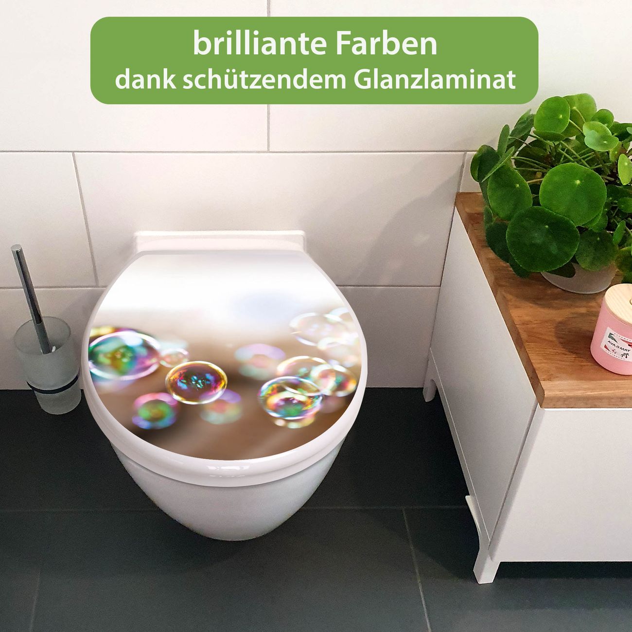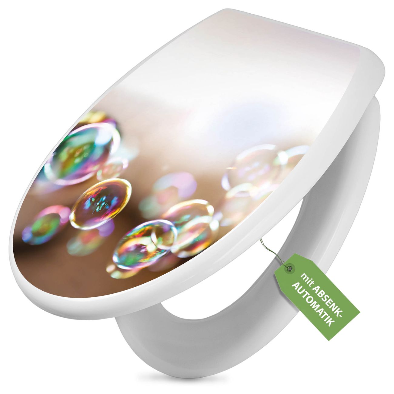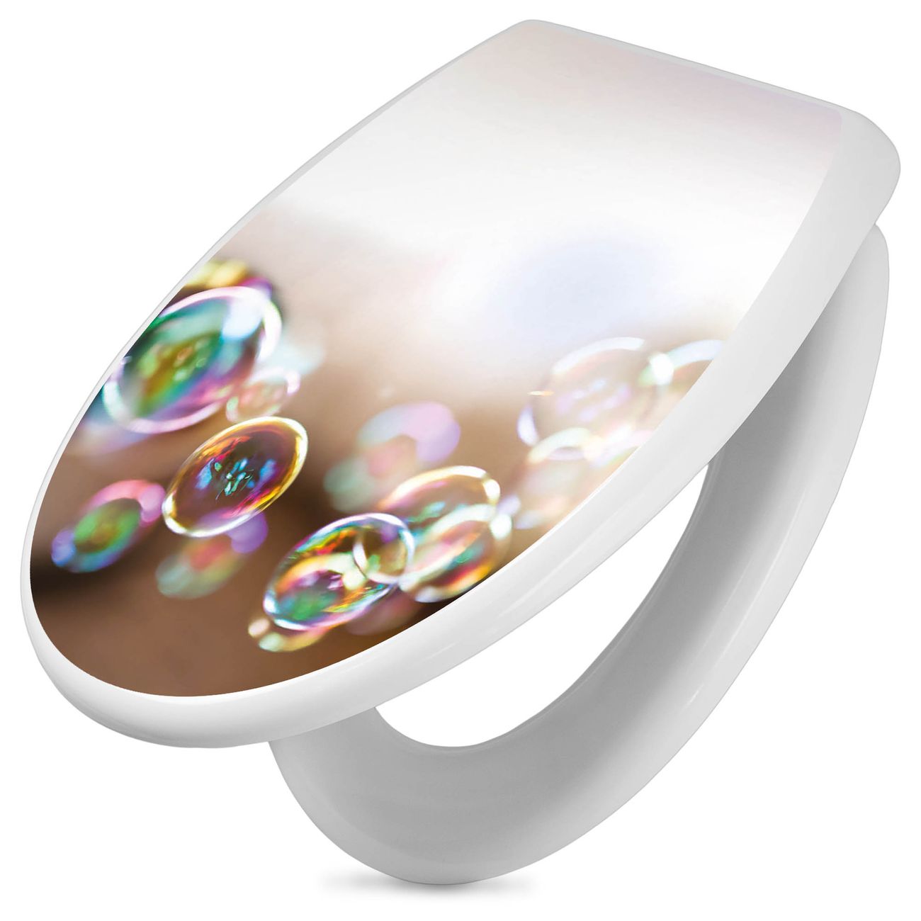 Toilettendeckel weiß mit Absenkautomatik Motiv Seifenblasen