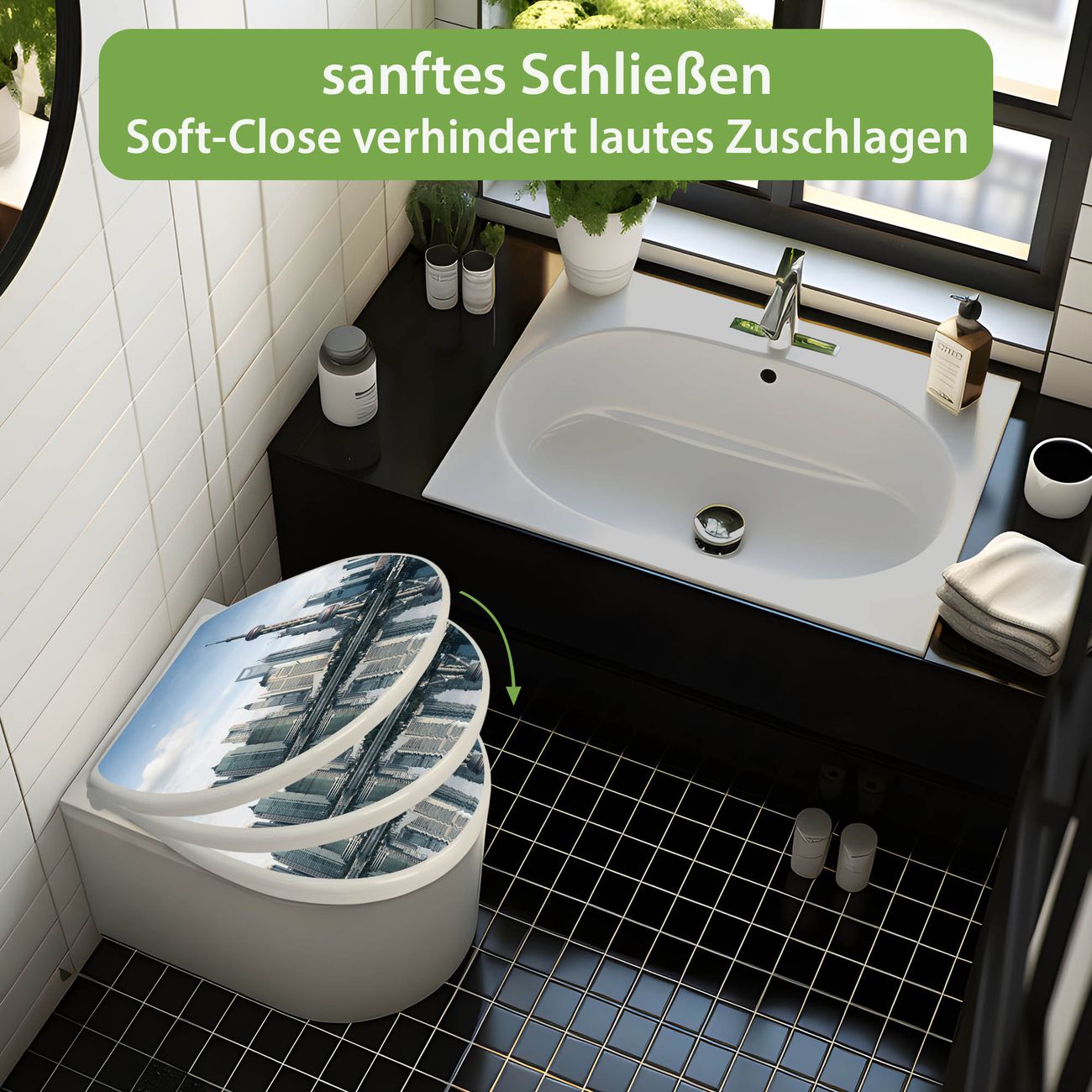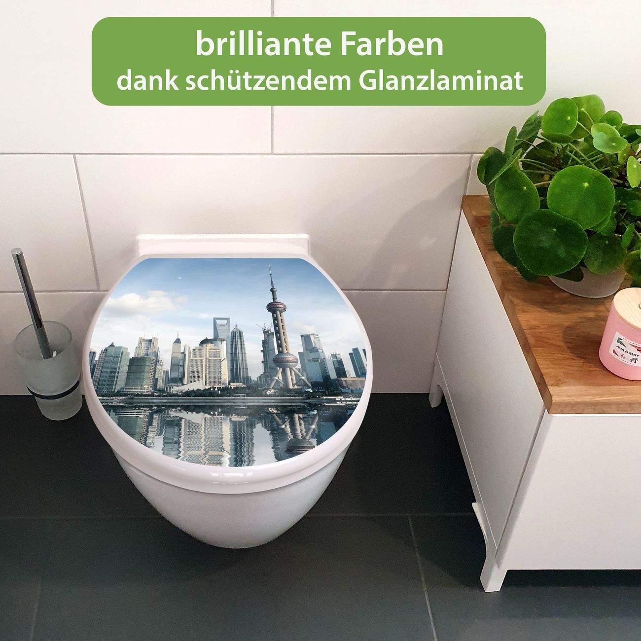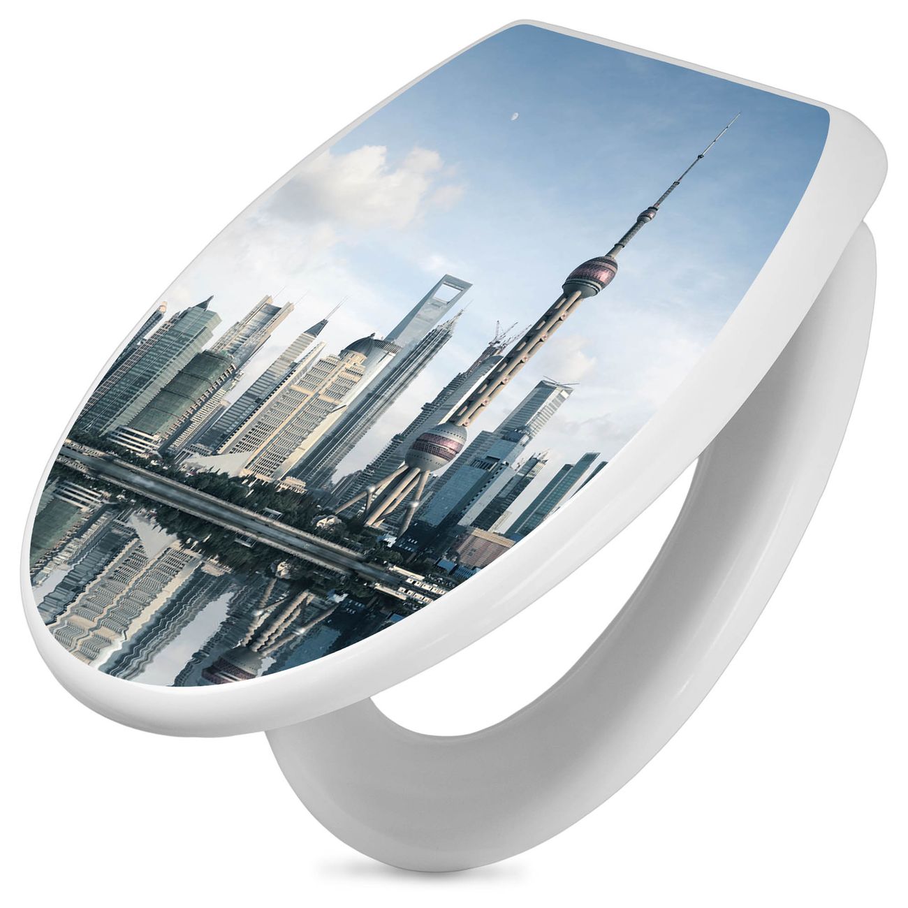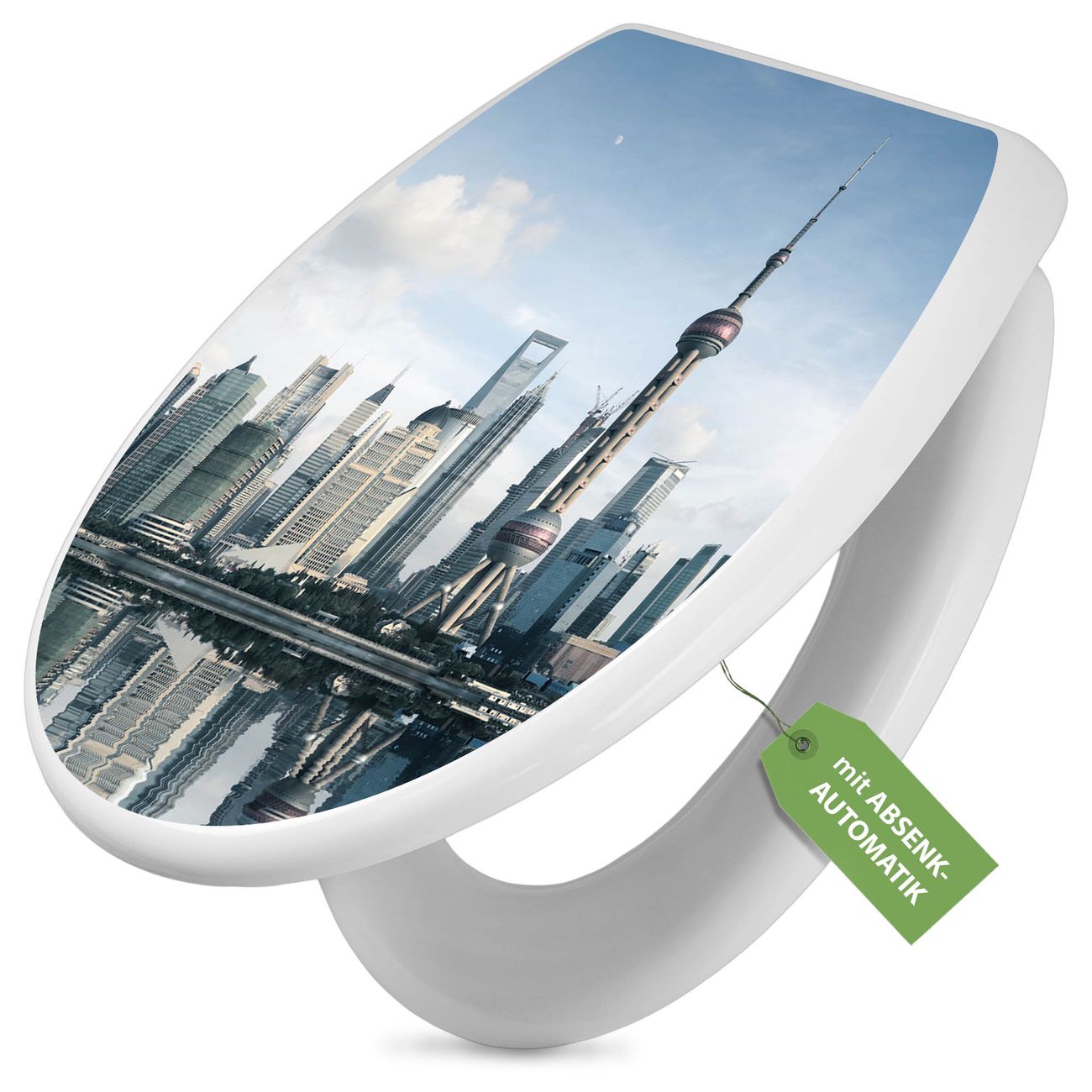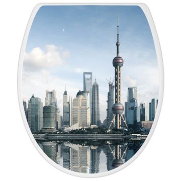 Toilettendeckel weiß mit Absenkautomatik Motiv Shanghai