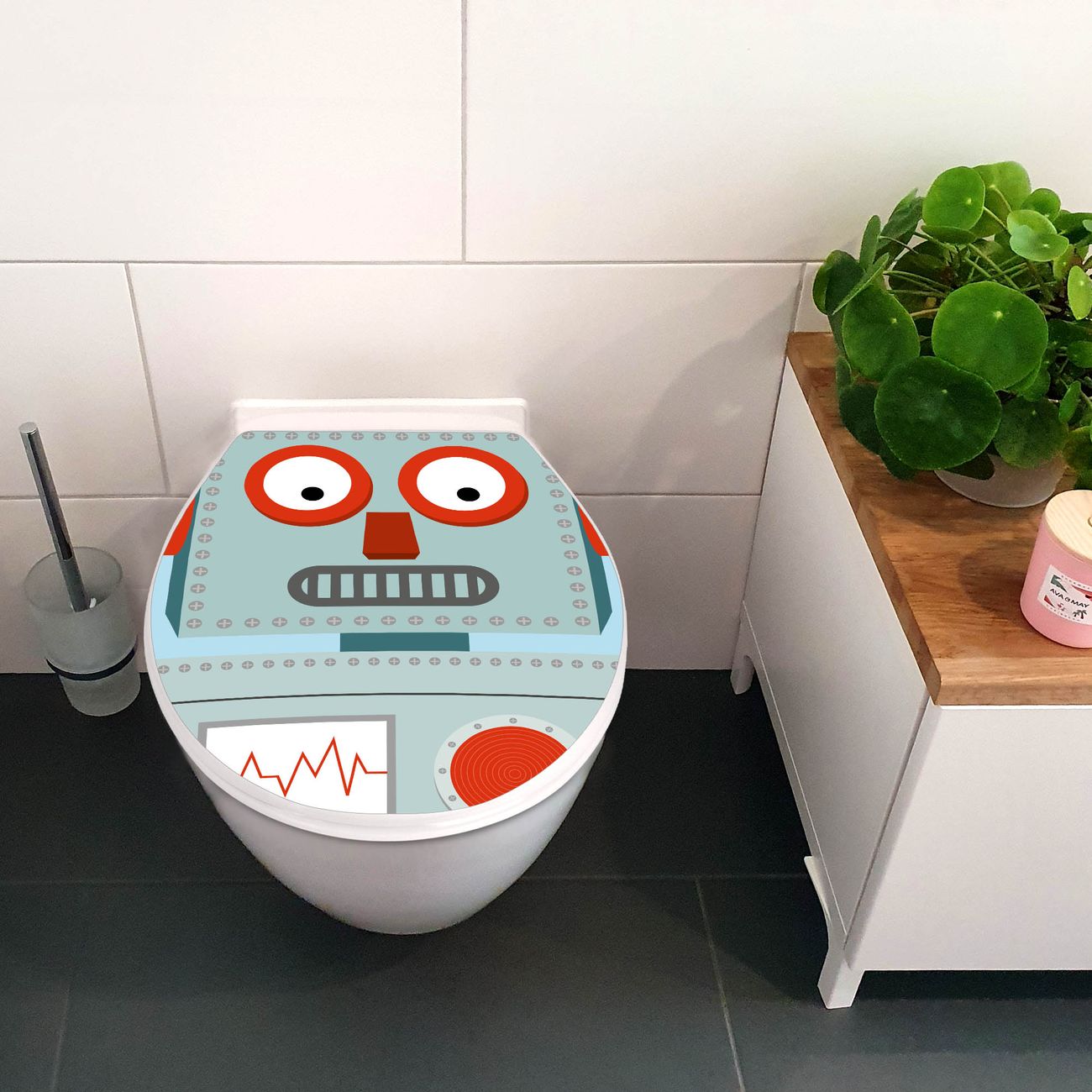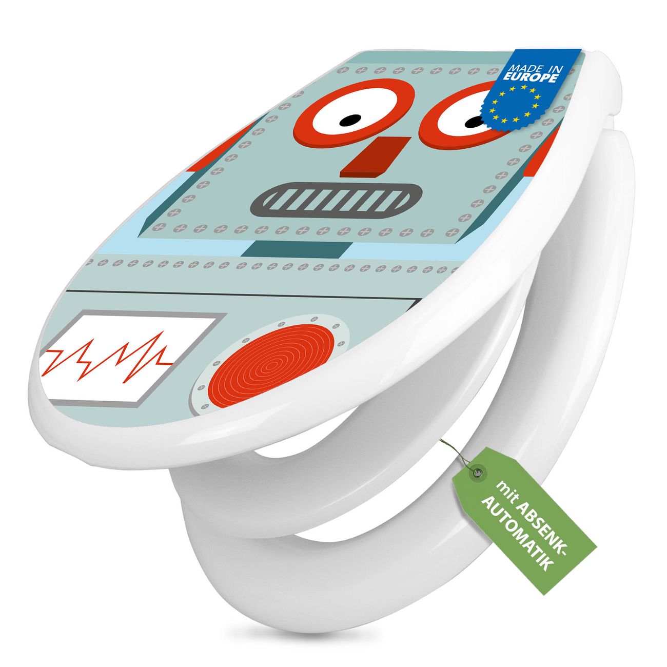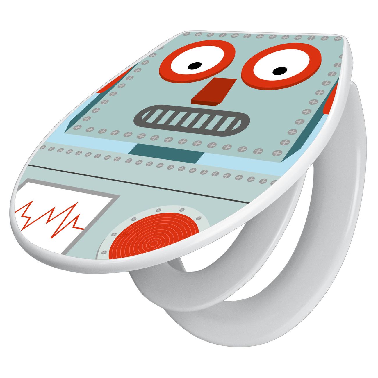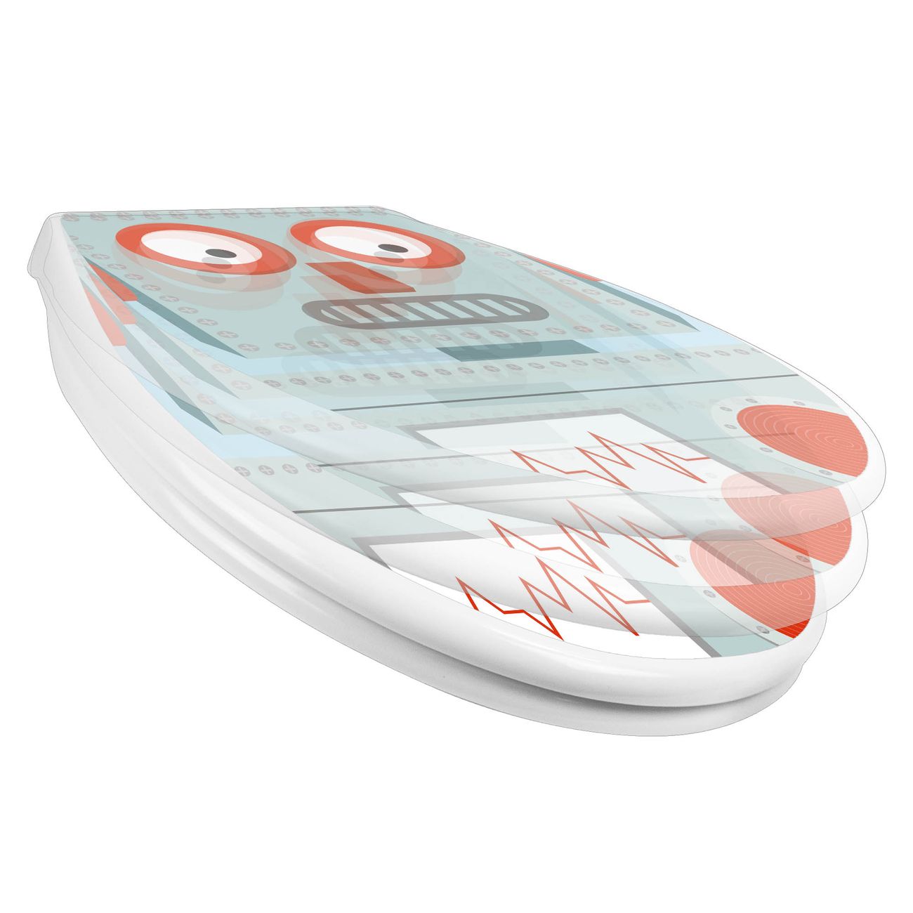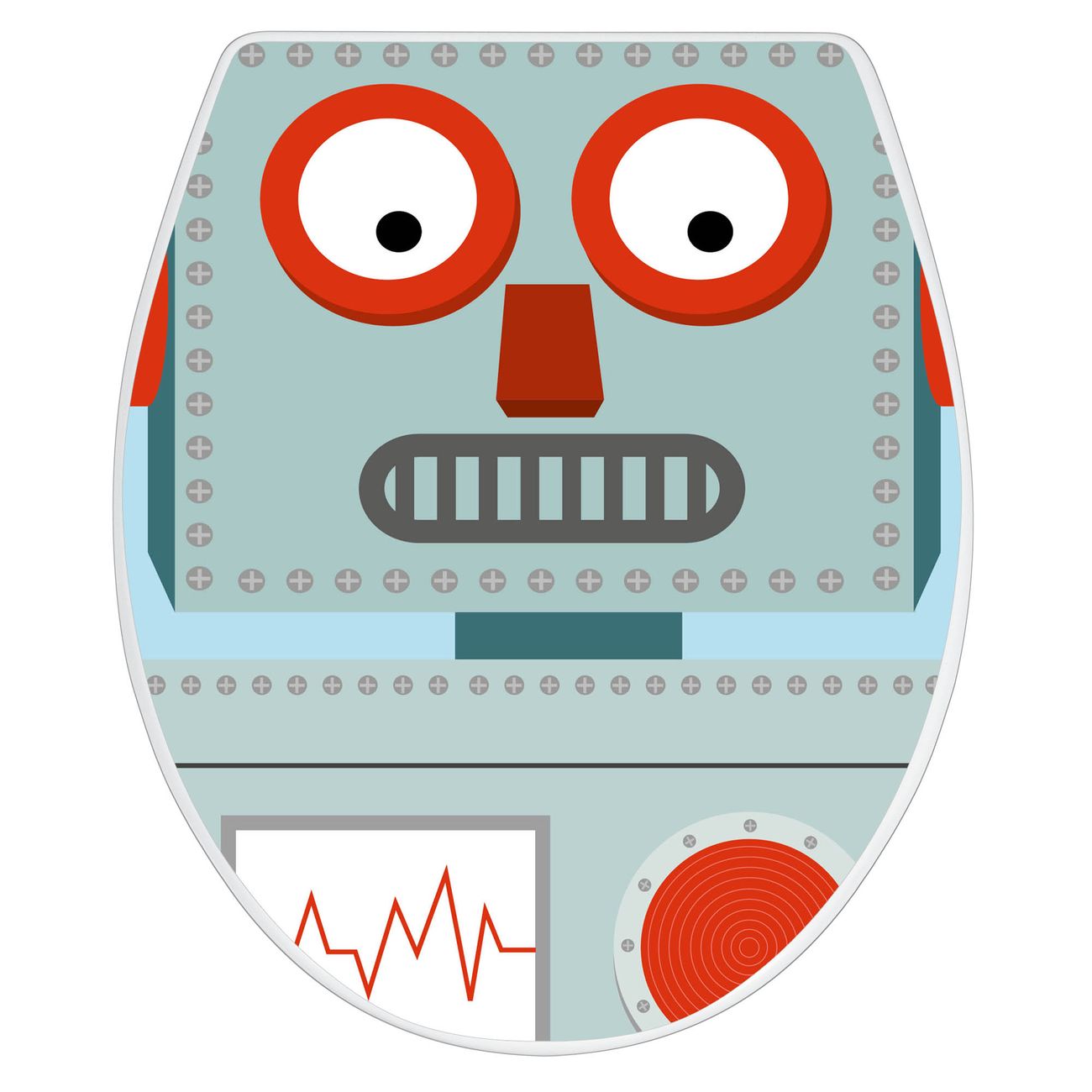 Toilettendeckel weiß mit Absenkautomatik Motiv Shocked Robot