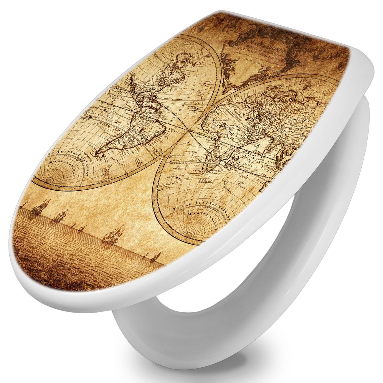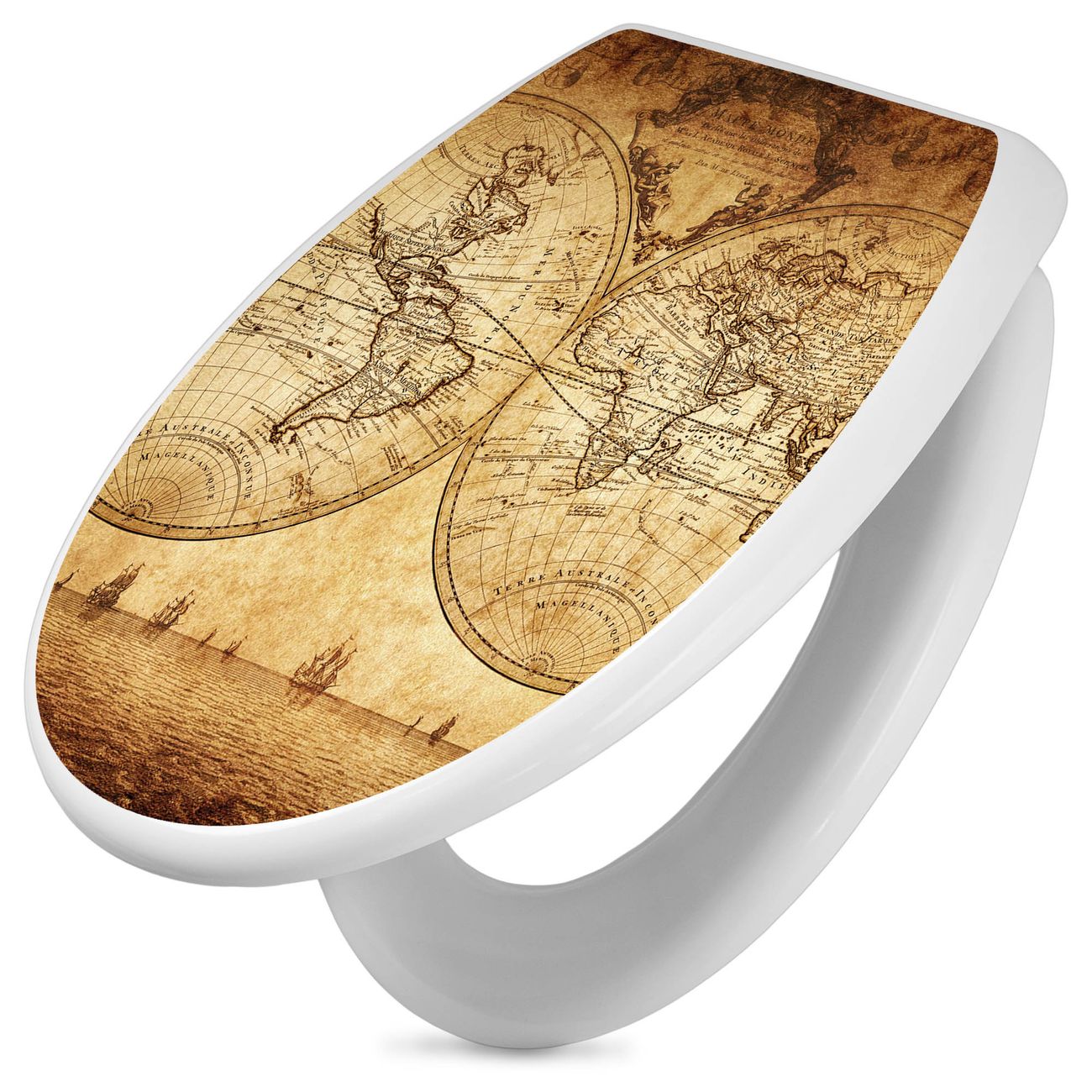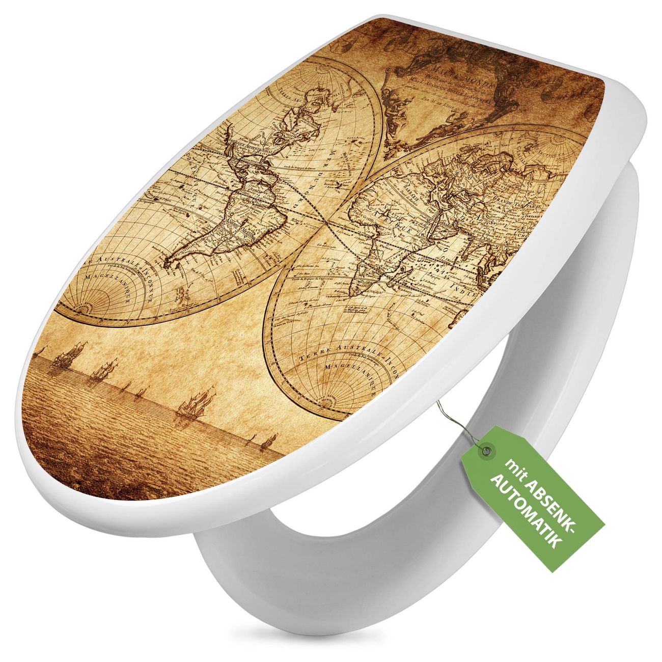 Toilettendeckel weiß mit Absenkautomatik Motiv Sieben Weltmeere