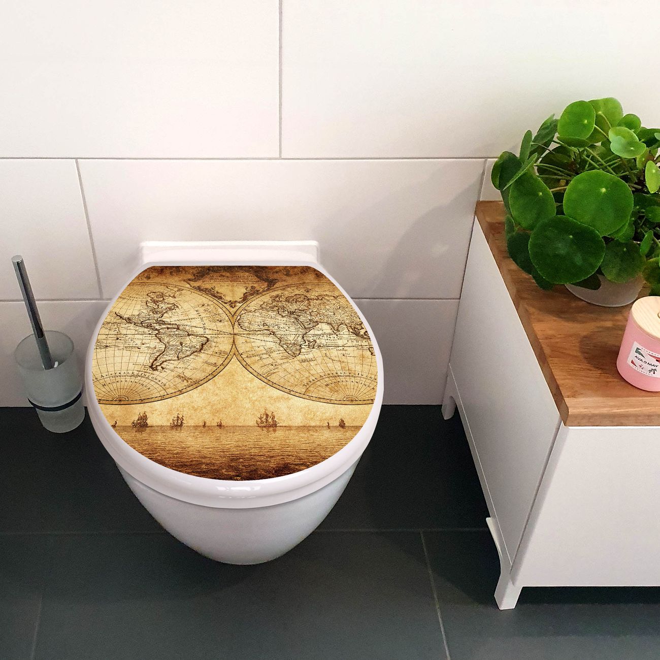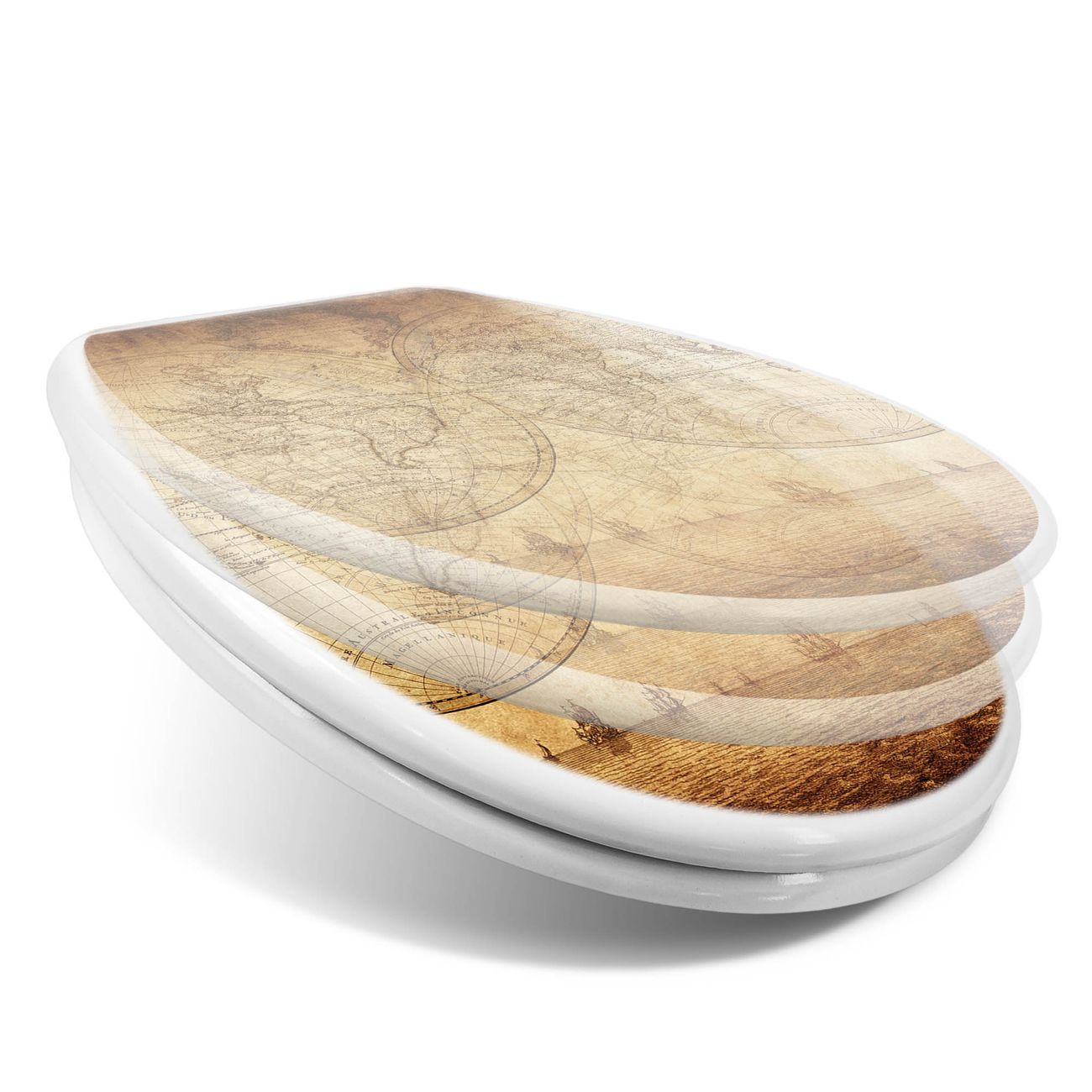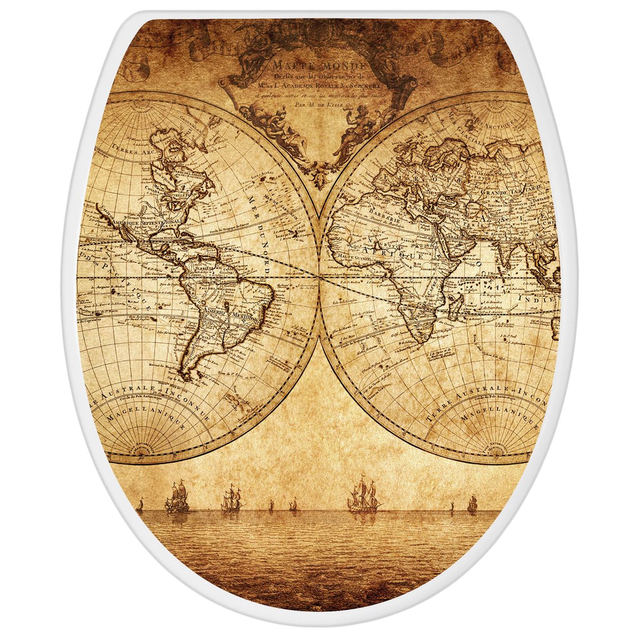 Toilettendeckel weiß mit Absenkautomatik Motiv Sieben Weltmeere