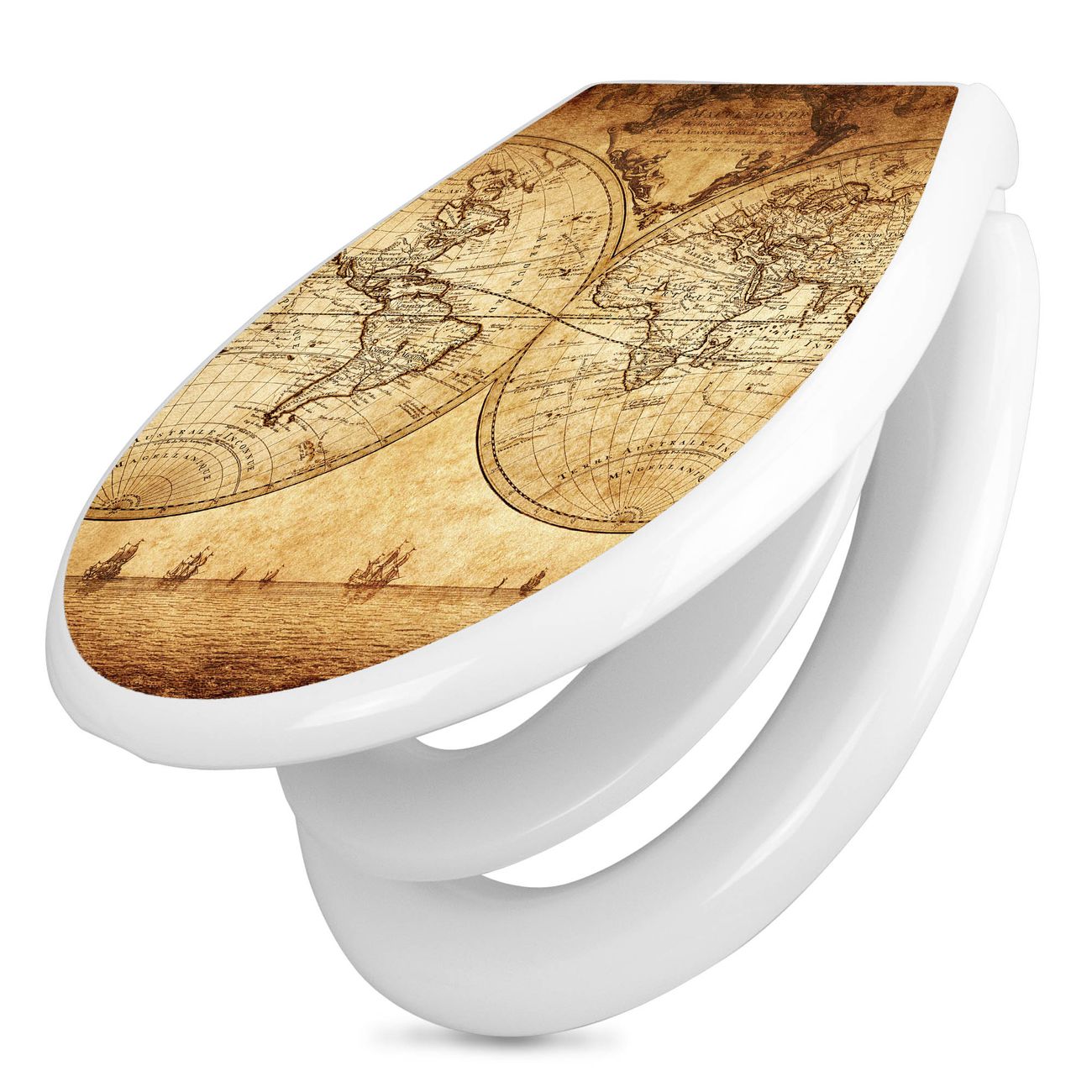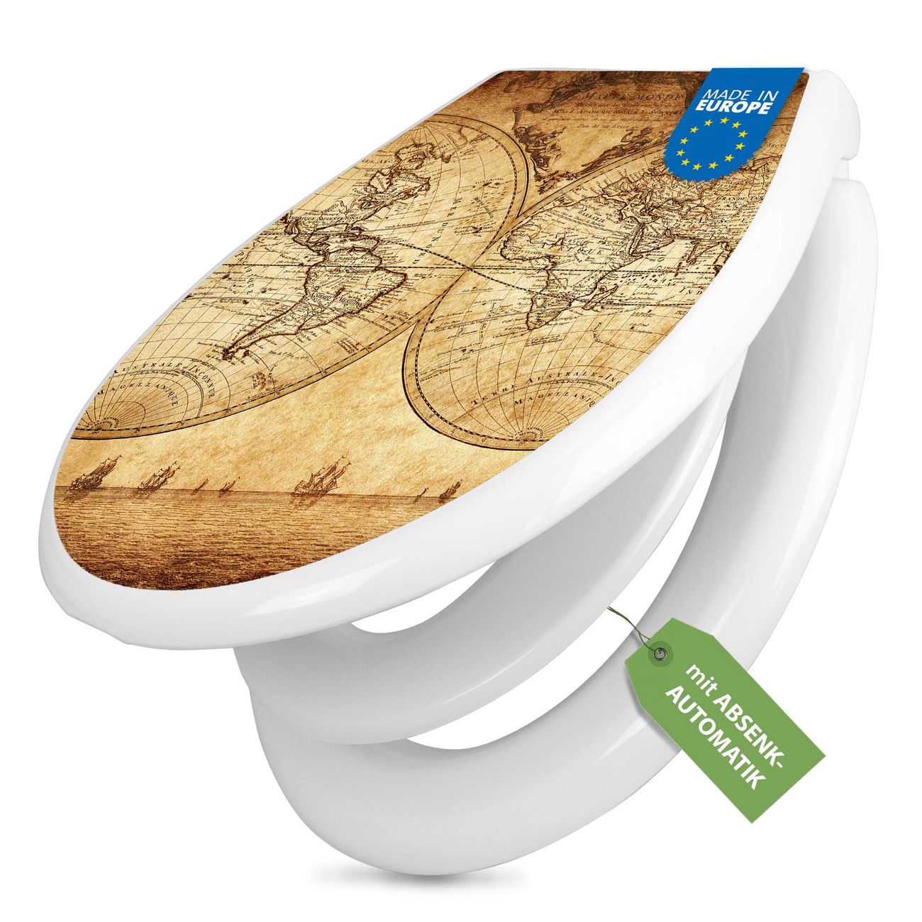 Toilettendeckel weiß mit Absenkautomatik Motiv Sieben Weltmeere