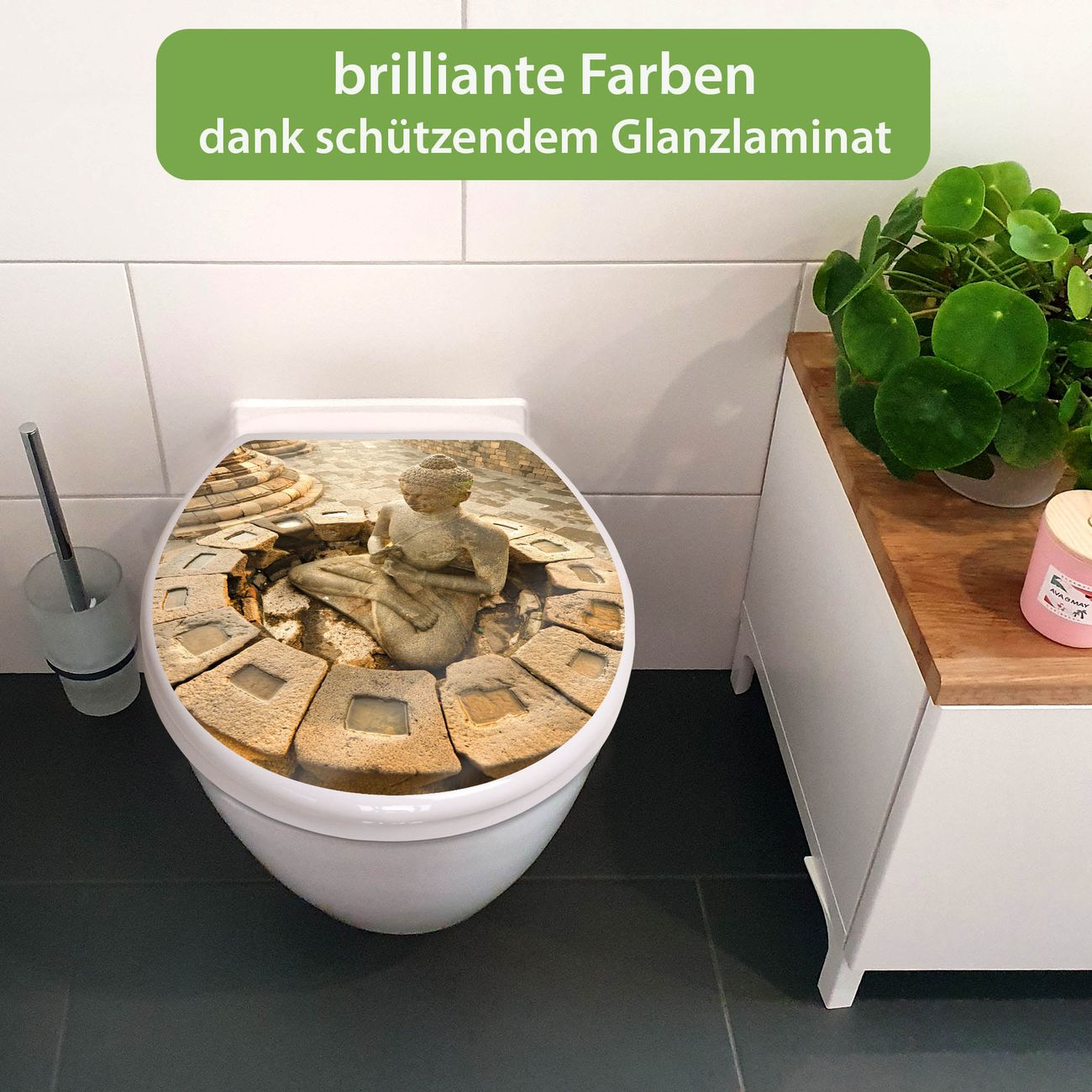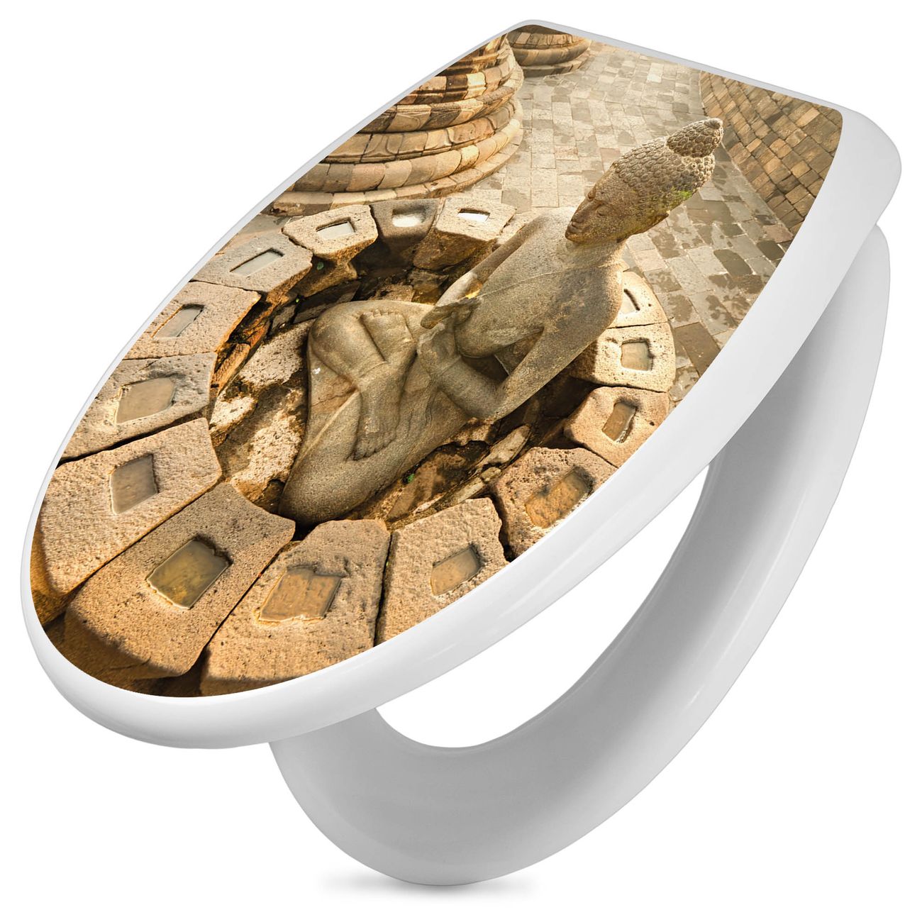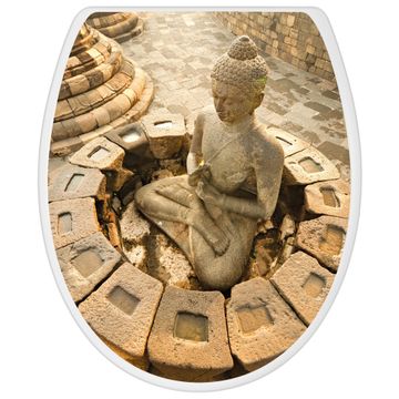 Toilettendeckel weiß mit Absenkautomatik Motiv Sitzender Buddha