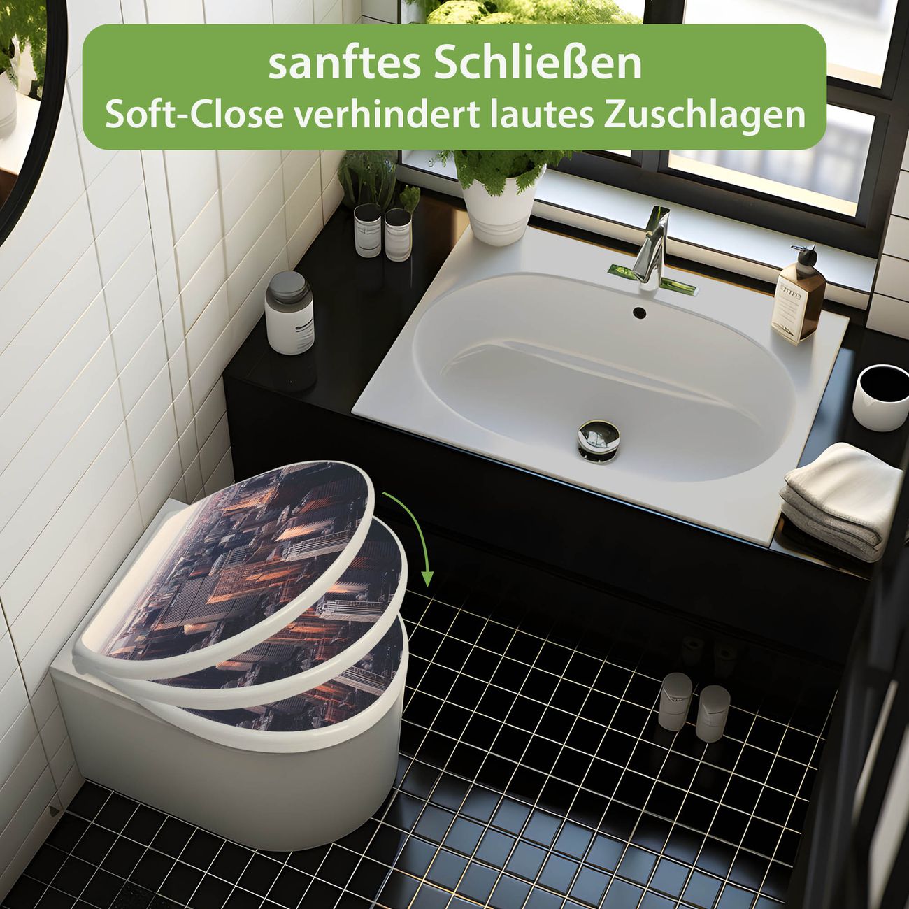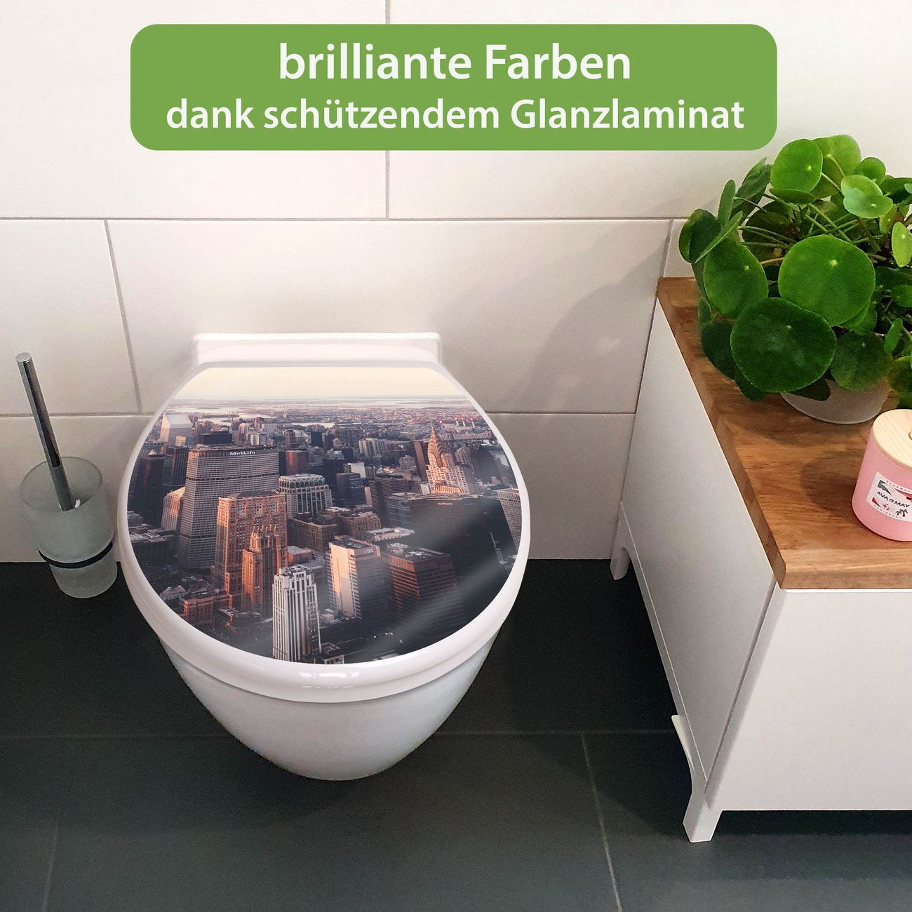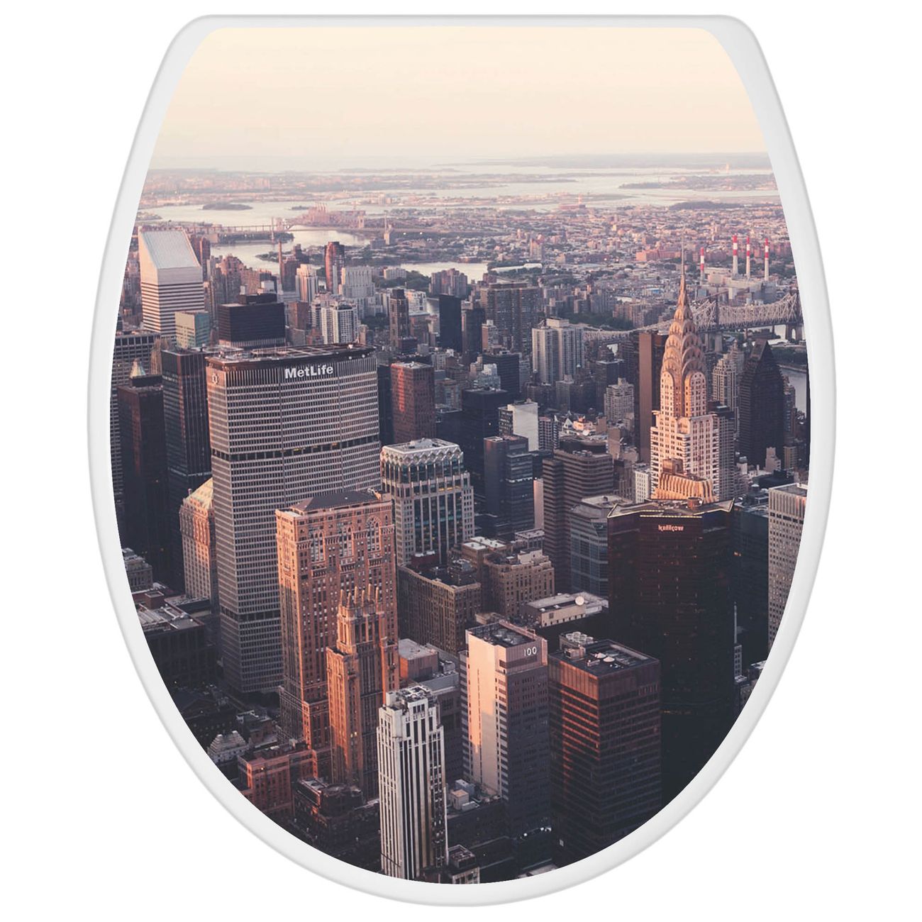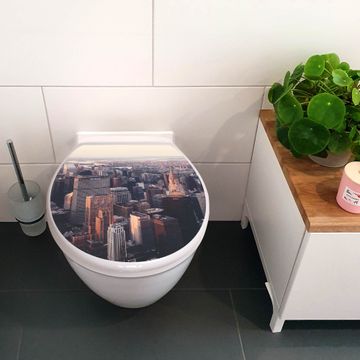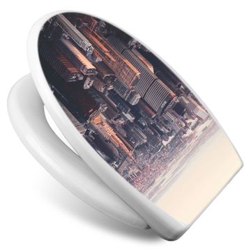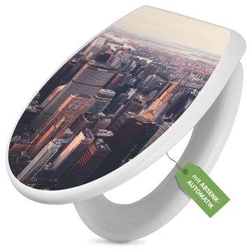 Toilettendeckel weiß mit Absenkautomatik Motiv Skyline