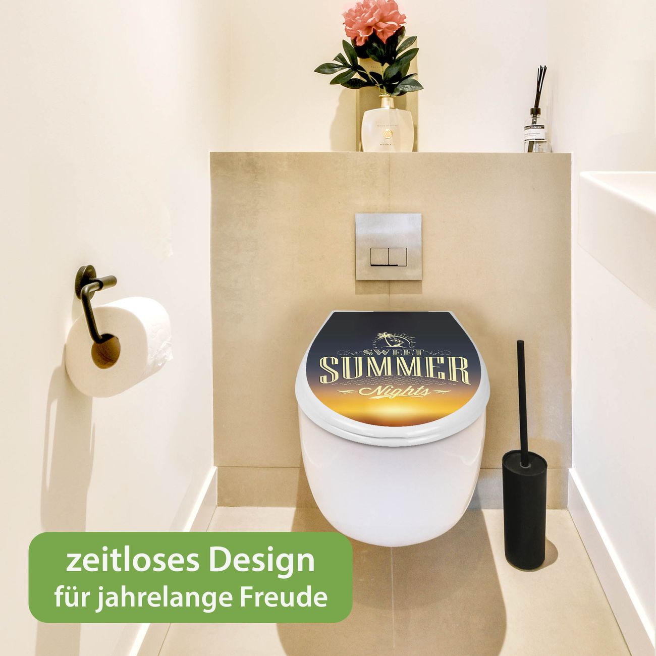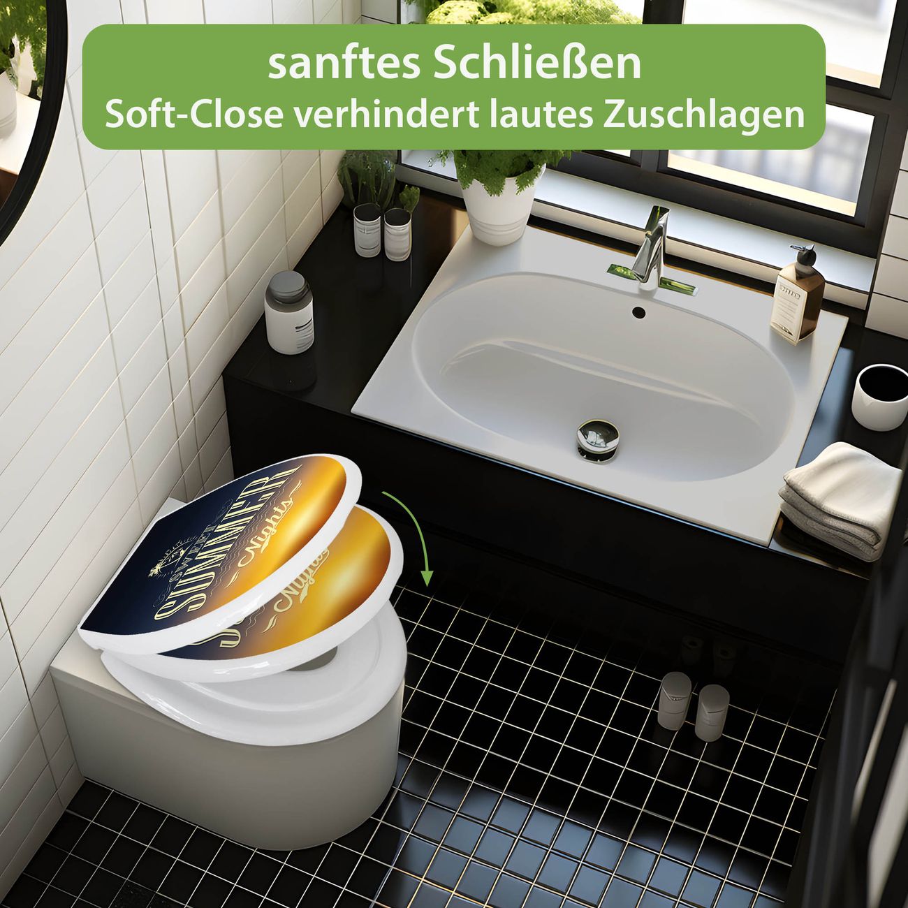 Toilettendeckel weiß mit Absenkautomatik Motiv Sommer Night