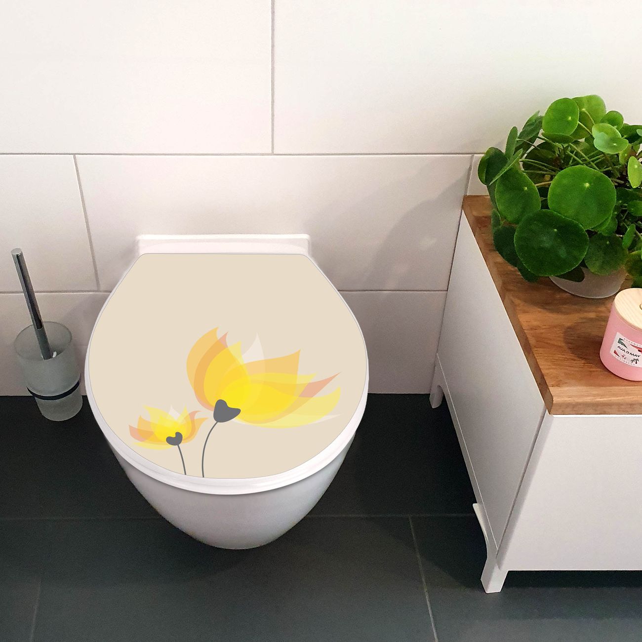 Toilettendeckel weiß mit Absenkautomatik Motiv Sommerblüten